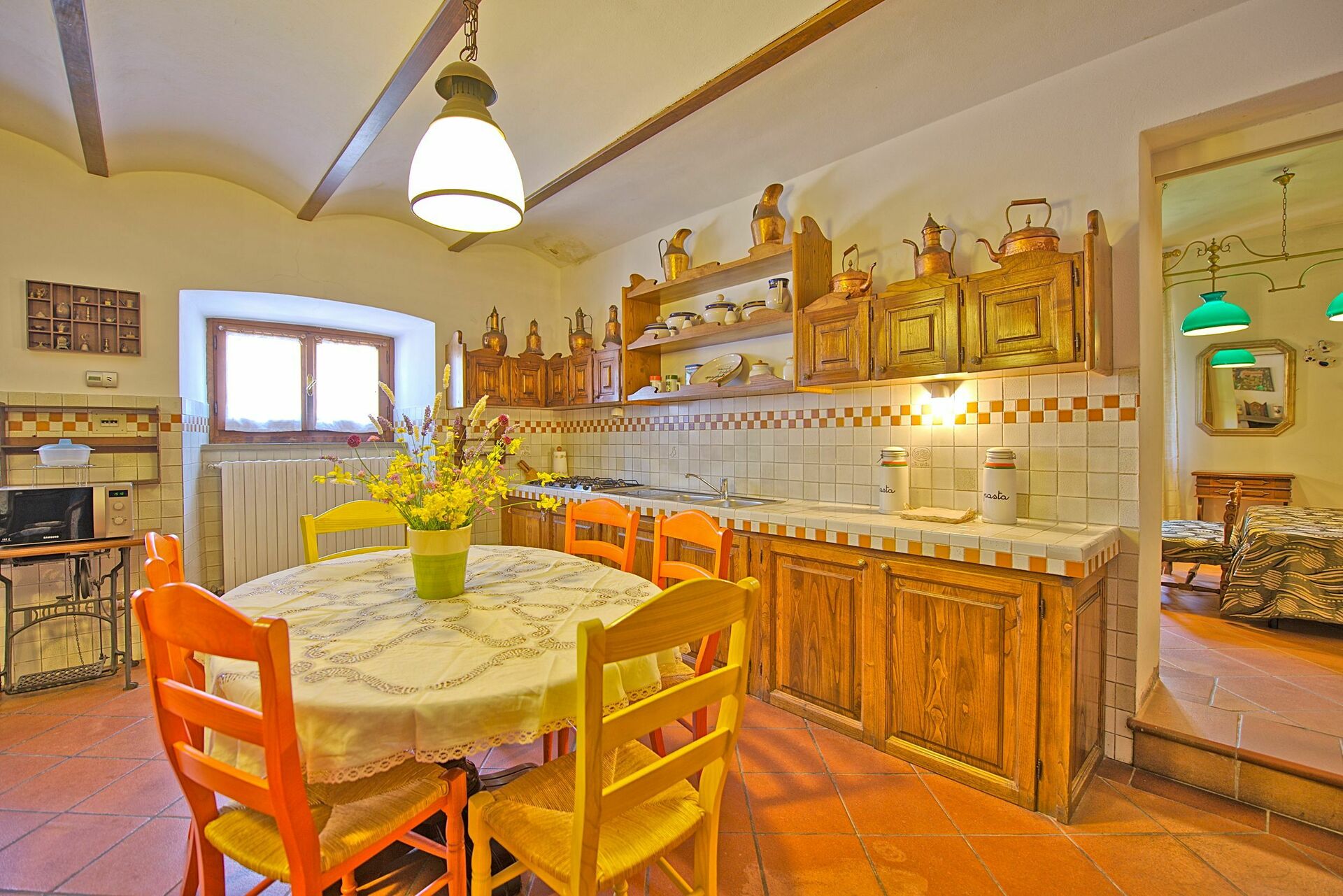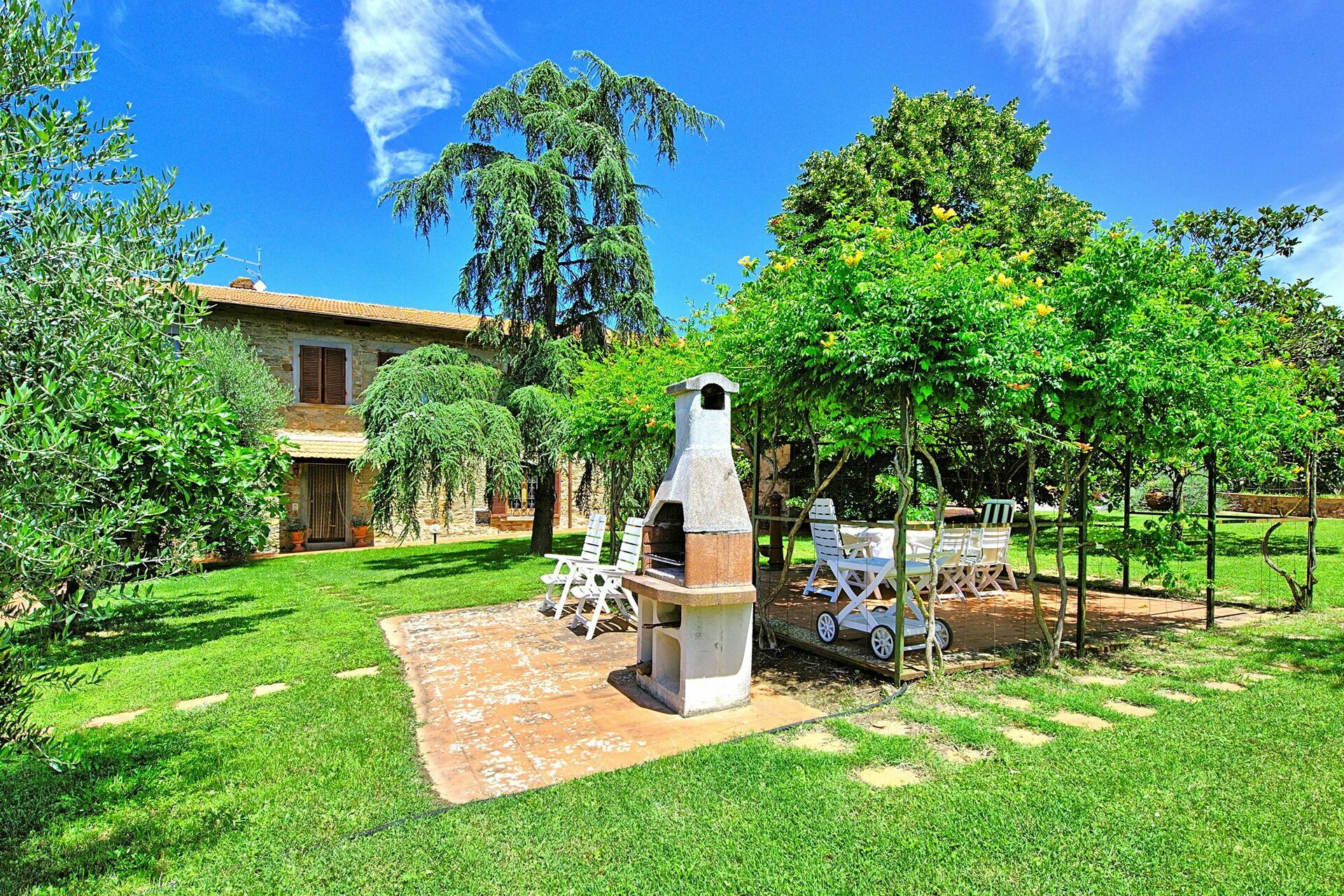 Very spacious inside with a traditional farmhouse atmosphere and furnishings. Garden and pool were lovely on hot sunny days. Great location for visiting villages, and Arezzo. Property has inside steps throughout so not on one level and plumbing is not perfect but we could easily manage for a week. Very quiet location in a village and can walk to the local excellent pizzeria.