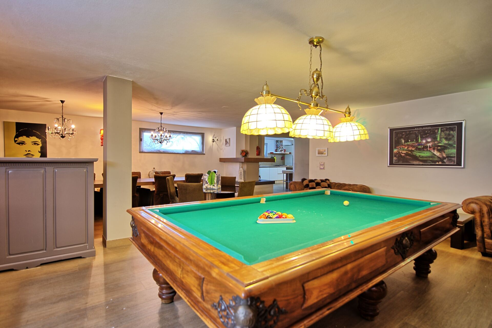 - Stort fællesrum i underetagen med poolbord