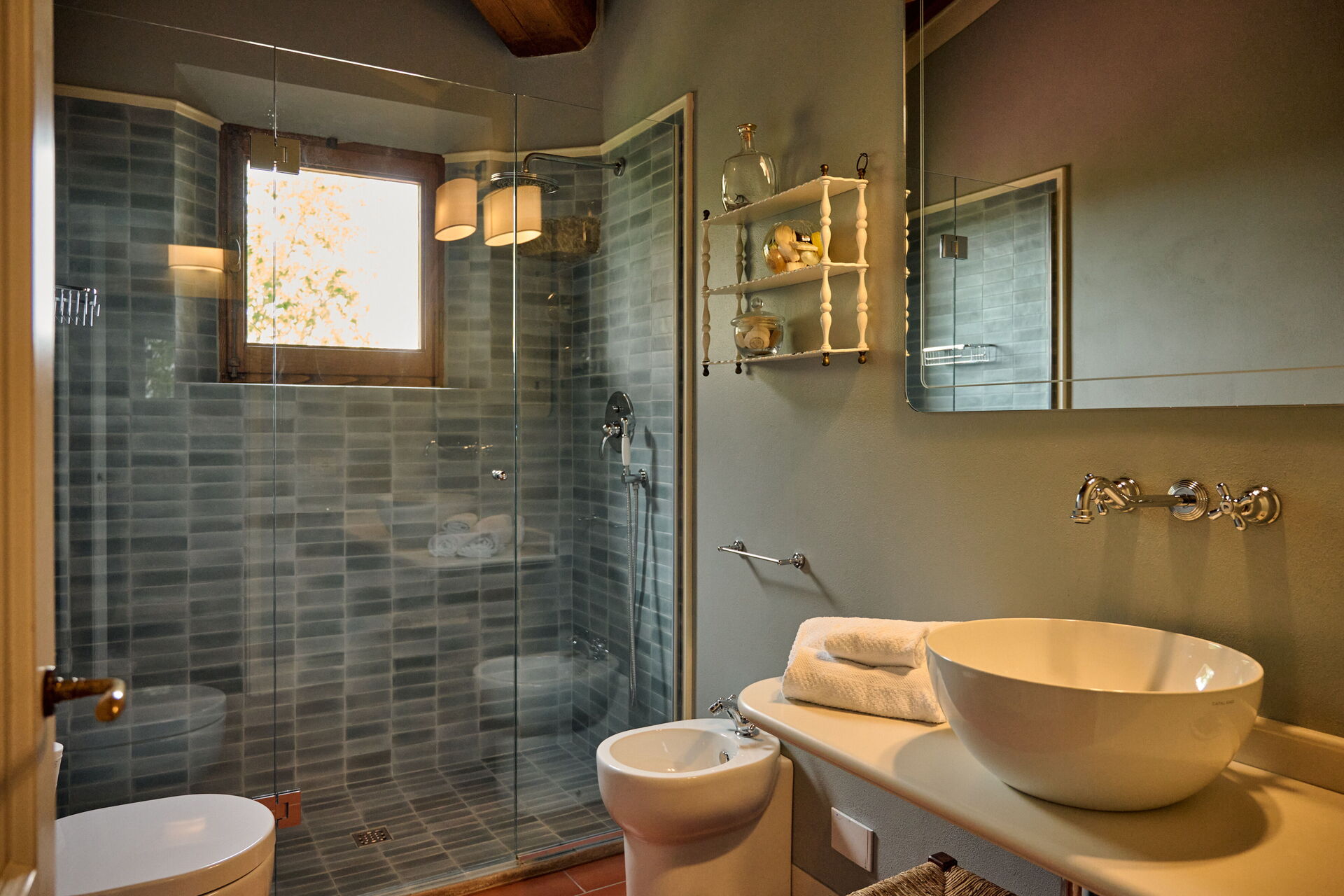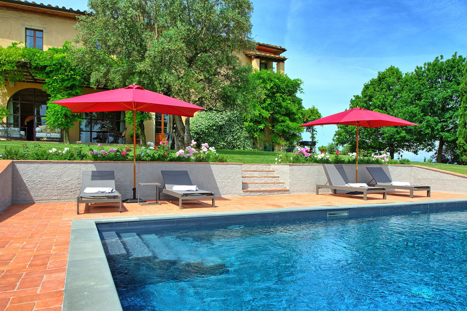 My family and I had the most wonderful Tuscan stay at this villa. Linda and her team were very helpful, accommodating our large group. We were a group of 12, with several children under ten years old. There were en suite bathrooms in every room, lots of space to relax and play and cook. The pool is so inviting and the views so gorgeous. There is delicious wine and olive oil made on the property available to purchase. No one wanted to leave. We definitely will return to this heavenly villa.