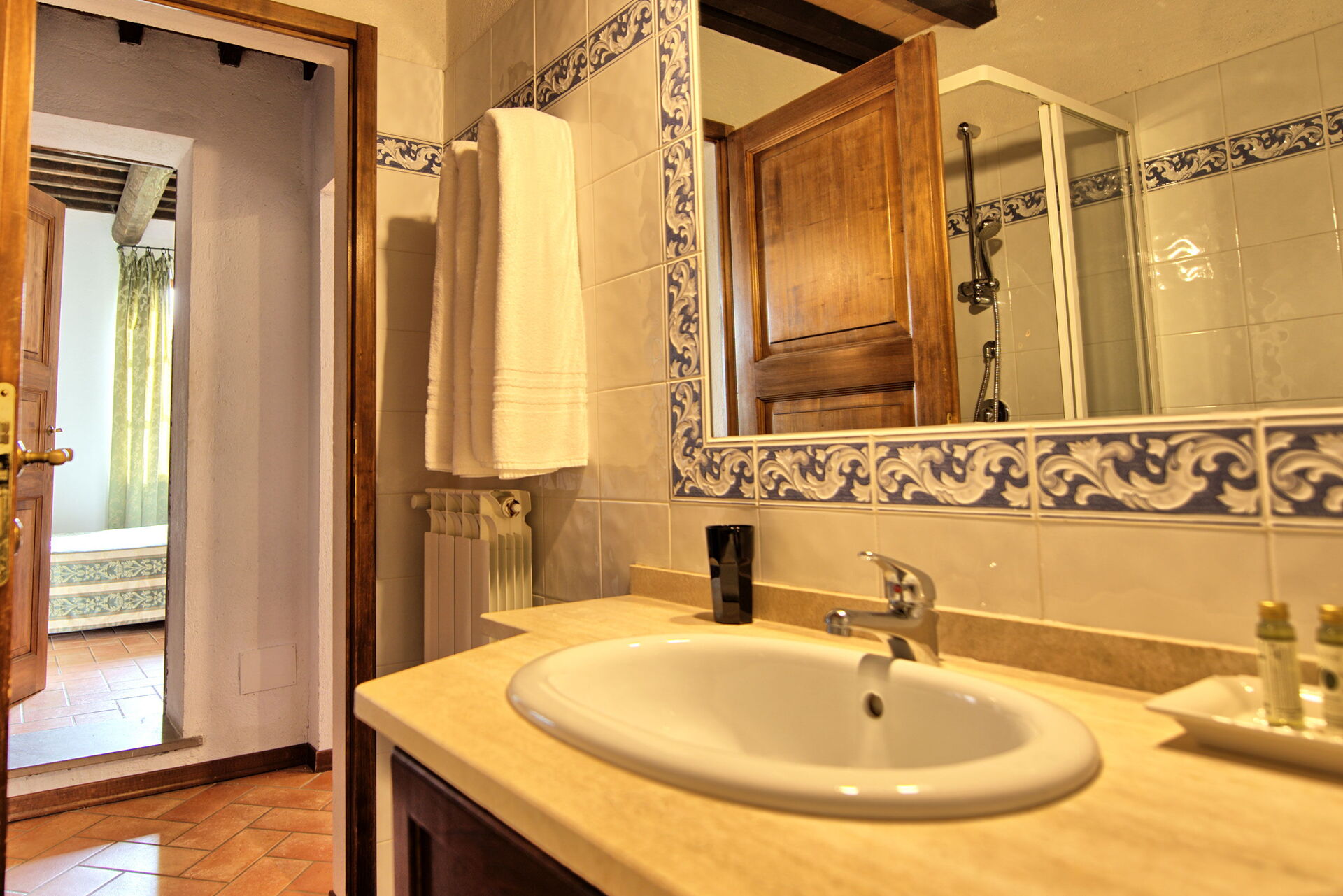 Afstande: Cetona (butikker af alle slags) 5 km, Pienza 40 km, Montepulciano 30 km, Trasimenosøen ca. 30 km, Orvieto 50 km, Arezzo 70 km, Todi 75 km, Siena 85 km, Firenze 130 km, Rom 160 km væk.