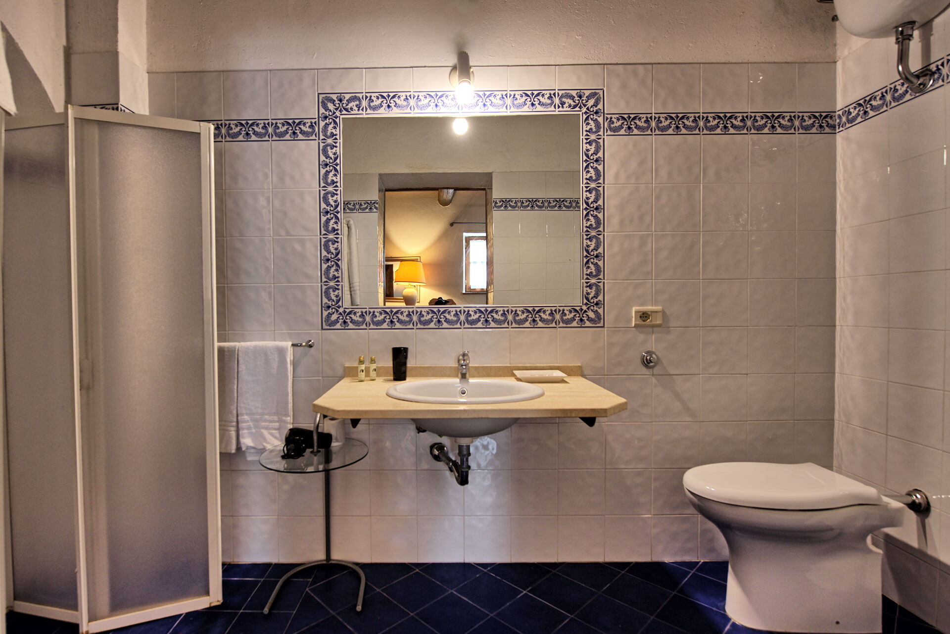 Anden sal (i tårnet med panoramaudsigt): soveværelse med dobbeltseng med privat badeværelse med bruser.