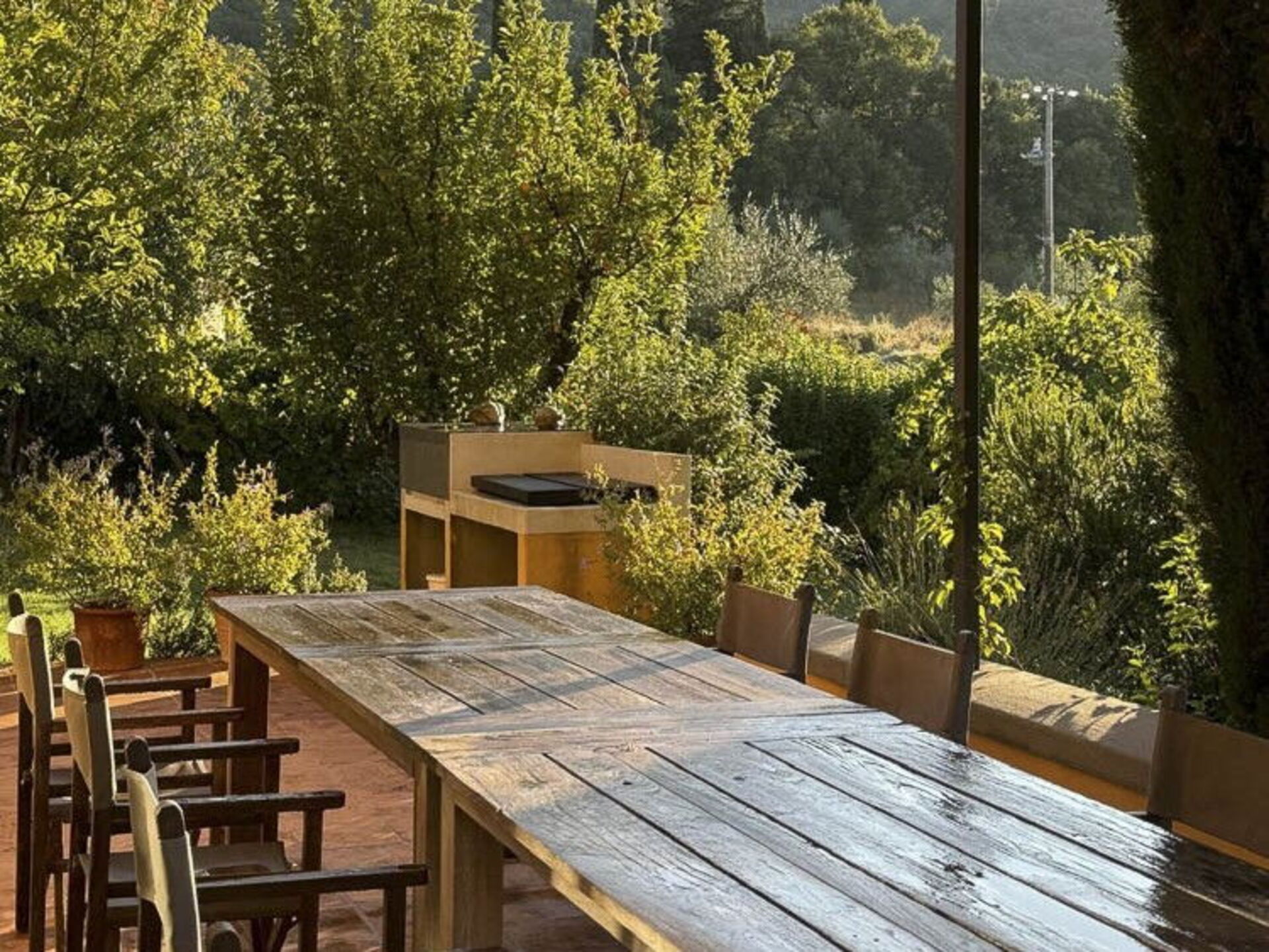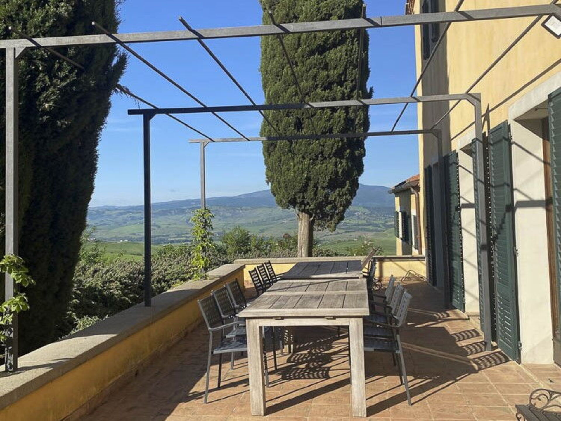 Guests have at their disposal a scenic terrace with a barbecue, tables and chairs next to the house’s living room and kitchen: here you can enjoy meals outside with splendid vistas of the hills and wide expanse of the Val d'Orcia .
