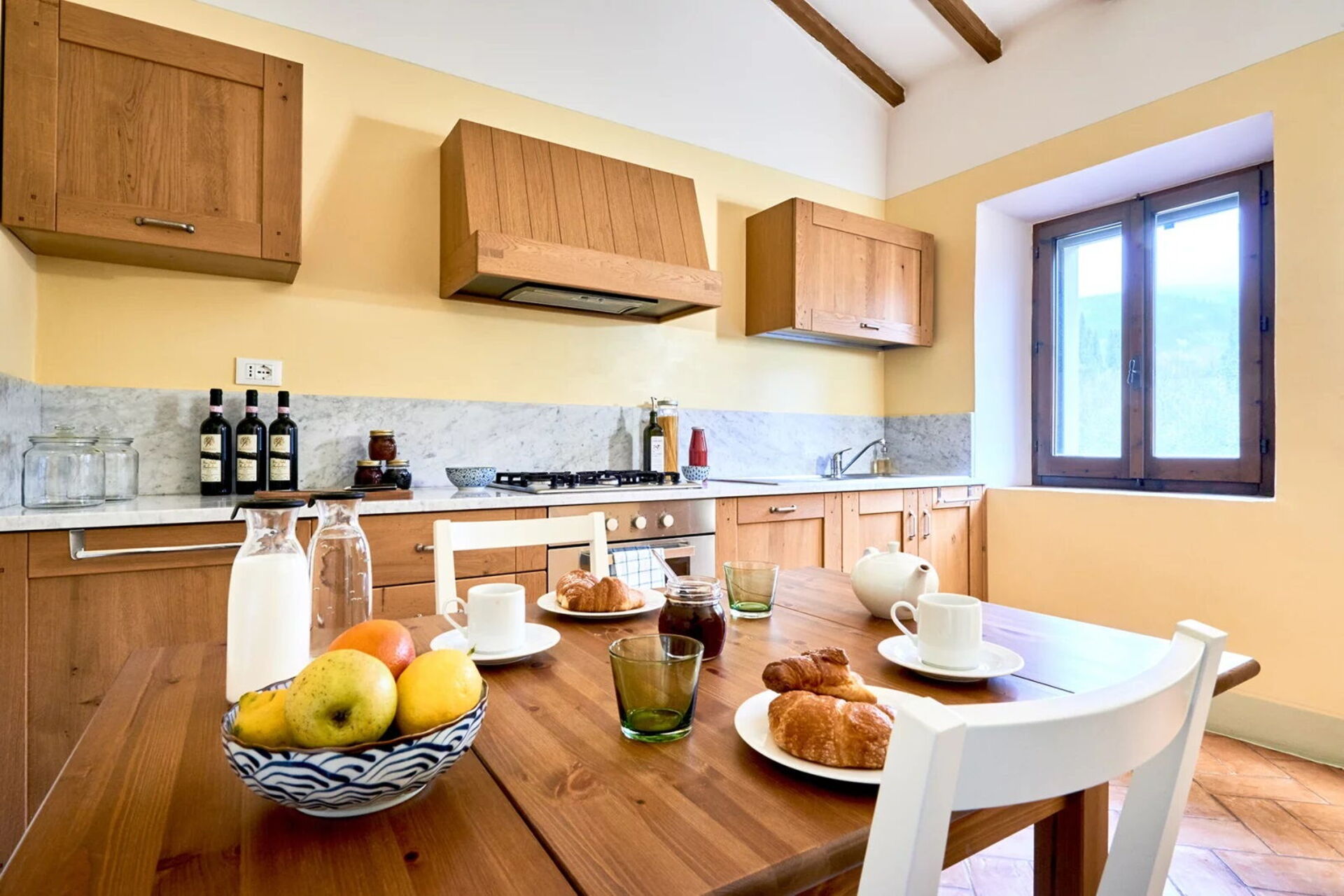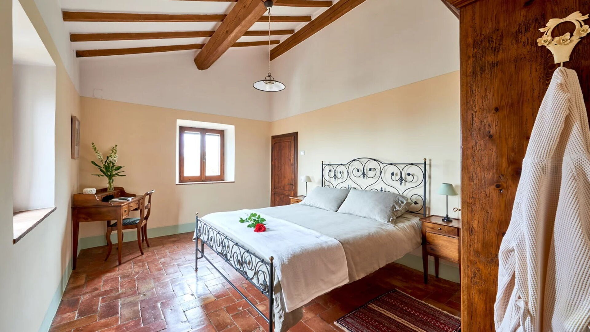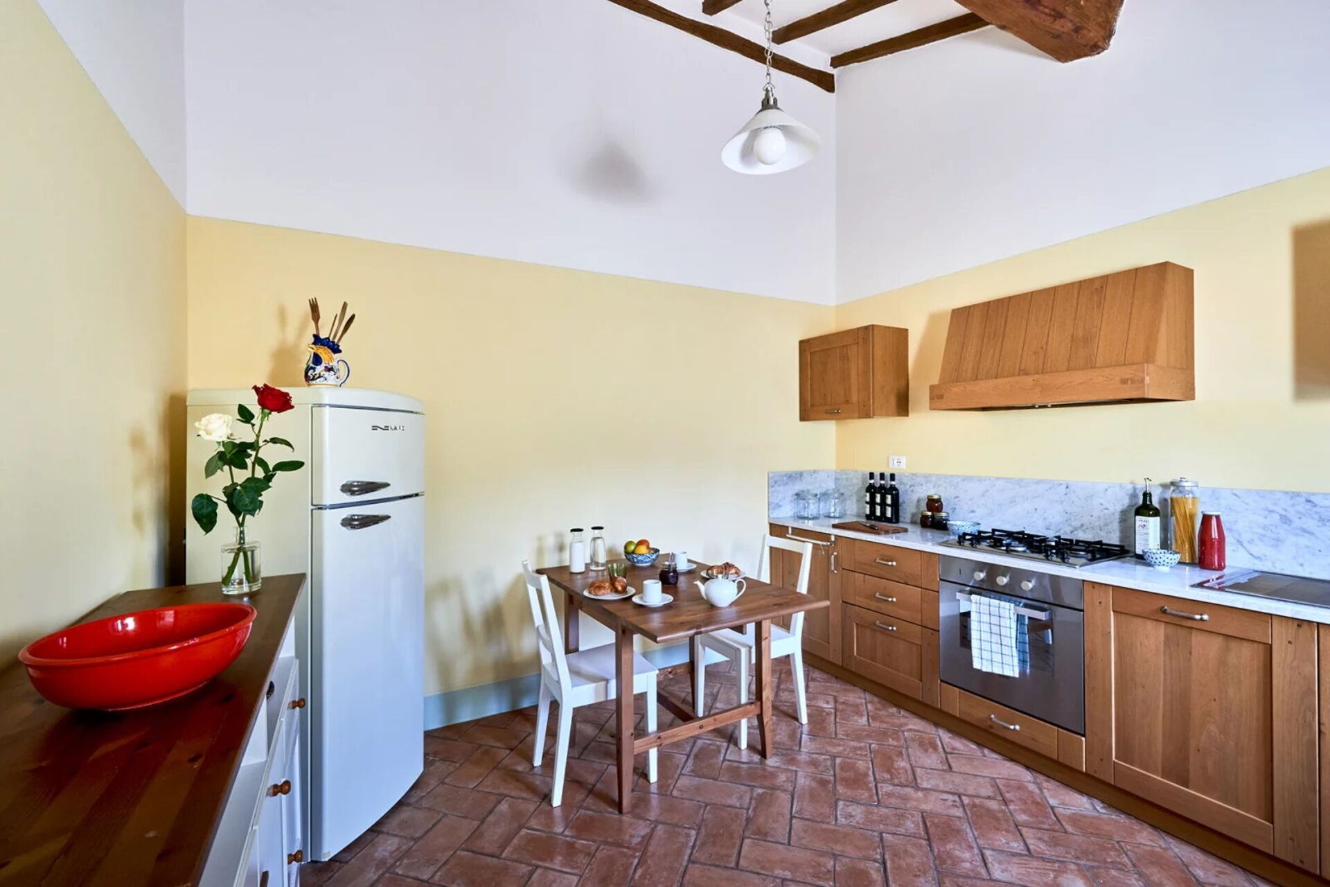 Podere i Prati’s spacious interiors are equipped with all amenities and tastefully furnished, keeping in line with traditional Tuscany country style.