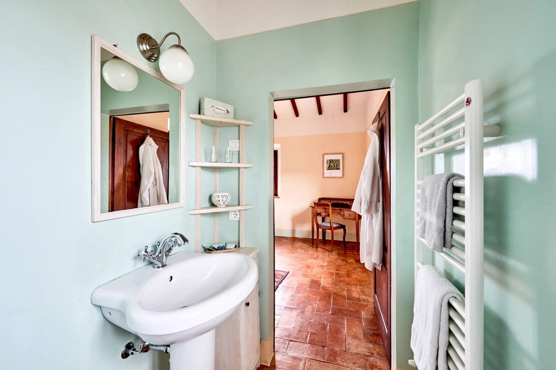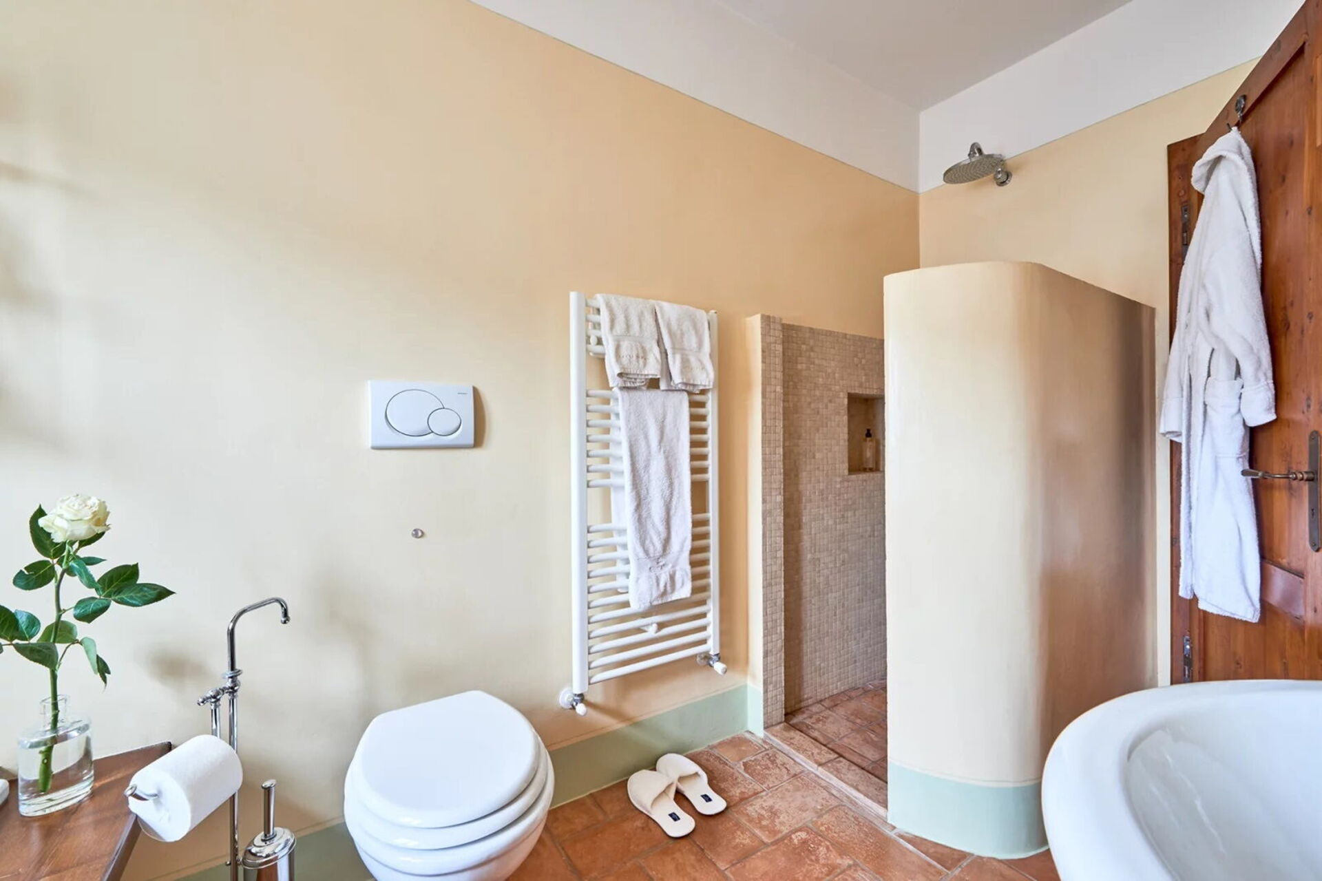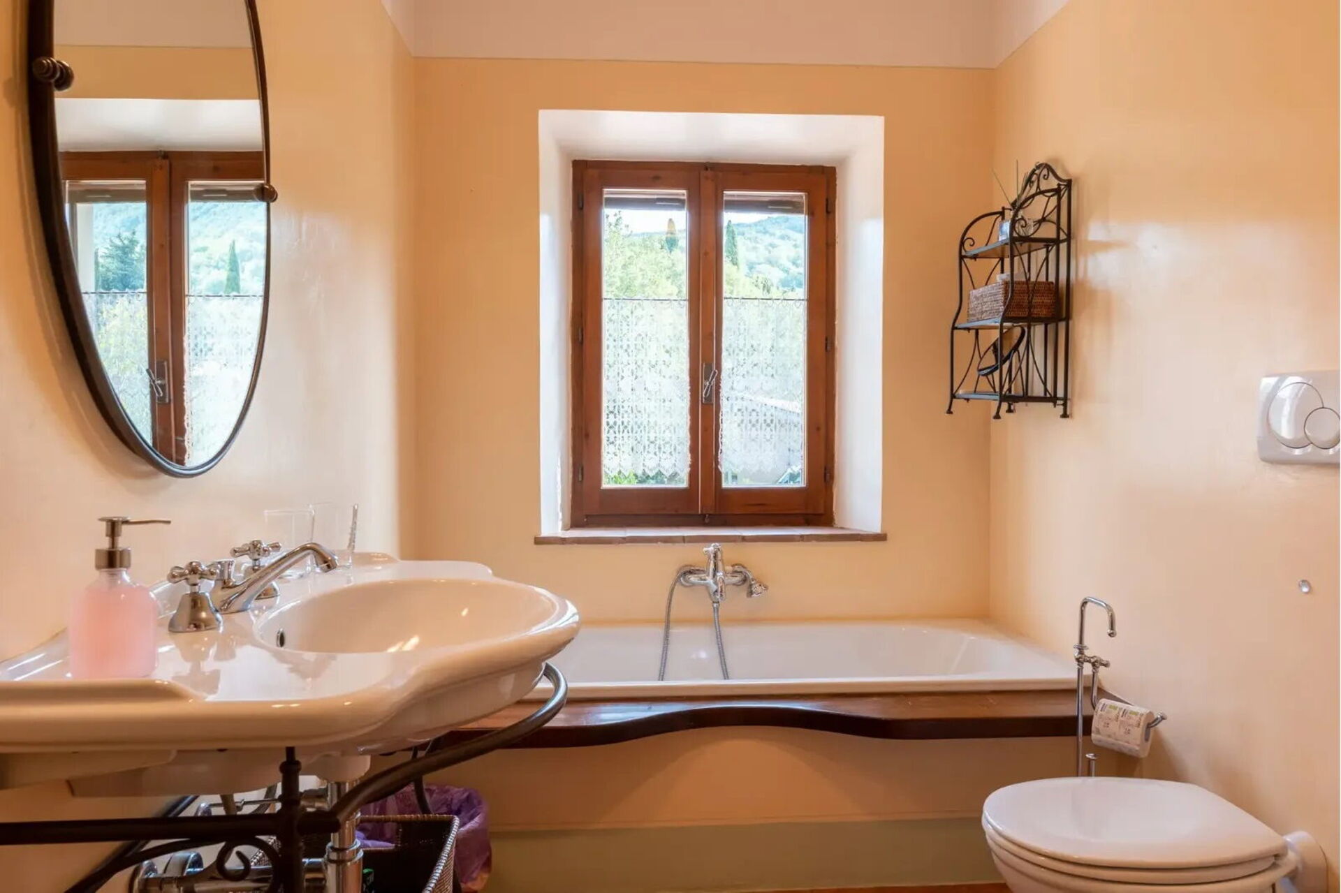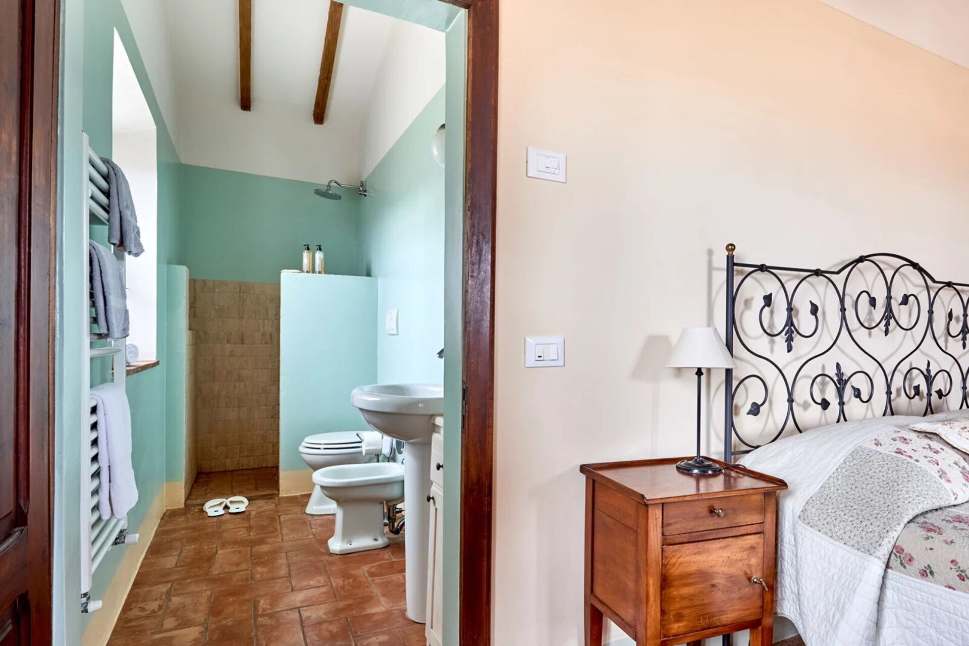 Podere i Prati’s spacious interiors are equipped with all amenities and tastefully furnished, keeping in line with traditional Tuscany country style.