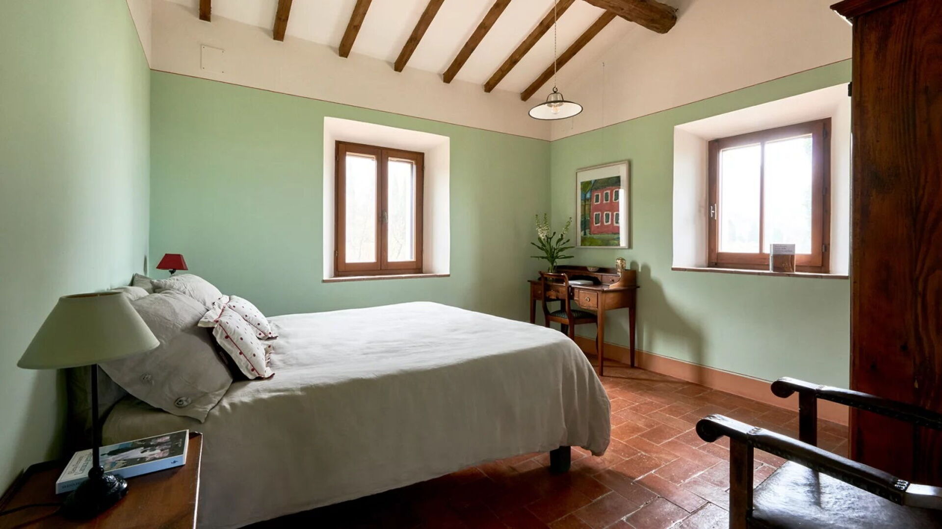The house is part of a country farmstead dating back to the 16th century, which has been carefully renovated. It is nestled among olive groves in the rolling hills of the Val d’Orcia (Orcia Valley), Tuscany.