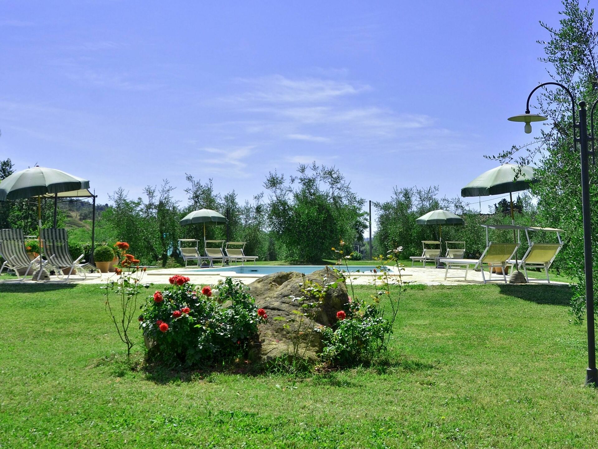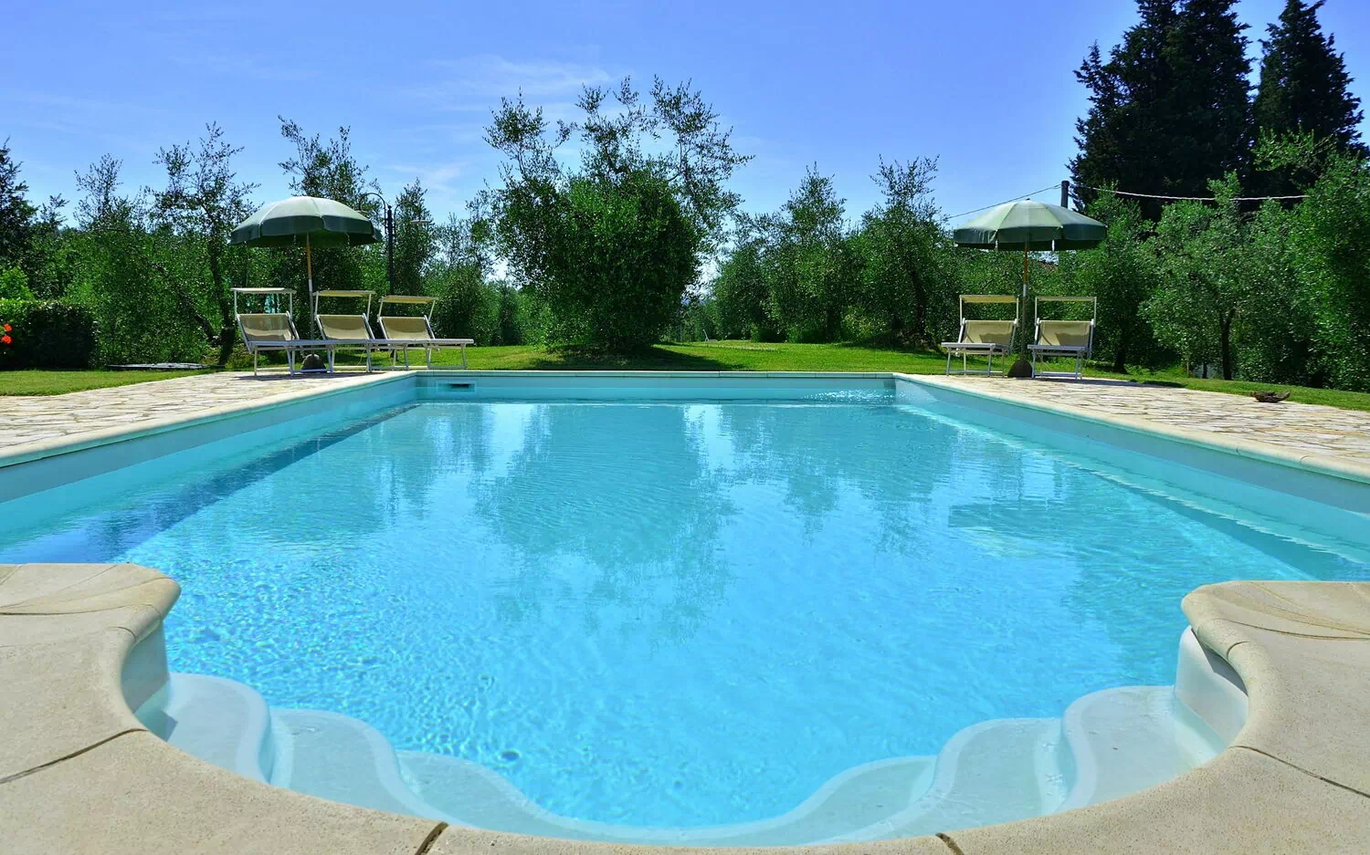 - Privat pool i en olivenlund under huset (10mx5m dybde 1,5m) åben 1. maj til30. September udstyret med liggestole, parasoller, havepavillon