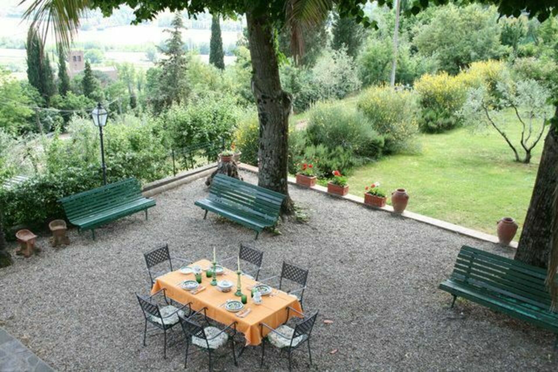 Ejendommen ligger på toppen af en bakke med panoramaudsigt til et fantastisk toscansk landskab bestående af skove, olivenlunde og vinmarker. Parkering på ejendommen.
