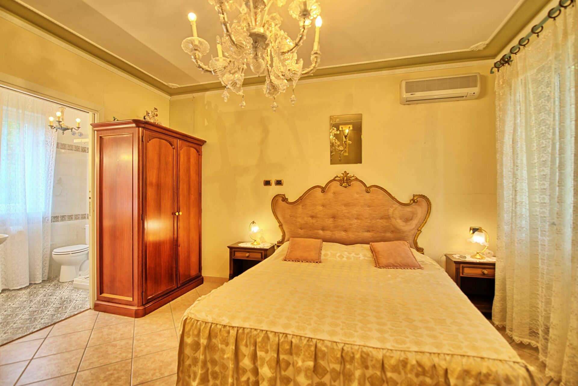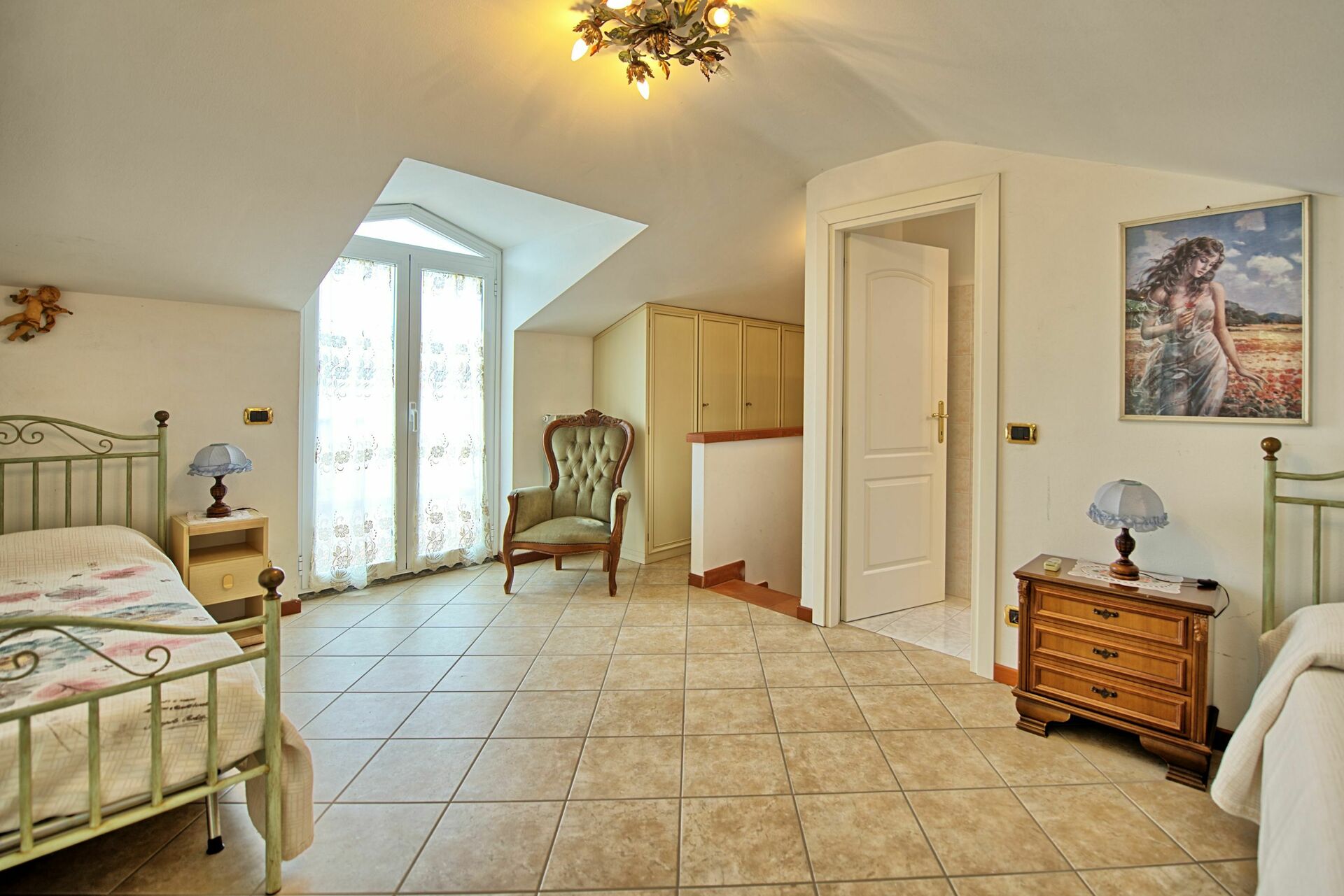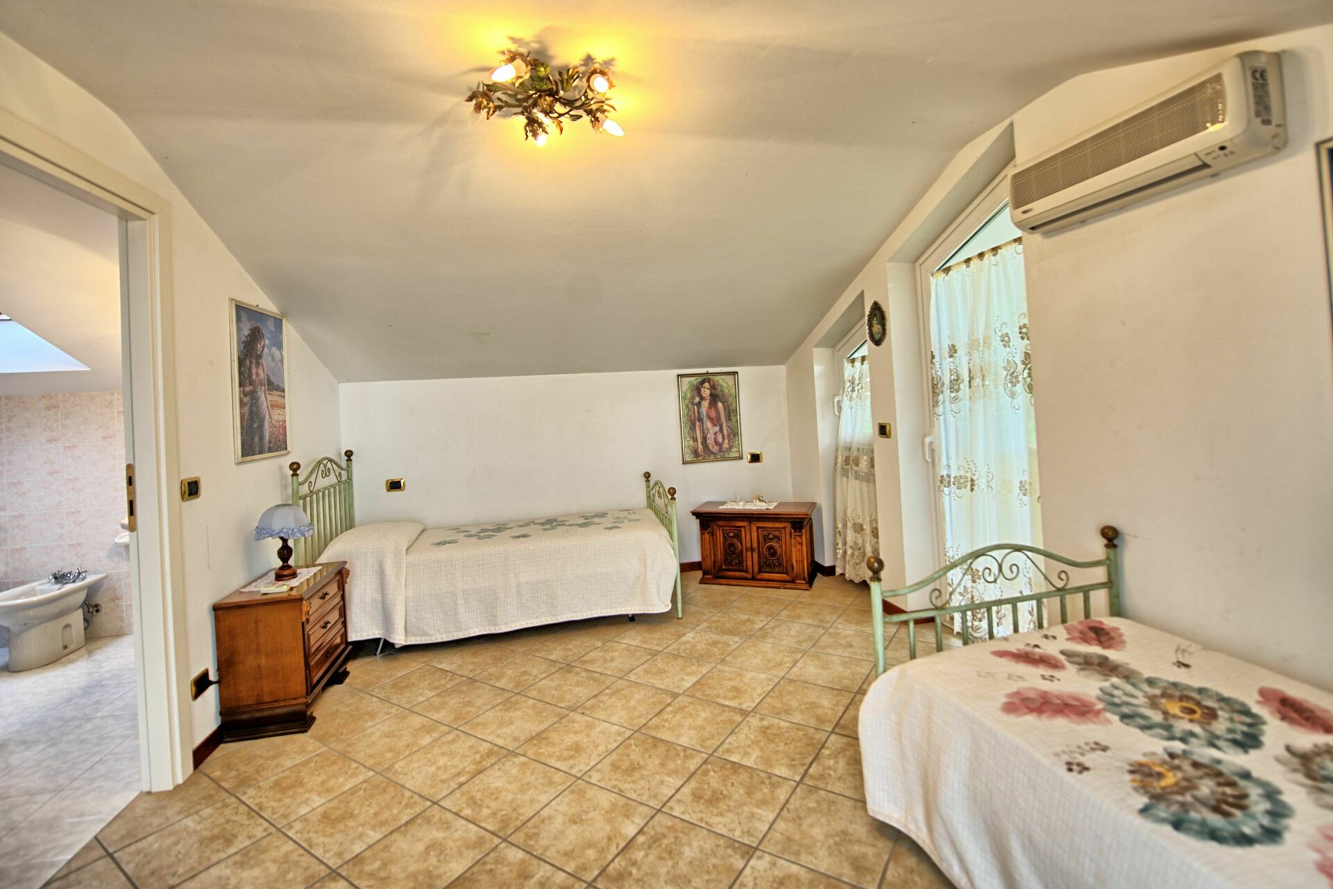 Soveværelse med udgang til terrasse med panoramaudsigt, badeværelse med massagebruser, dobbeltværelse med udgang til samme terrasse, dobbeltværelse med badeværelse med bruser (dette soveværelse bruges som en passage for adgang til etagen ovenover, og adgangen til soveværelset er spærret af et gardin)