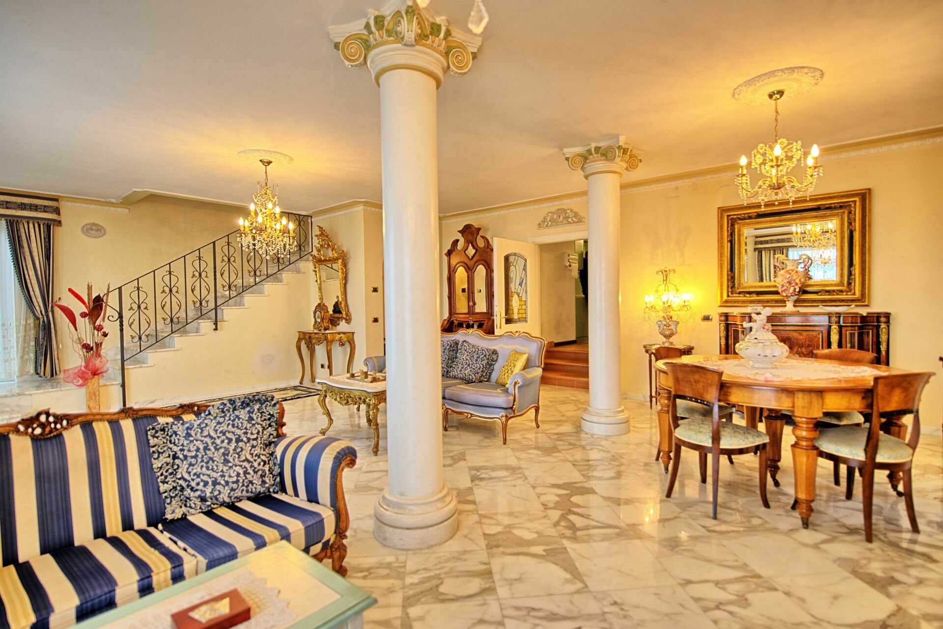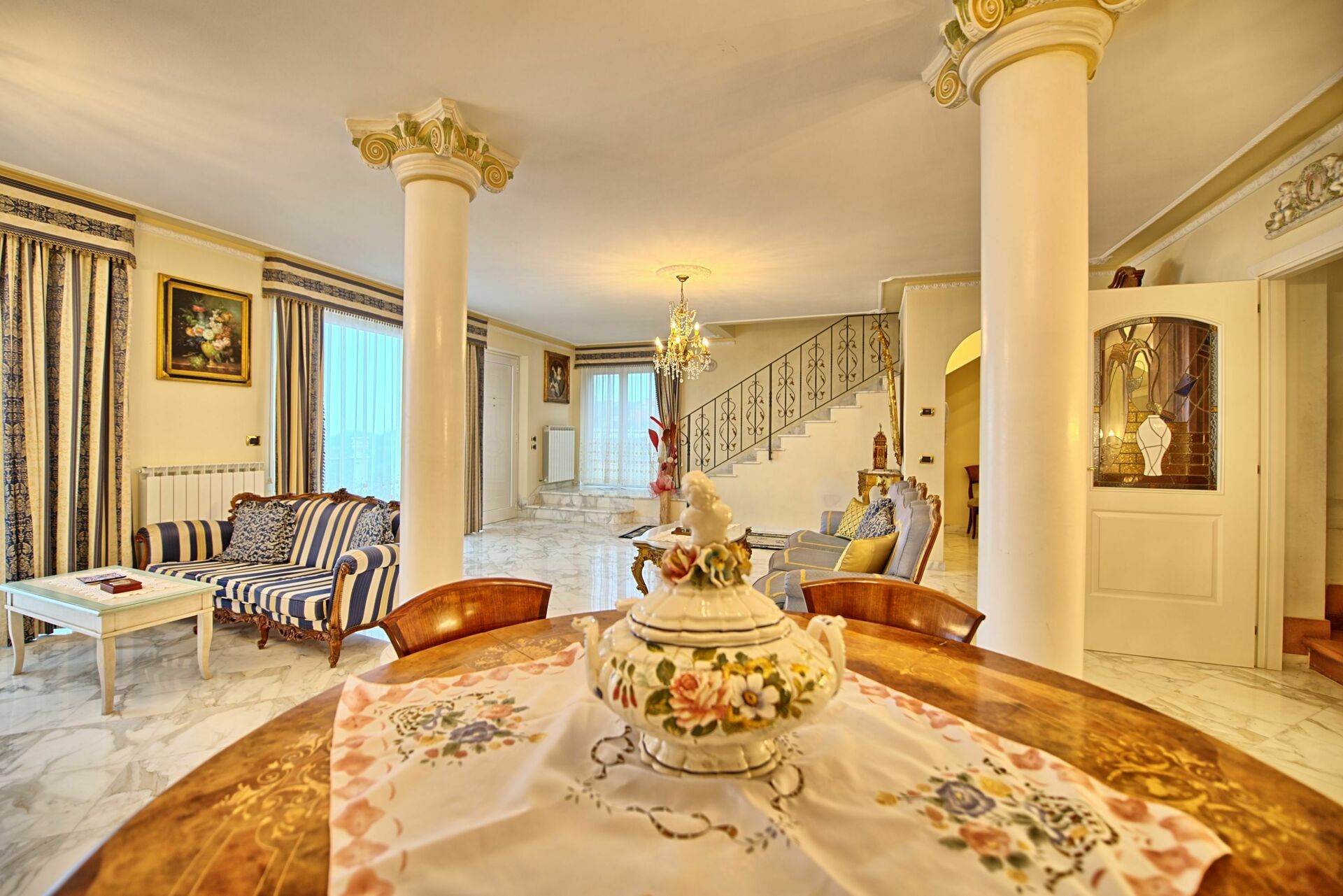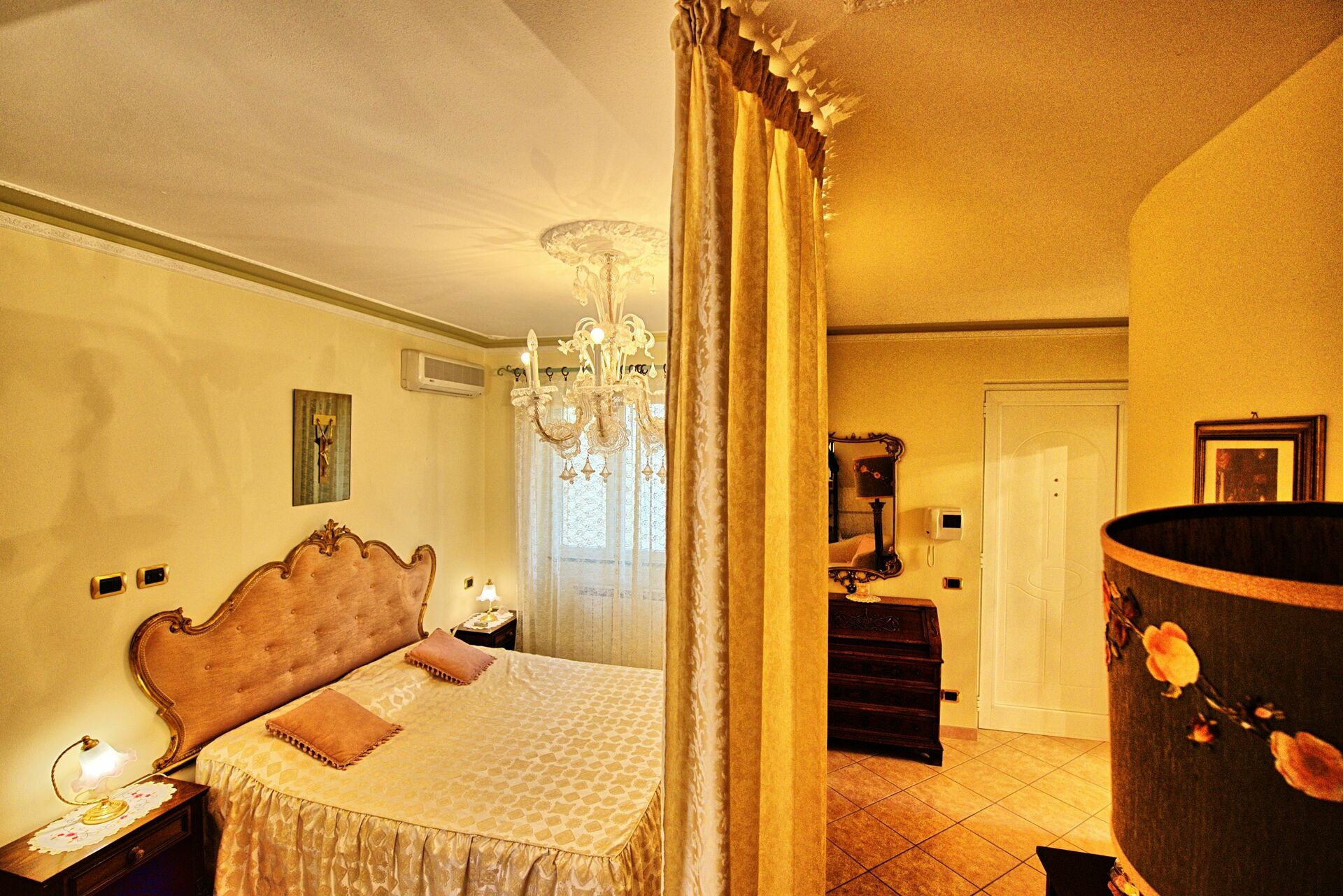 Soveværelse med udgang til terrasse med panoramaudsigt, badeværelse med massagebruser, dobbeltværelse med udgang til samme terrasse, dobbeltværelse med badeværelse med bruser (dette soveværelse bruges som en passage for adgang til etagen ovenover, og adgangen til soveværelset er spærret af et gardin)