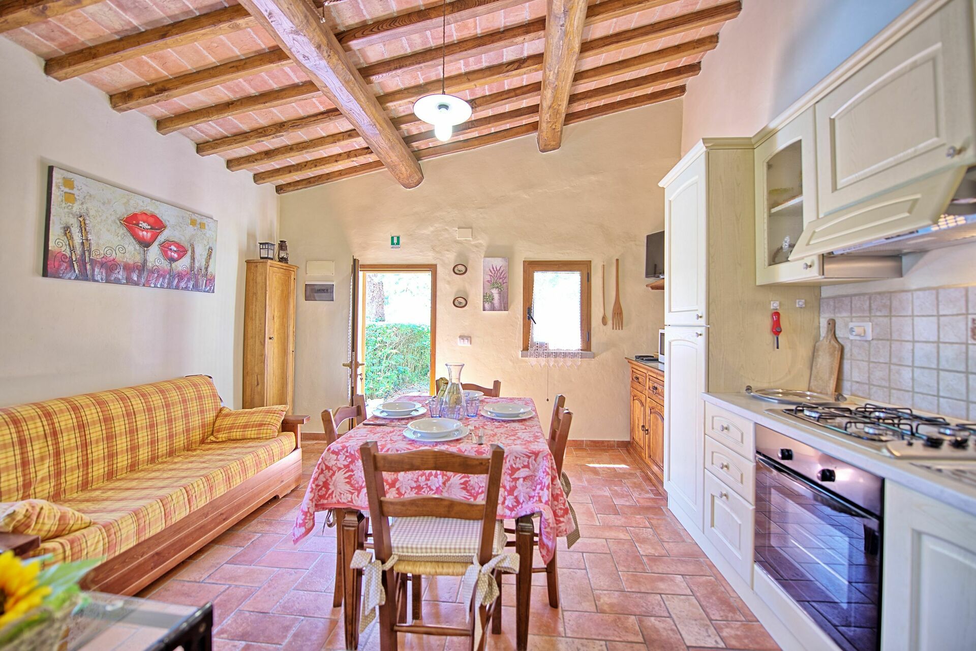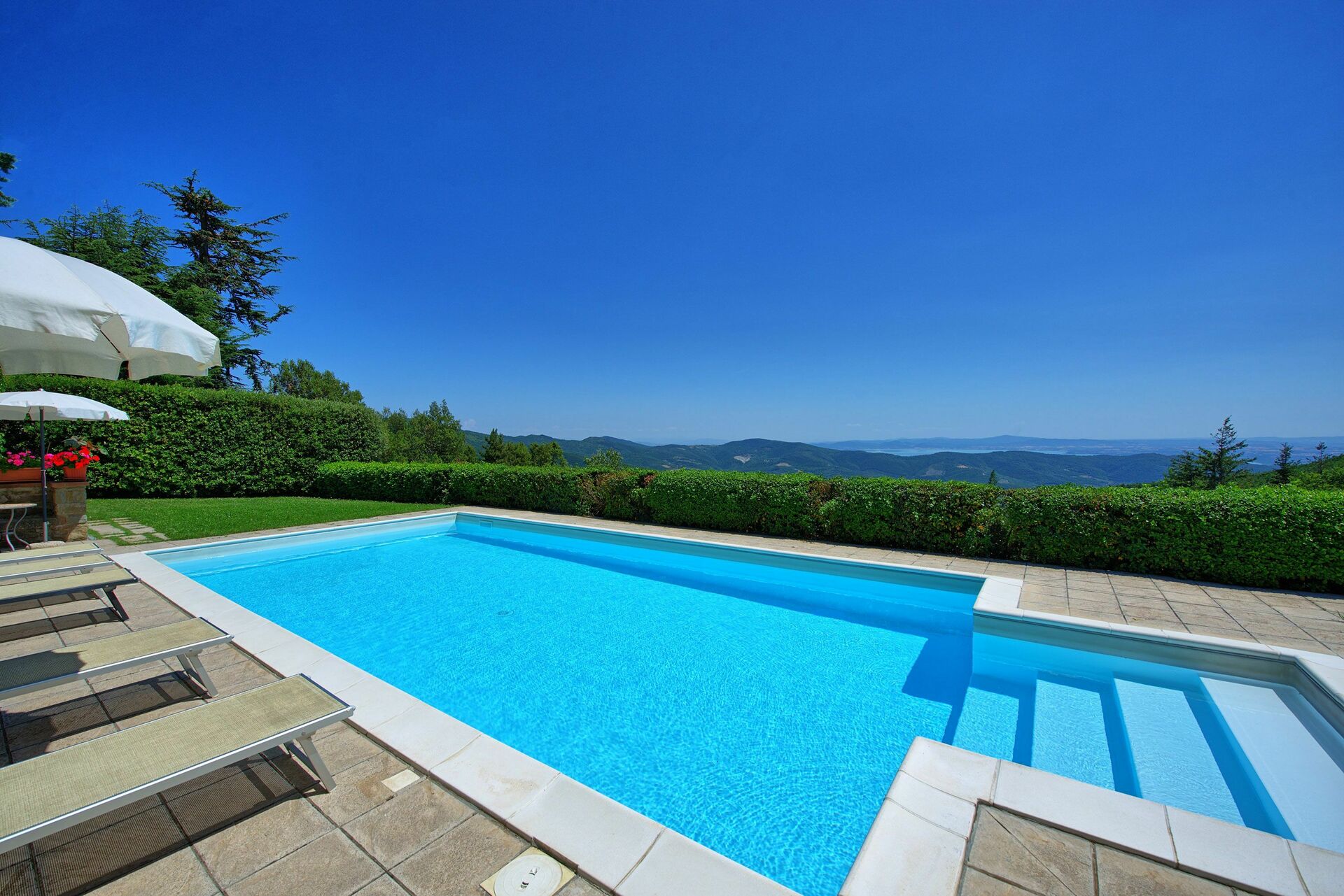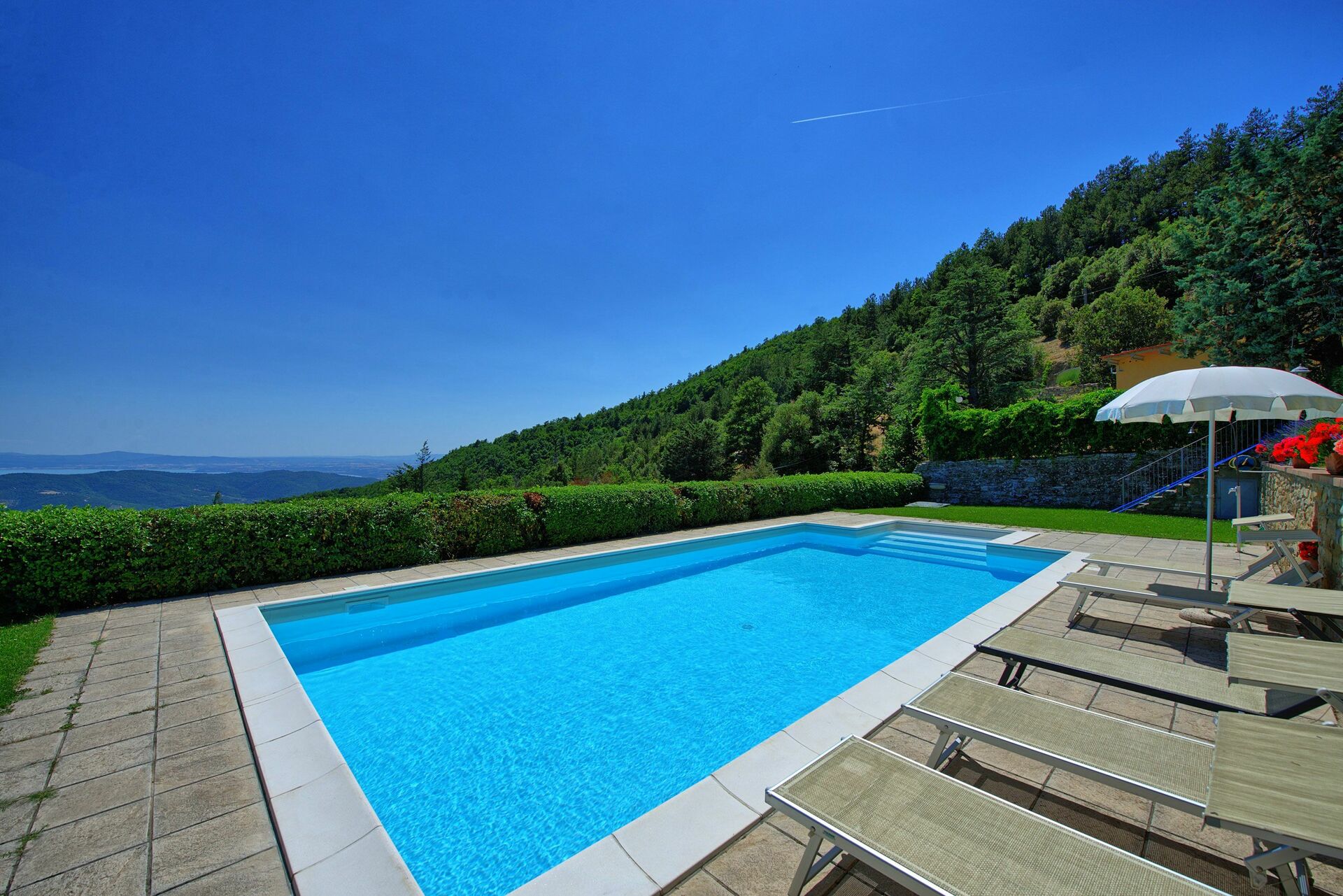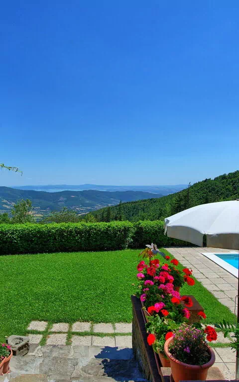 Ejendommen er roligt beliggende i rolige omgivelser og fra poolen har du en vidunderlig udsigt til det smukke omgivende landskab og Trasimeno-søen i det fjerne. Lejligheden er indrettet i en rustik stil, der er typisk for området. Ejerne bor i hovedhuset et stykke væk. Ejendommen ligger på grænsen mellem Toscana og Umbrien.
