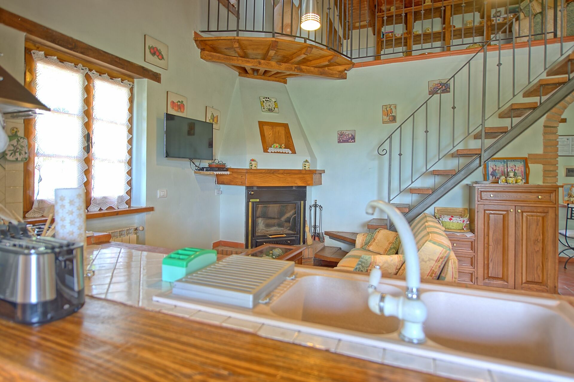 Afstande: Den lille by Portole med købmandsforretninger 6 km, Cortona med alle slags butikker 13 km, Città di Castello 40 km, Arezzo 40 km, Trasimeno sø 30 km.