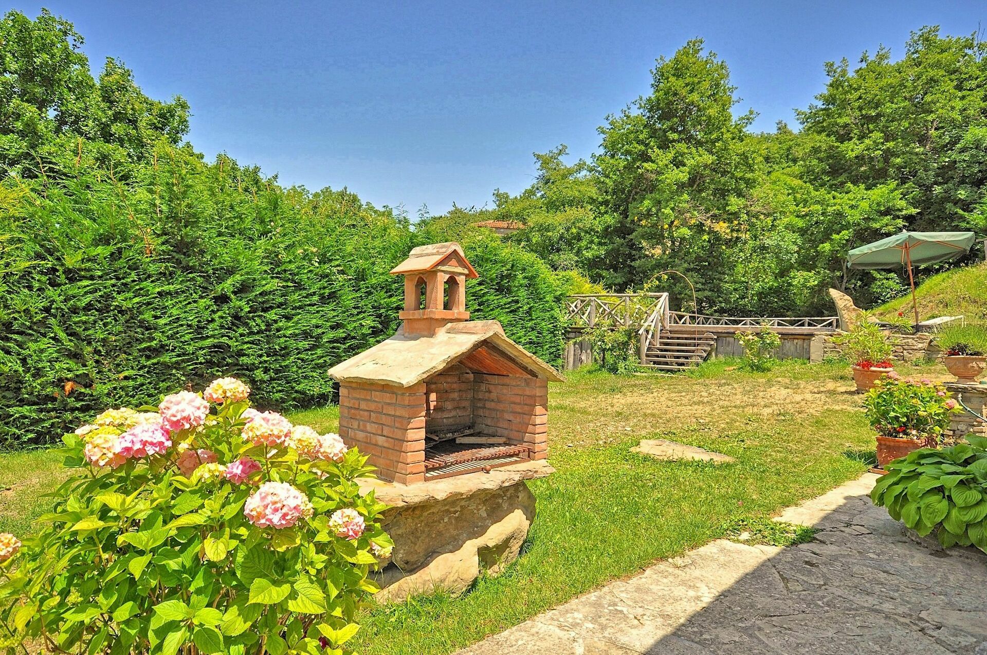 La casa è molto bella e pulita e ben arredata anche con lavastoviglie e lavatrice. Internet funzionava bene. Il giardino è veramente bello con una piscina stupenda e vista fantastica. Un posto dove si può veramente rilassare. E Cortona e molto vicino e bellissima!