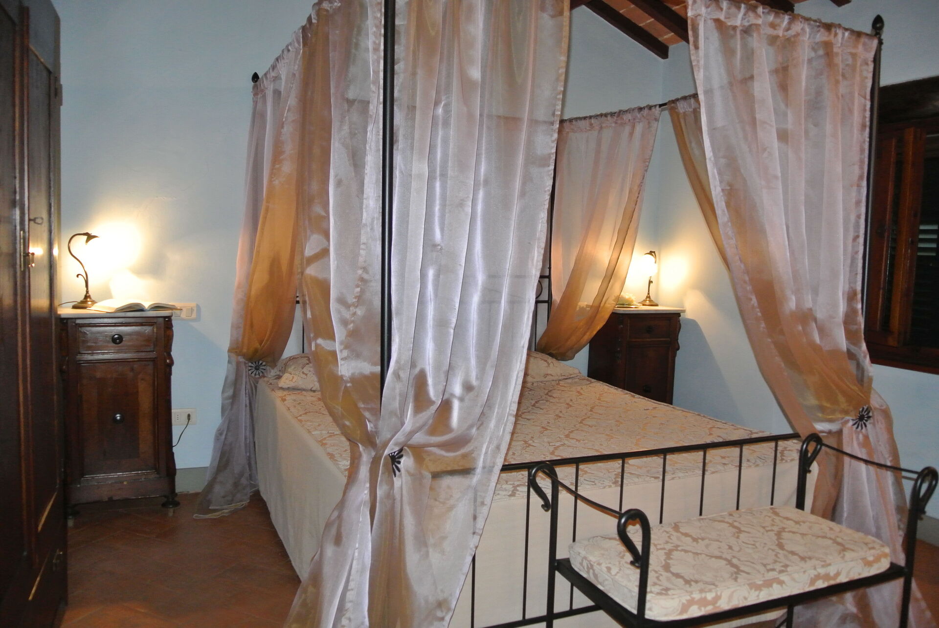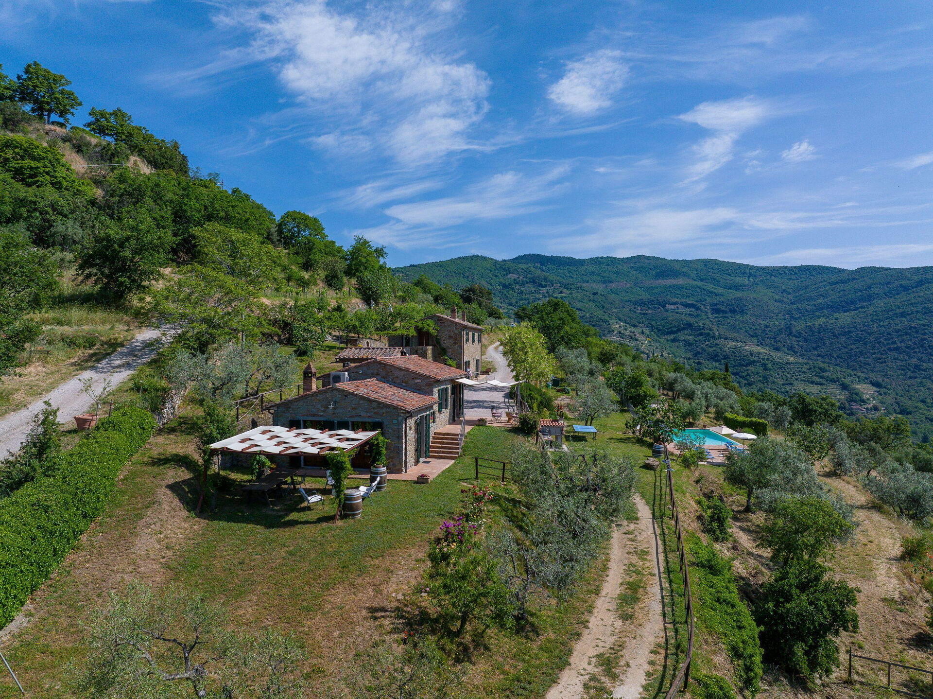 Ejendommen er fra begyndelsen af det 15. århundrede, fuldstændig restaureret med originale træk bevaret i rustik toskansk bondestil (synlige bjælker, terrakottagulve, brug af træ og lokale sten). Feriehuset ligger i et bakket landskab præget af dyrkede marker, skove og olivenlunde og har en smuk have med mange planter og blomster og en smuk swimmingpool, der er reserveret til gæsterne.
