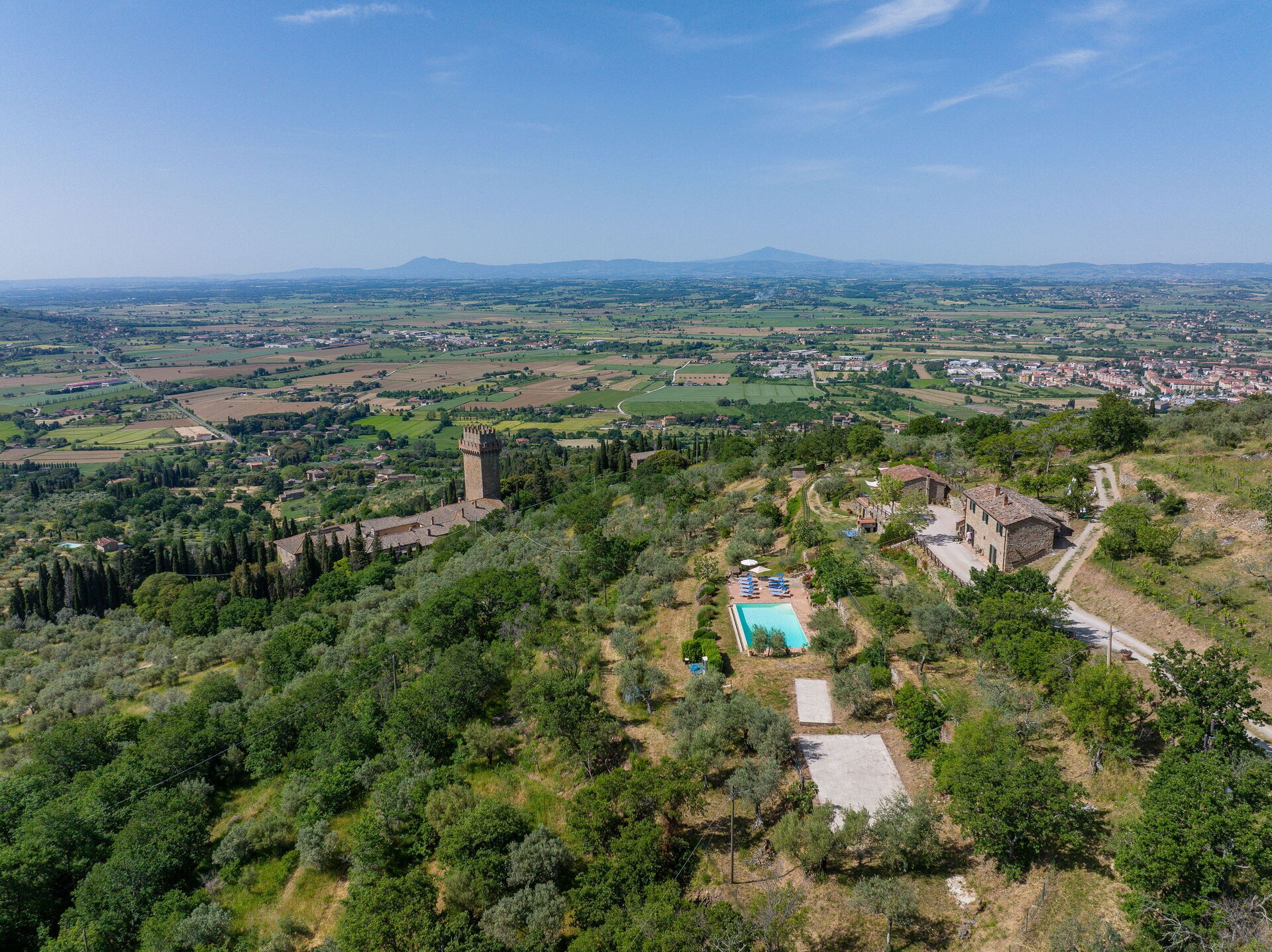 Ejendommen ligger i umiddelbar nærhed af Cortona (en smuk by af etruskisk oprindelse i provinsen Arezzo) og kan nås til fods via en oplyst, trafikfri gågade.