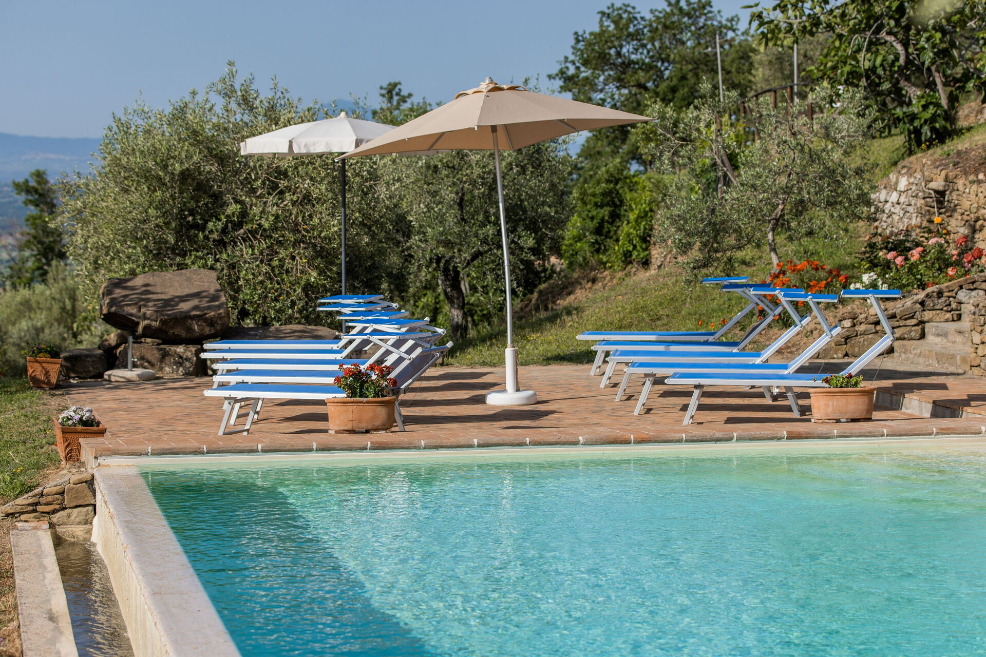 Poolterrassen med liggestole og panoramaudsigt er et perfekt sted at tilbringe lange timer under den toscanske sol og slappe af. Et stort område med grill, brændeovn, bord og stole giver dig mulighed for at arrangere lækre frokoster og middage i det fri, mens du nyder freden i det toscanske landskab og de smukke, verdensberømte bakker.