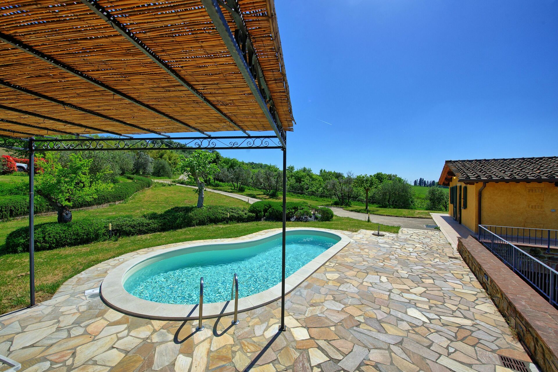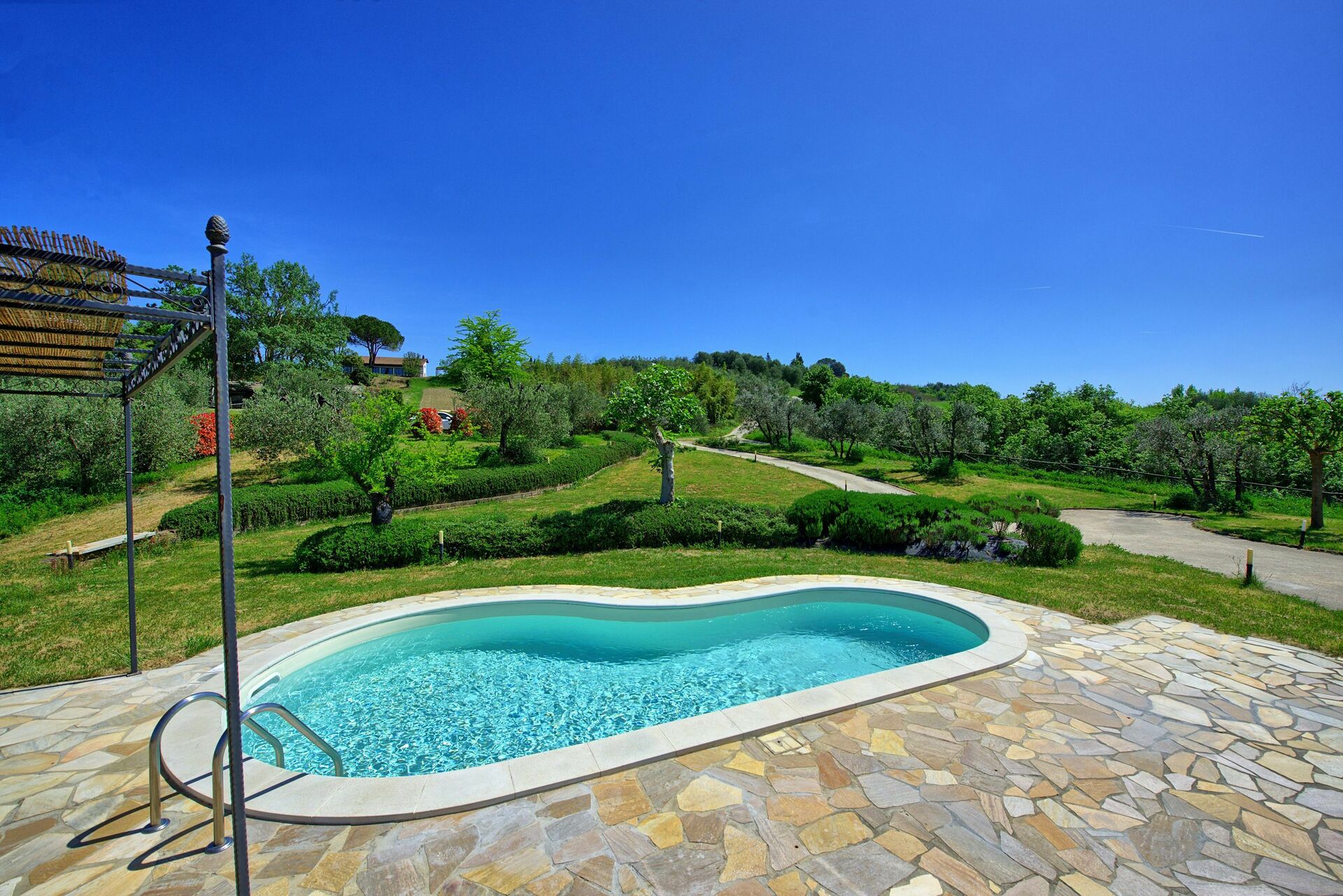 Charmerende lille villa med privat pool beliggende på bakkerne omkring den lille by Cambiano 45 km fra Firenze i Toscana. Feriehuset er bygget i 2009 og byrer på skønne udendørs arealer med en smuk terrasse, havepavillon, møbleret have og privat pool. Interiøret er indbydende og sommerhuset har aircondition. Fra ejendommen har man smuk panoramaudsigt.