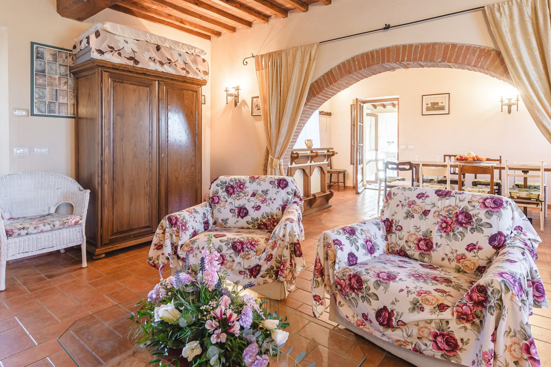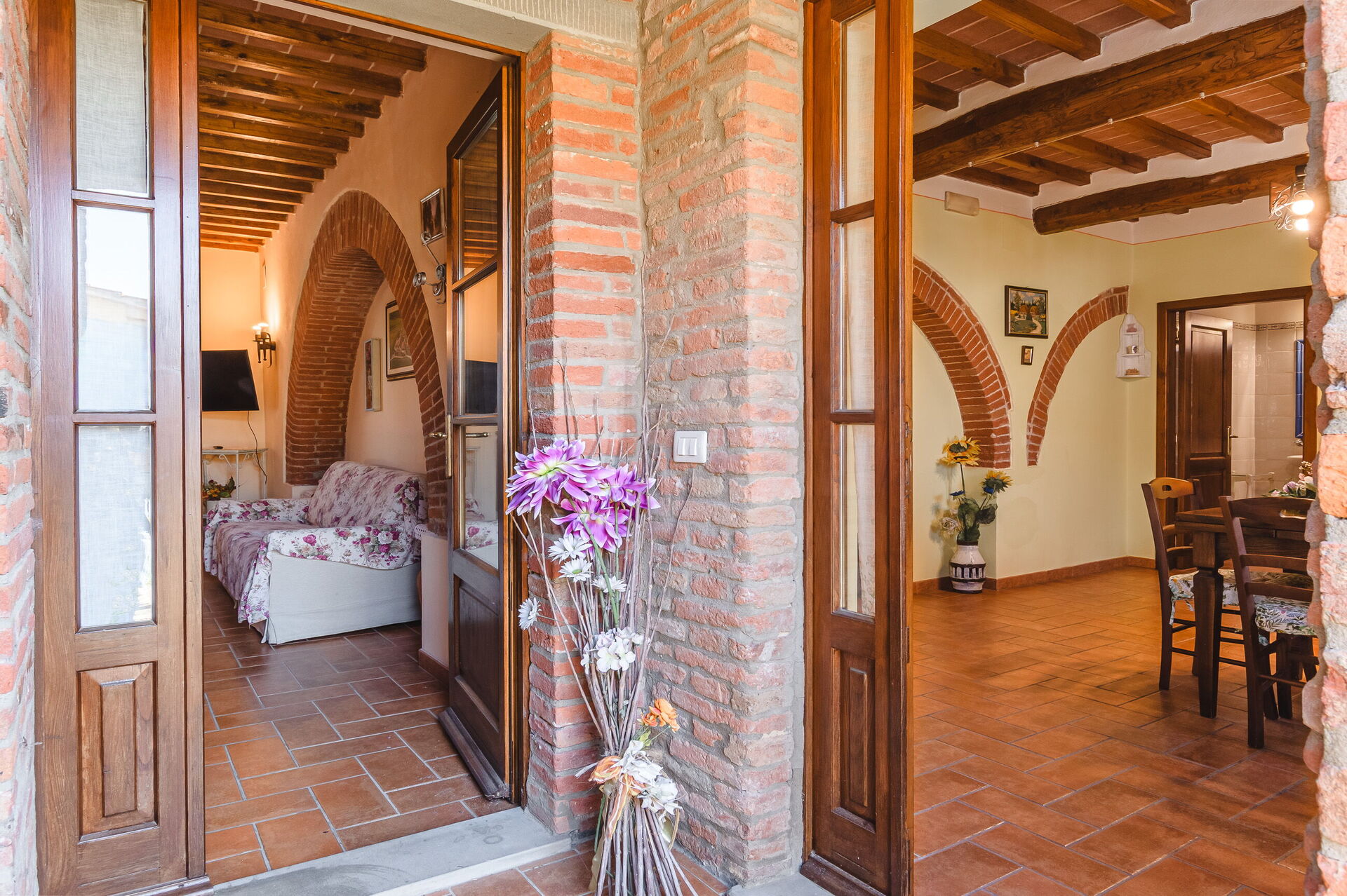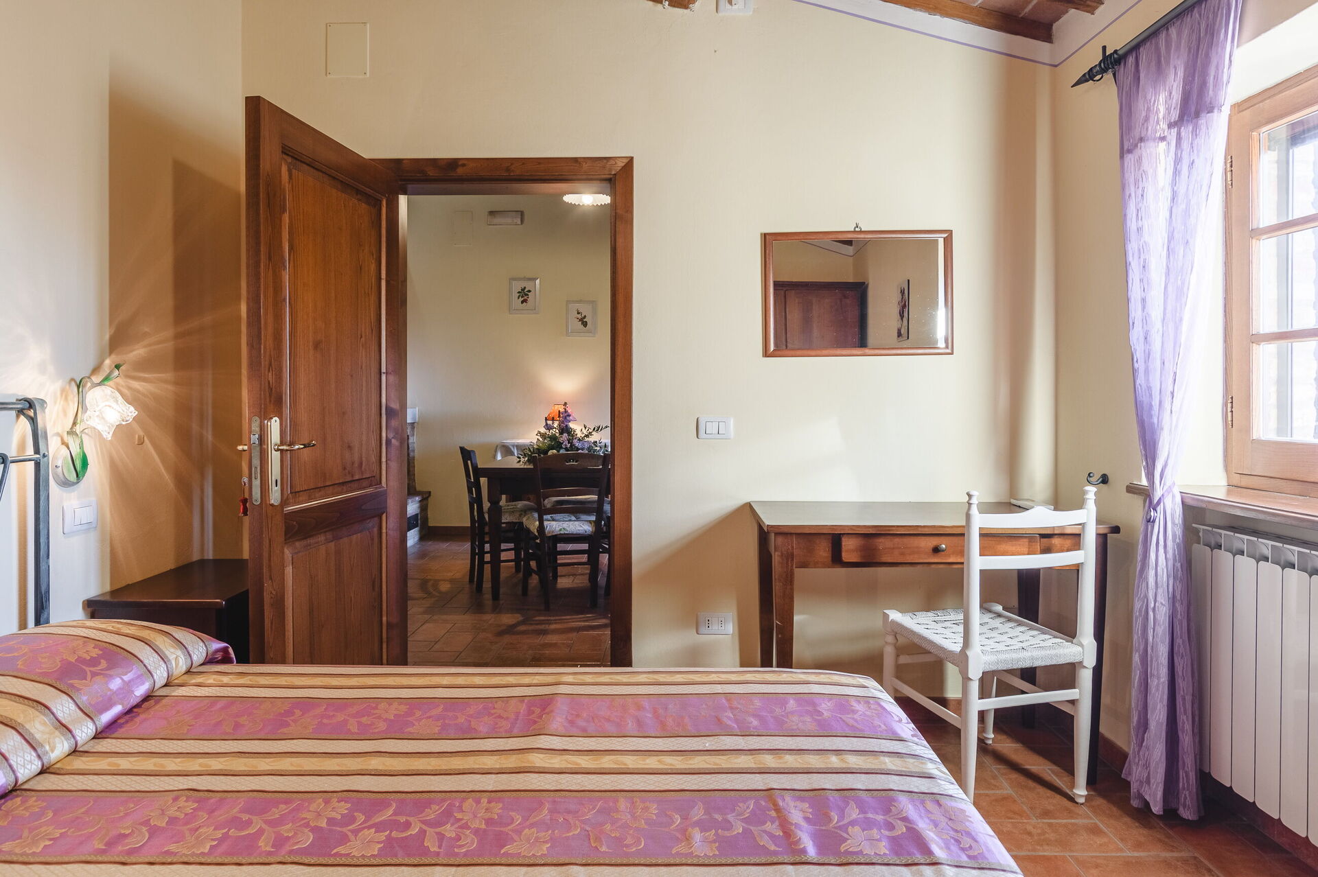 Ejendommen ligger i hjertet af Valdichiana, og gæsterne vil nyde rolige landlige omgivelser. Familien, der ejer ejendommen, bor i nærheden og driver gården, der producerer vin og olivenolie.