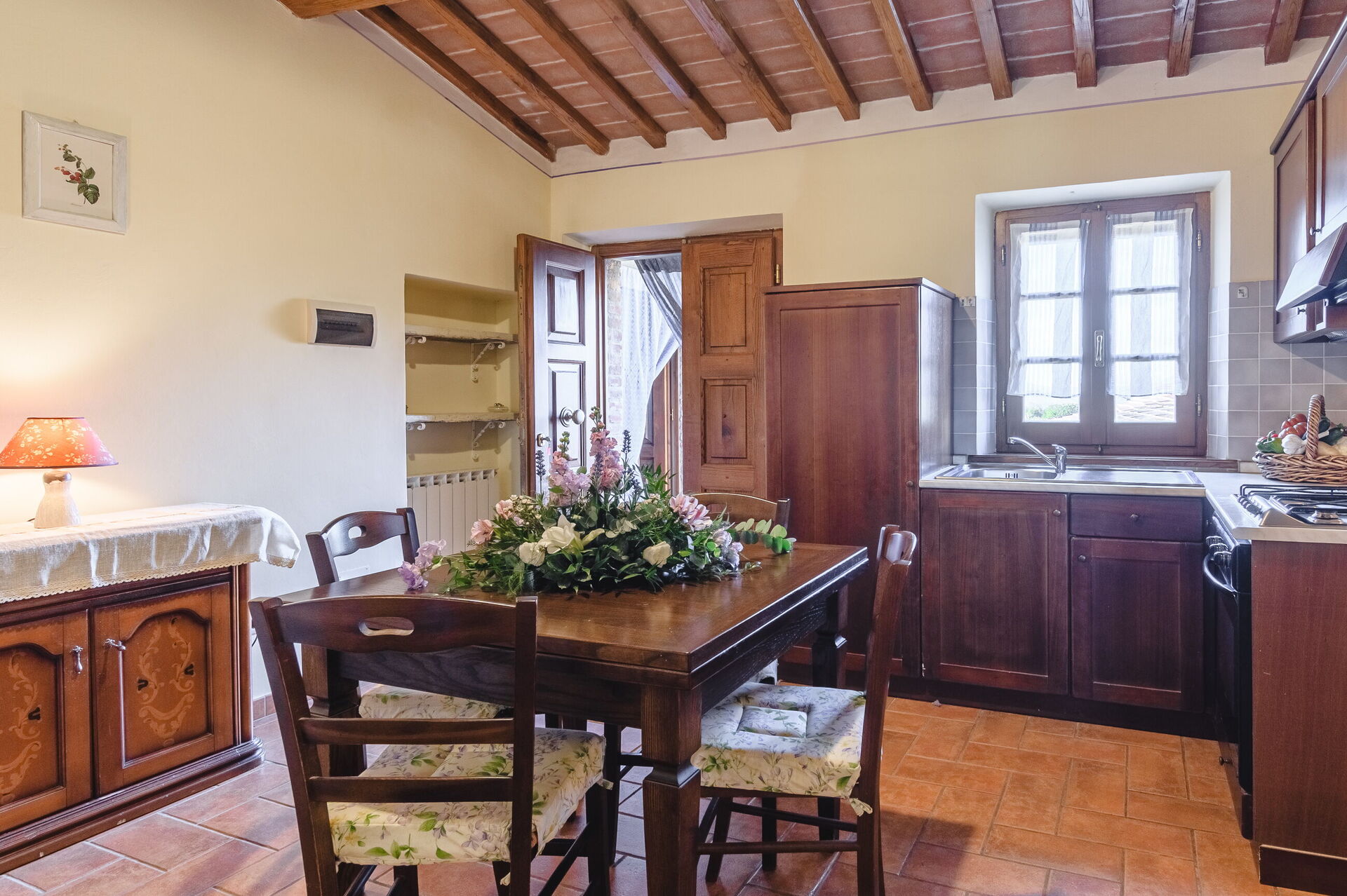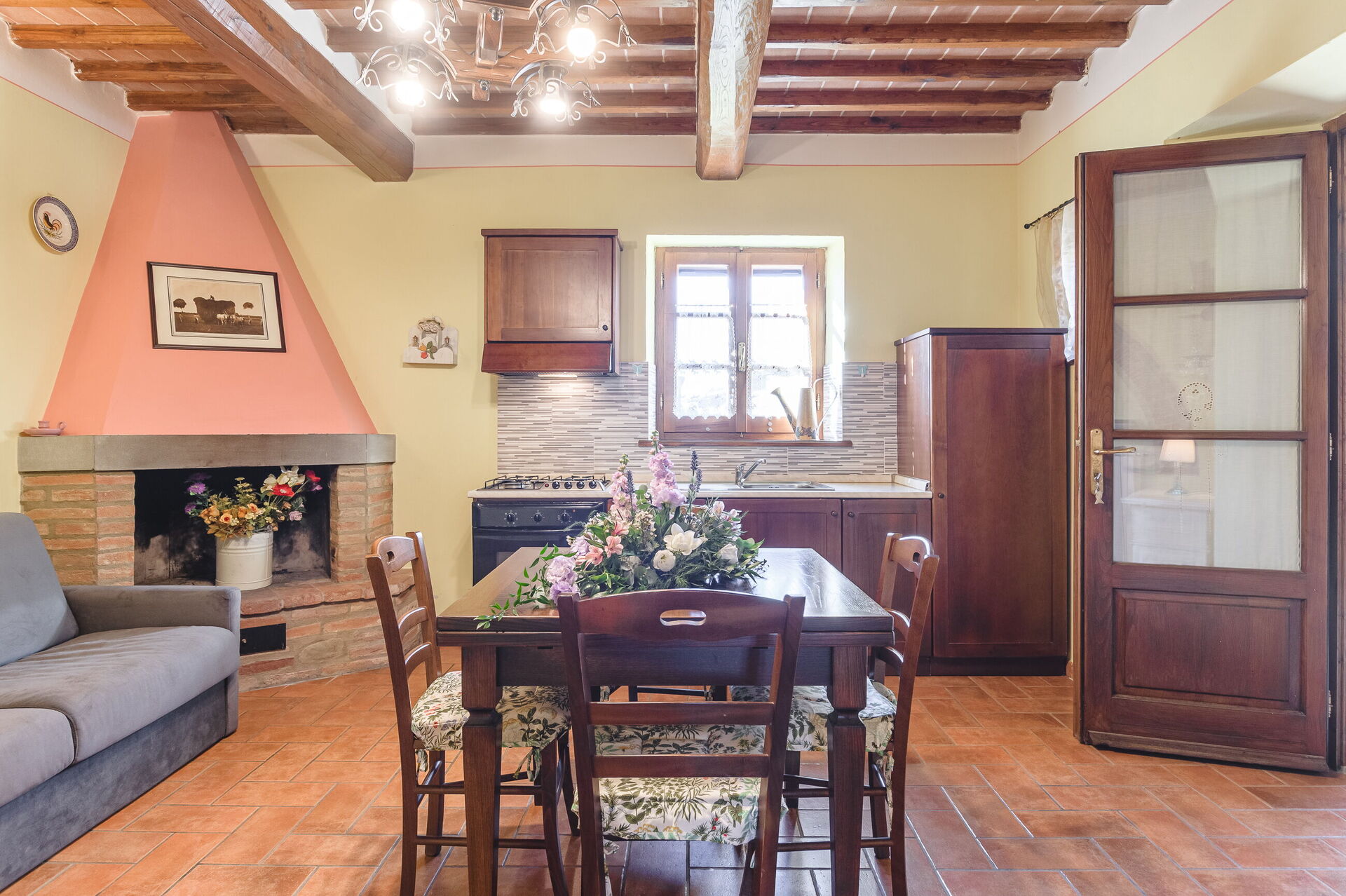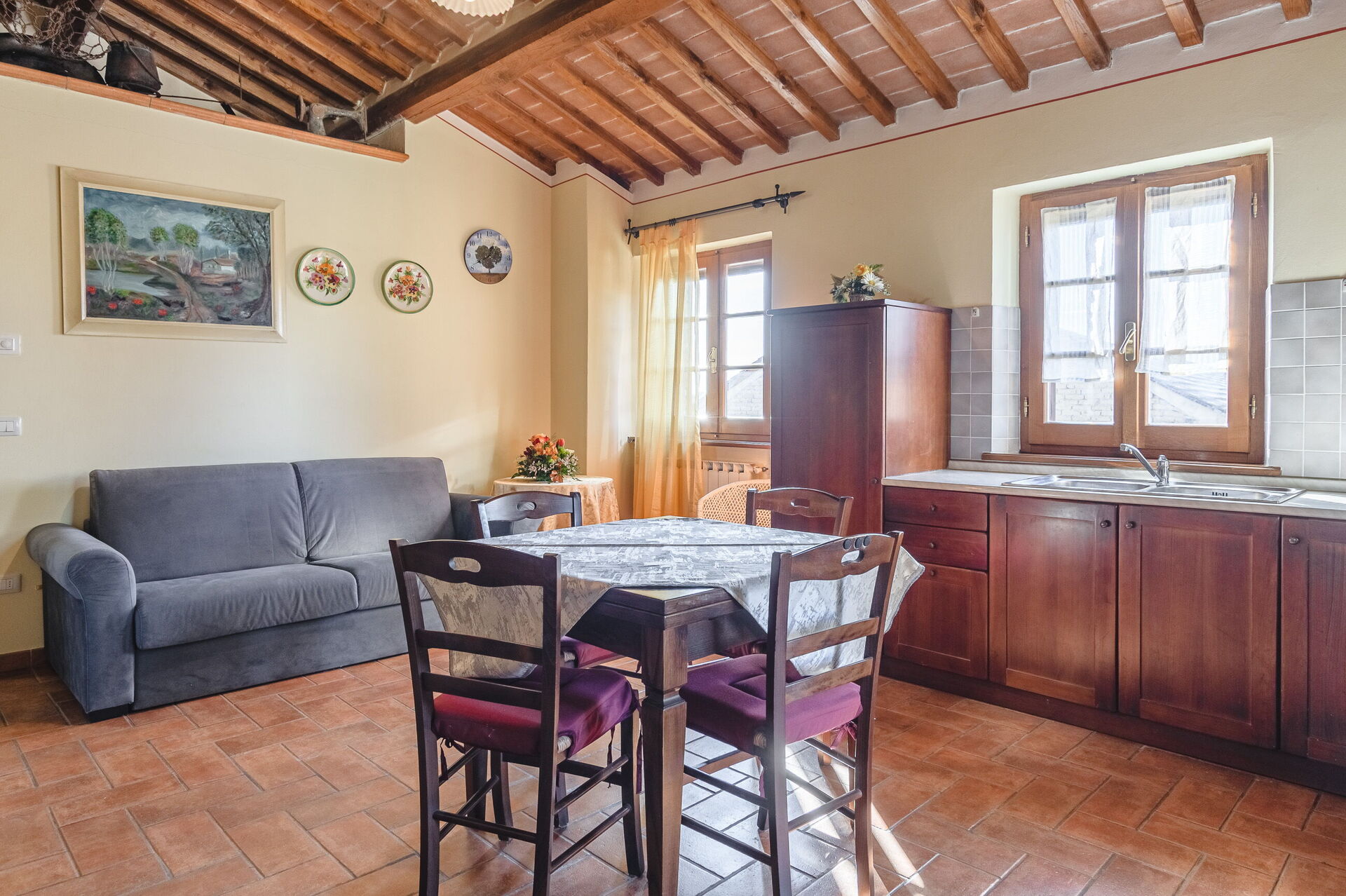 Ejendommen ligger i hjertet af Valdichiana, og gæsterne vil nyde rolige landlige omgivelser. Familien, der ejer ejendommen, bor i nærheden og driver gården, der producerer vin og olivenolie.