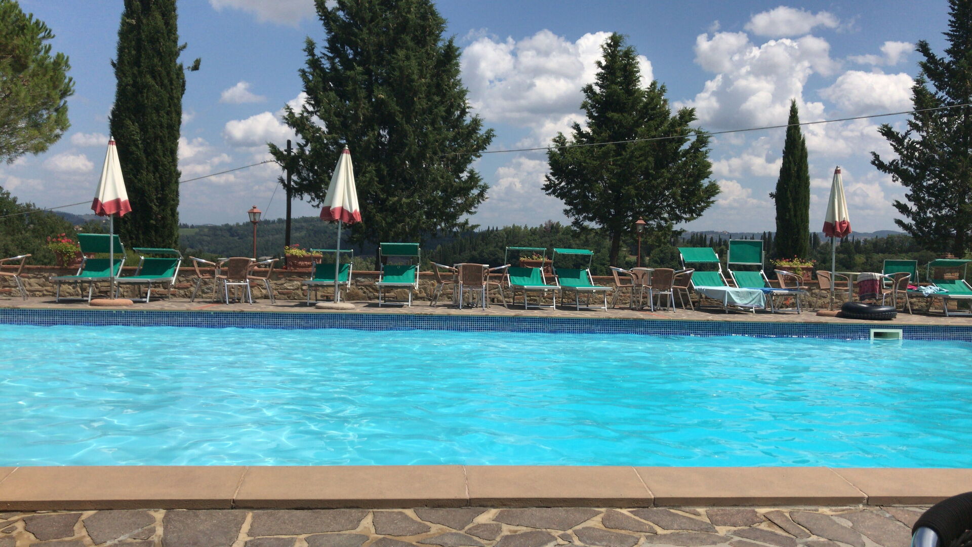 Apt Girasole has a very nice porch. Swimming-pool and facilities are ok. Very nice view. Apartment living room too small. During summertime this is no problem, but off-season this might be a problem, bedrooms just ok. Matrasses are a bit firm. Weekly pizza party too expensive. This activity can have more result if a little more prfoessionalism is put into it.