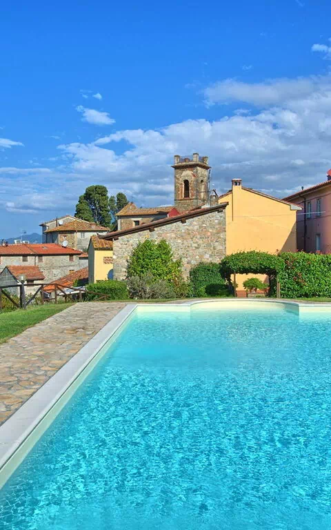 De 8 lejligheder, der udgør denne ejendom, ligger i en charmerende landsby på bakkerne mellem Lucca og Versilia-kysten og kan dateres tilbage til det 15. århundrede. Lejligheden ligger i et smukt område i Toscana og tilbyder en smuk panoramaudsigt over det charmerende omkringliggende landskab. Fra ejendommen kan man også se den toscanske kystlinje med øer. Ejendommen er et perfekt udgangspunkt for at opleve smuk natur, historiske steder samt mad og vin.