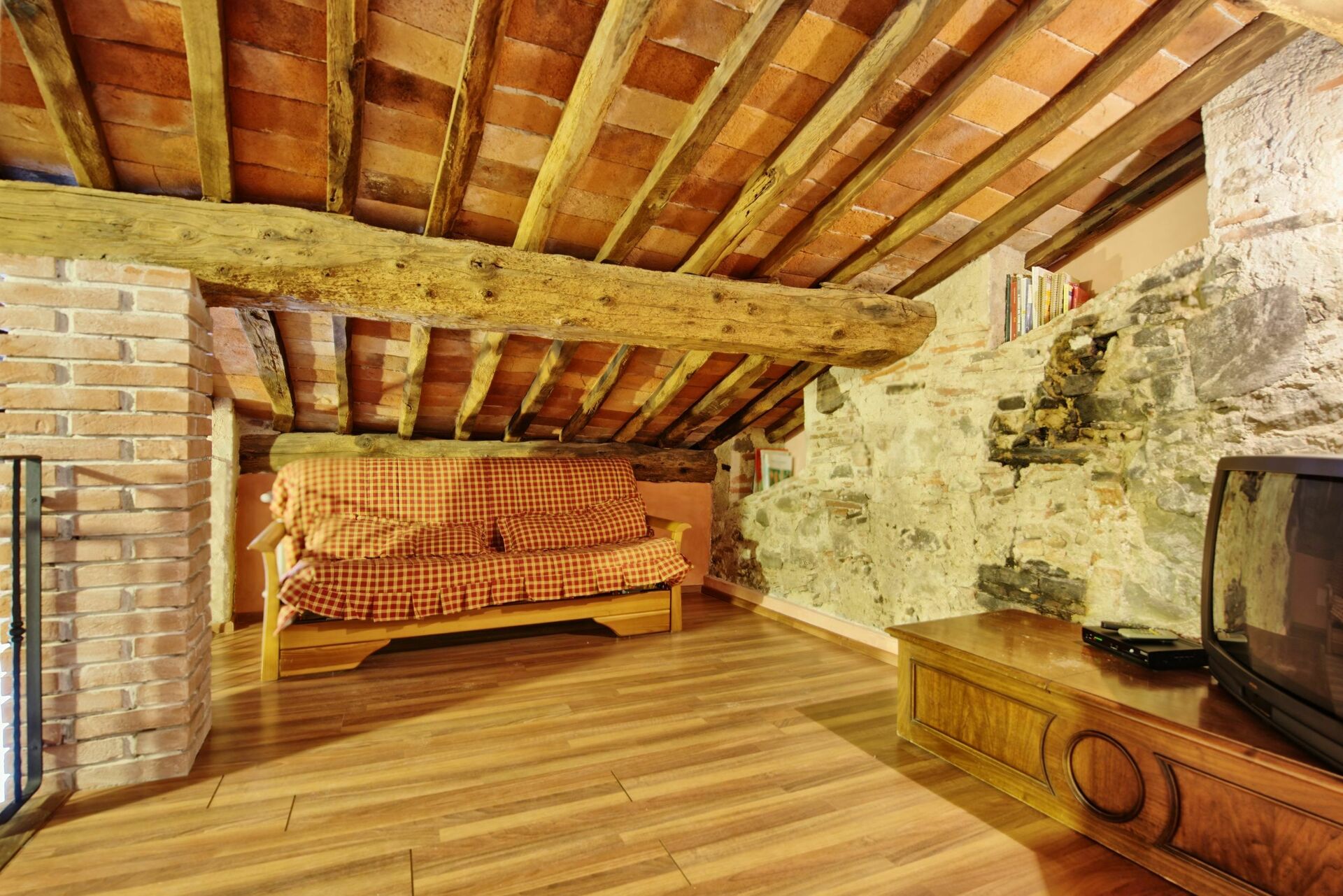 Loft: Opholdsstue med sovesofa (dobbelt størrelse), soveværelse med dobbeltseng.