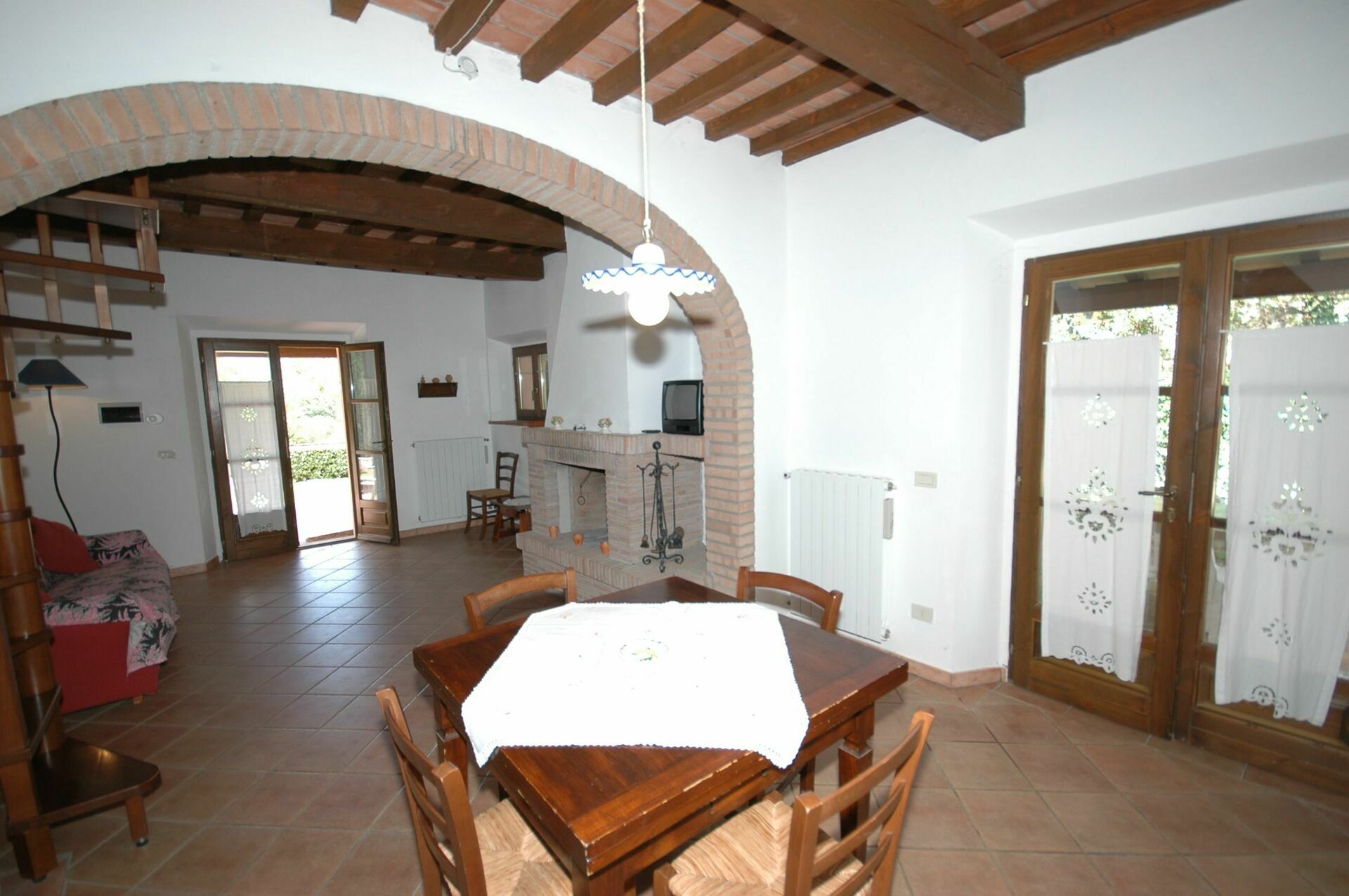 Første sal (adgang via en vindeltrappe eller via en ekstern trappe): soveværelse med dobbeltseng, soveværelse med to enkeltsenge, toilet.
