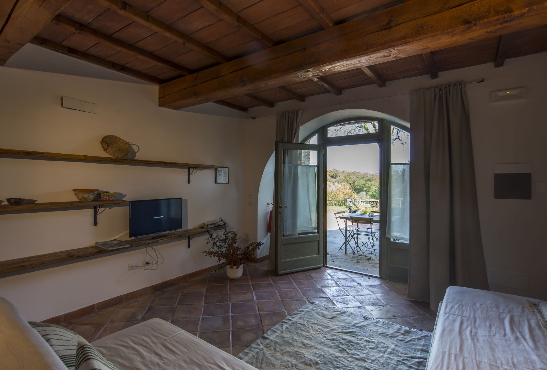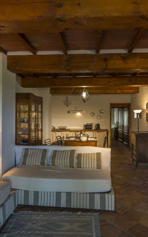 Stue (med 2 ekstra sovesofaer, på forespørgsel) og spiseplads med køkken (opvaskemaskine, ovn, køleskab, induktionskogeplade, mikroovn, kaffemaskine, ventilator), 1 dobbeltværelse, badeværelse med bruser.