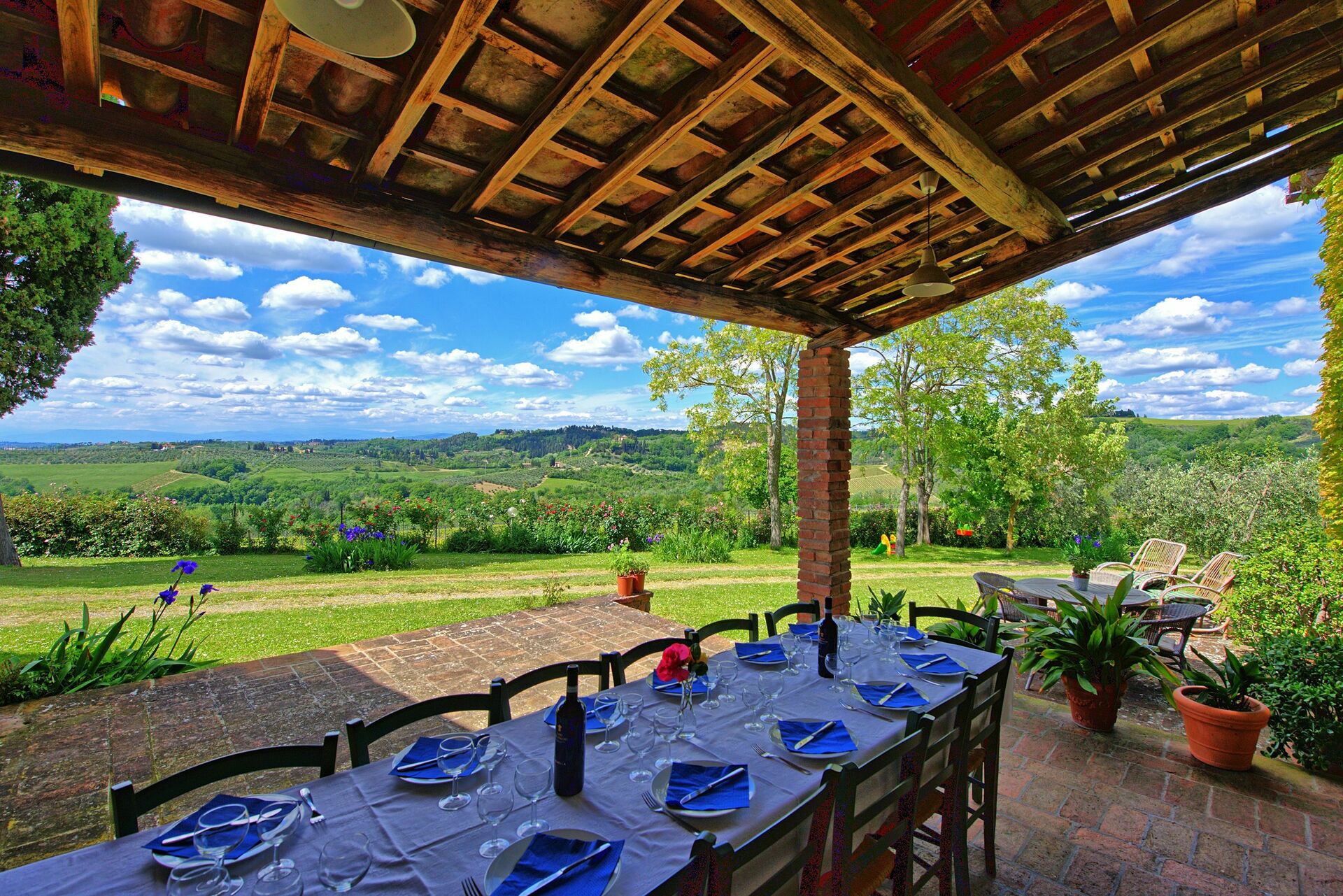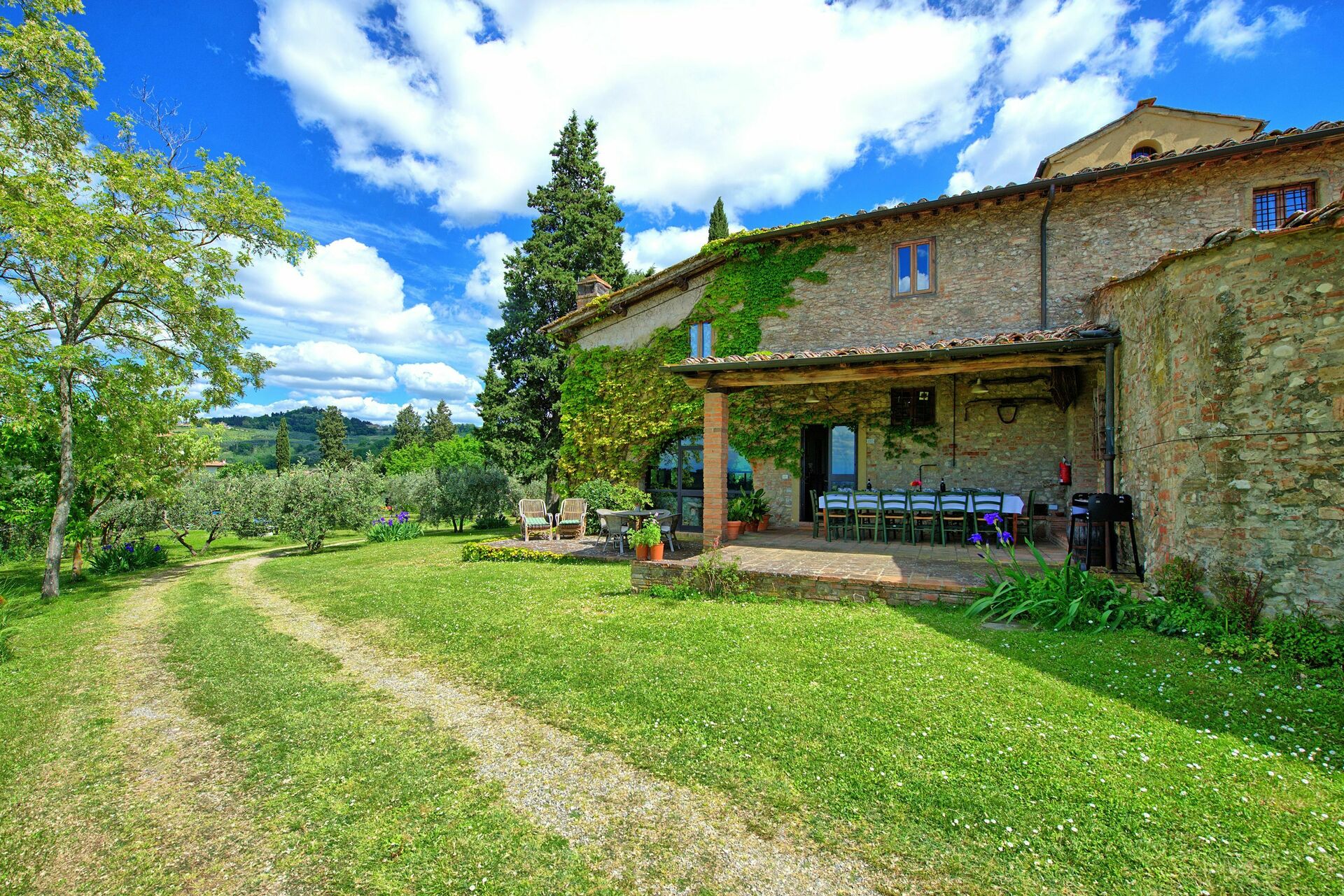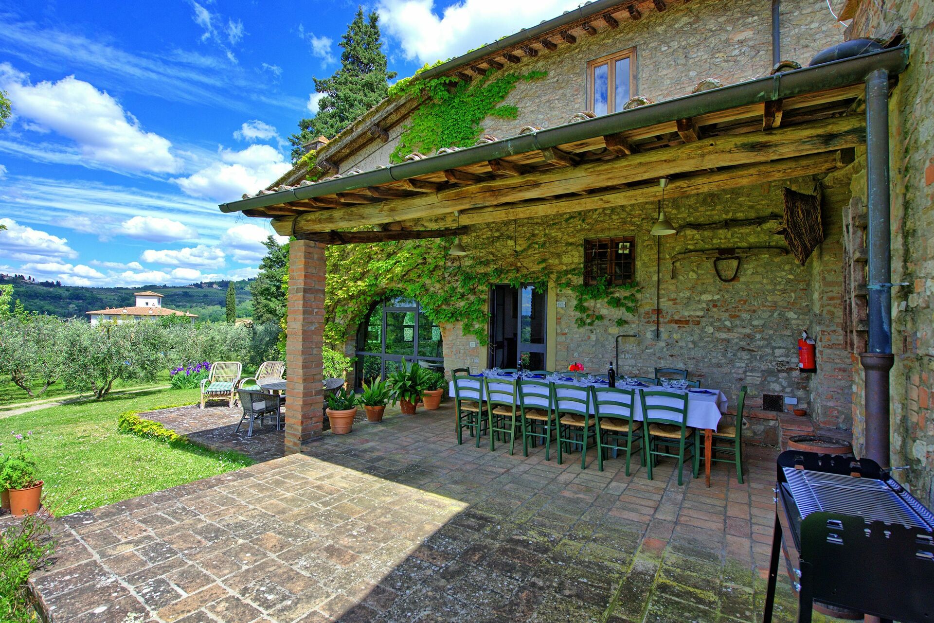 Feriehuset er perfekt, hvis du er på udkig efter en ferie med familie eller venner. En smuk portico udstyret med borde og stole giver dig mulighed for at spise udendørs, mens du nyder udsigten over de smukke Chianti-bakker sydvest for Firenze.