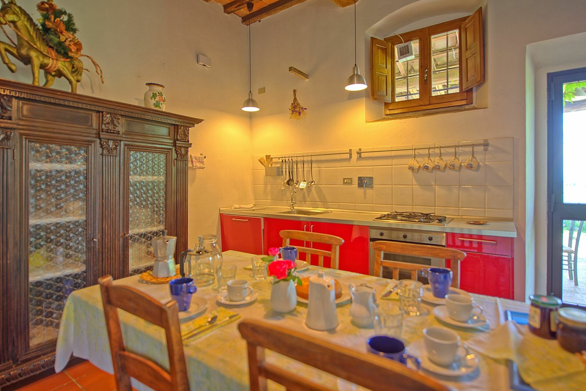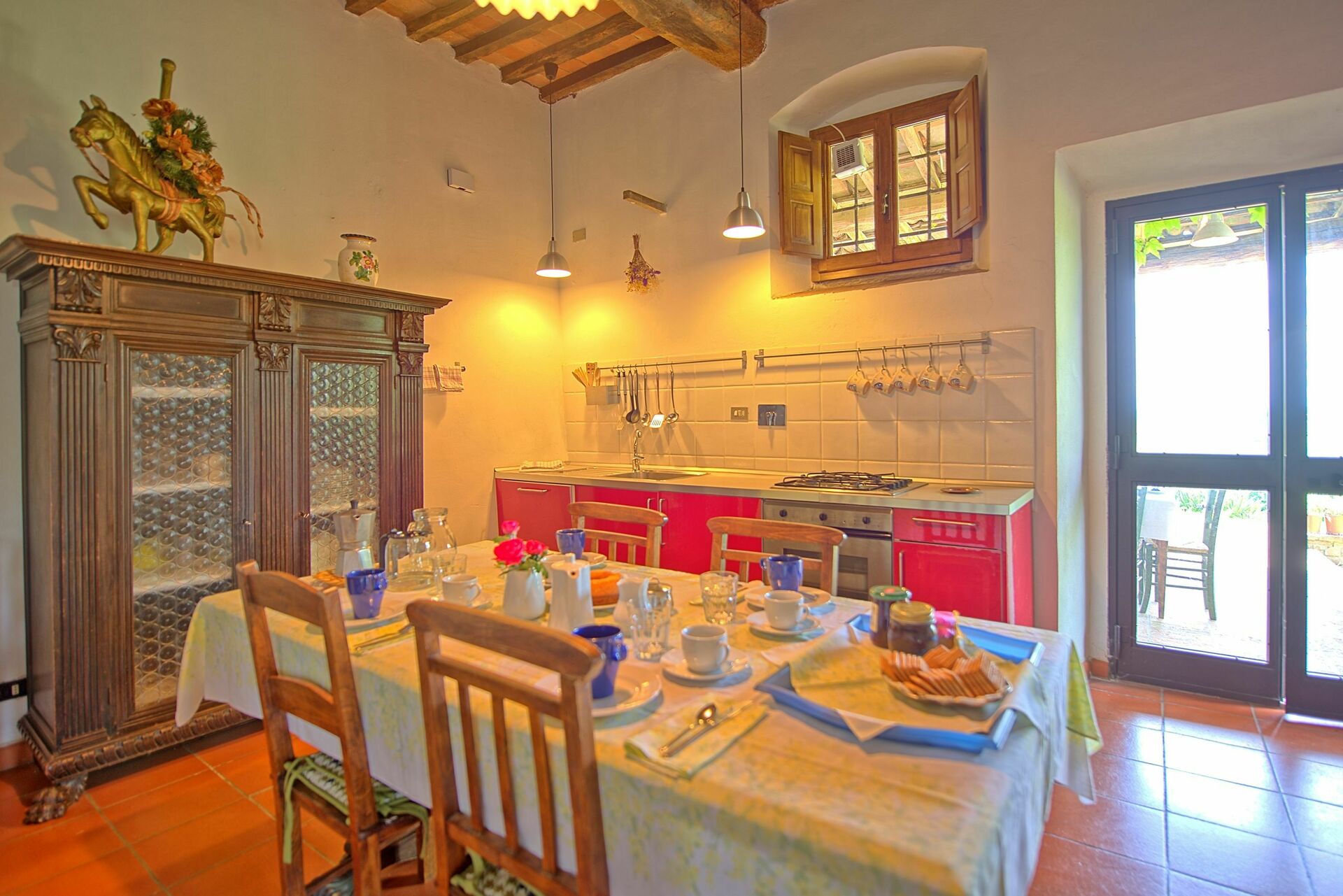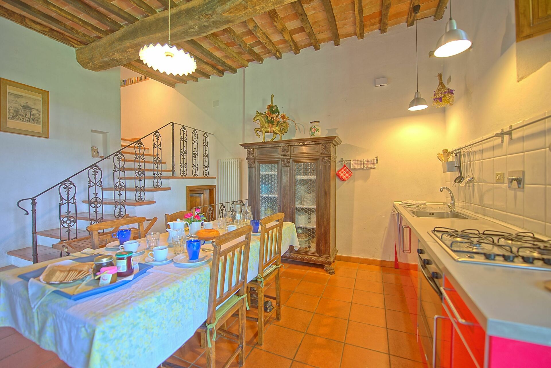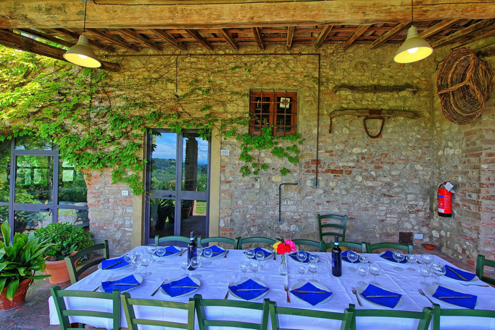 Feriehuset er perfekt, hvis du er på udkig efter en ferie med familie eller venner. En smuk portico udstyret med borde og stole giver dig mulighed for at spise udendørs, mens du nyder udsigten over de smukke Chianti-bakker sydvest for Firenze.