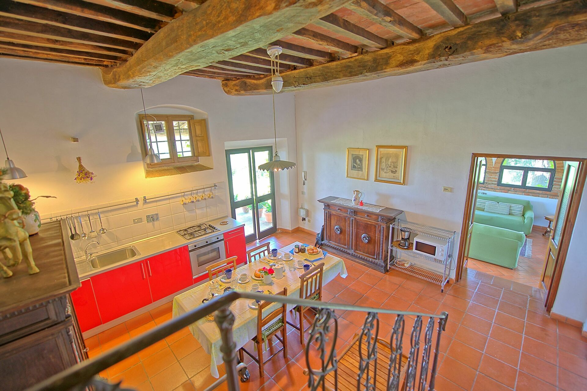 Sommerhuset ligger i nærheden af den lille landsby Lucardo. Her finder du en god restaurant med panoramaudsigt til en af de smukkeste solnedgange i Toscana.