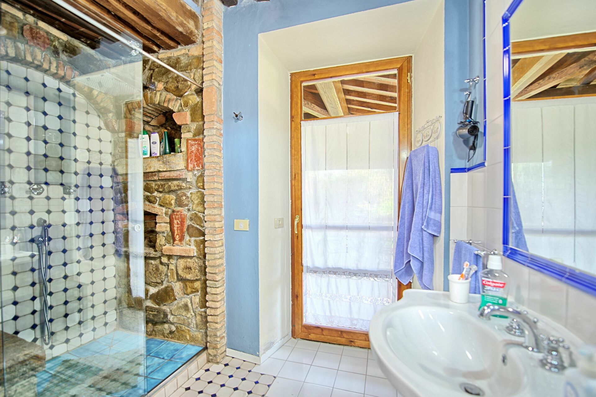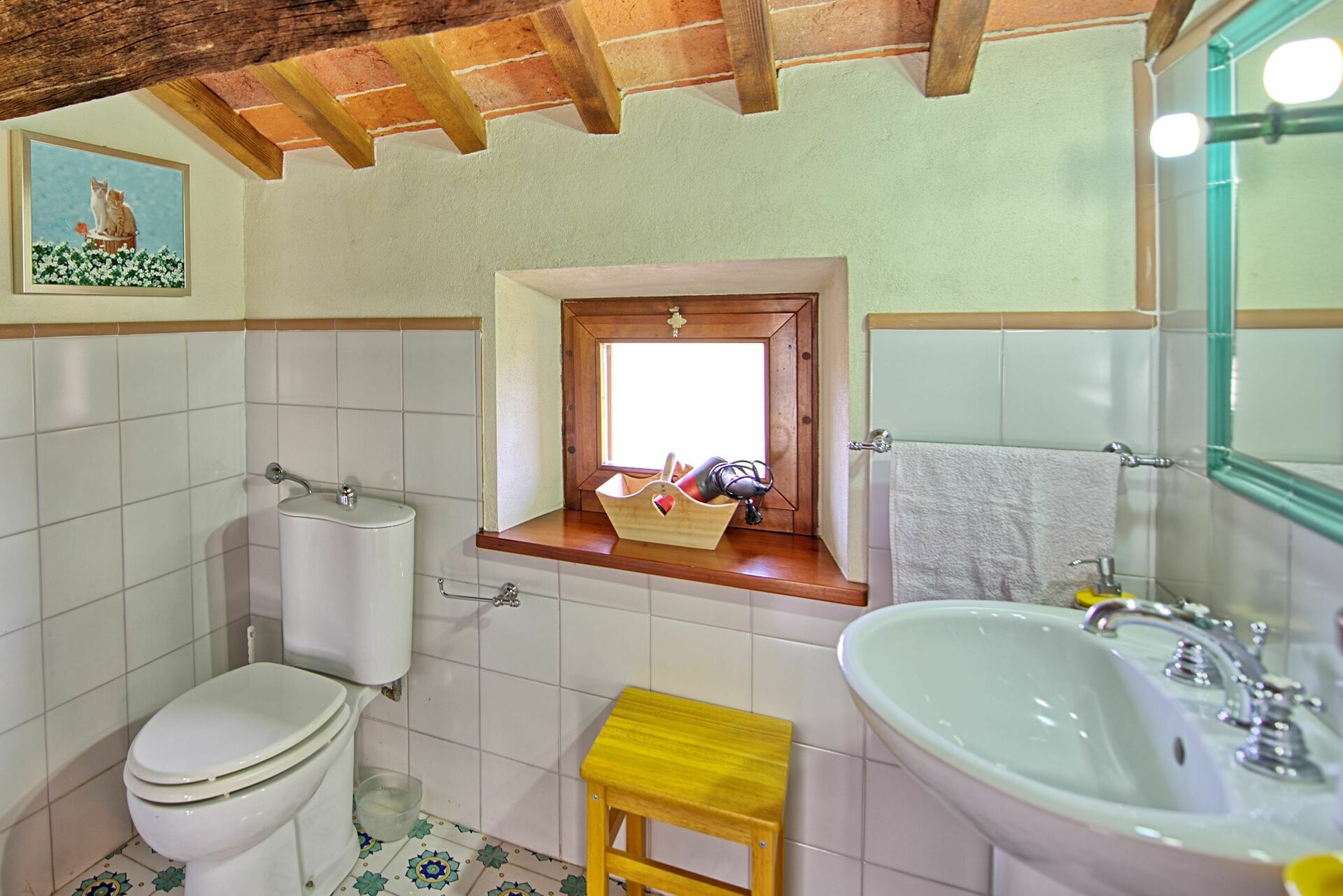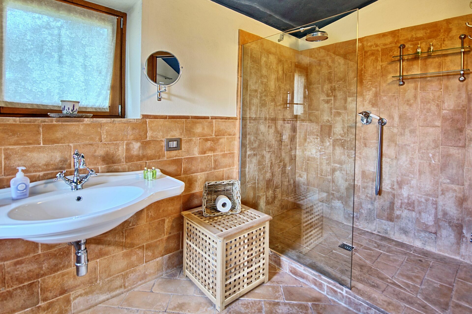 Anden sal: badeværelse med bruser (ingen bidet). Visse områder på denne etage i bygningen har et lavt loft på 1,5 m.