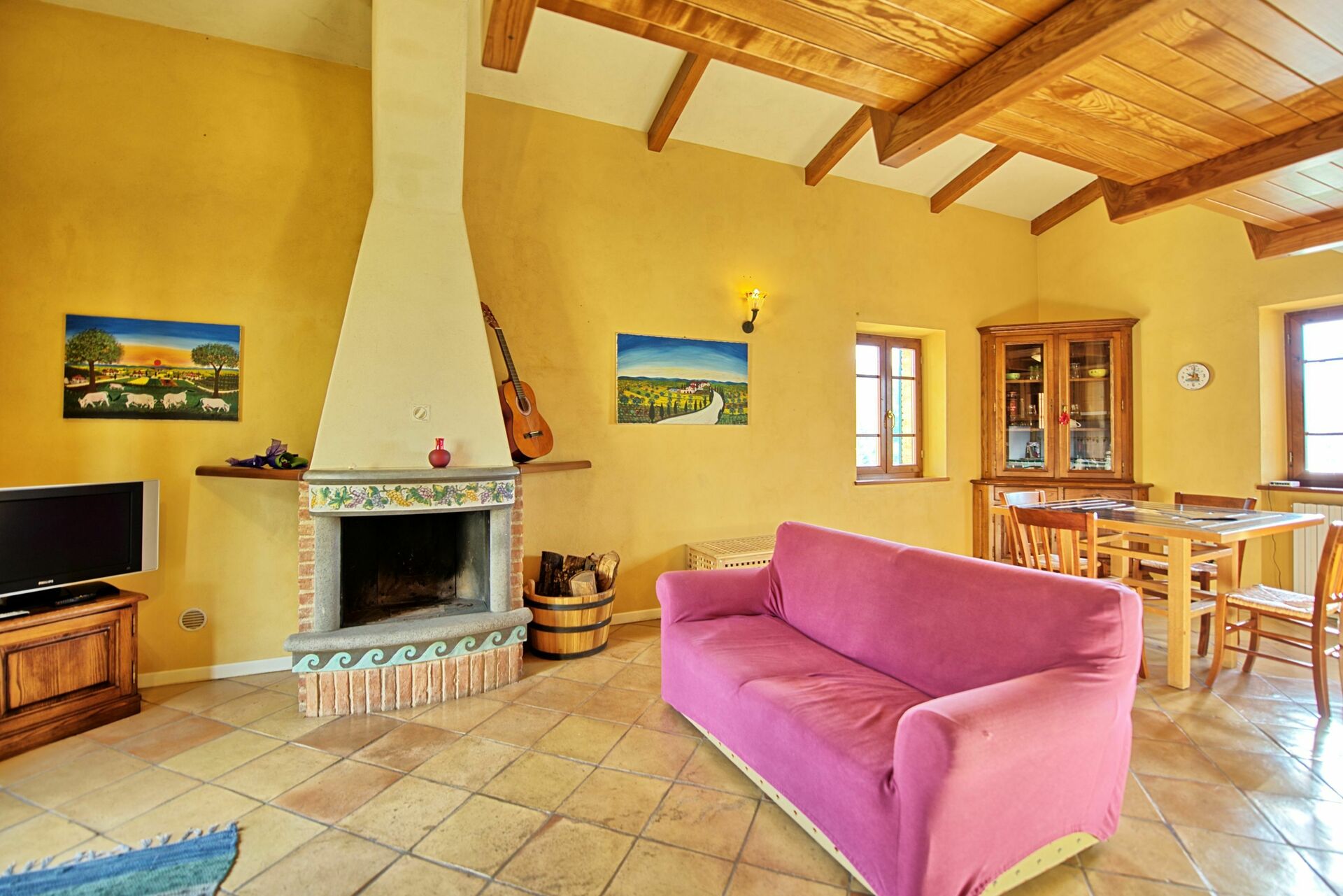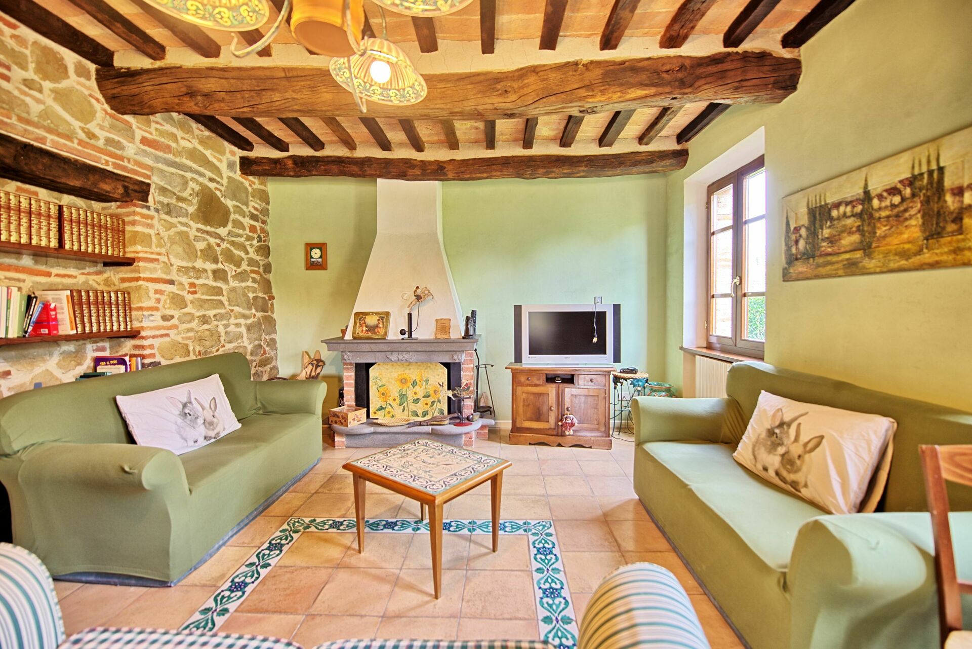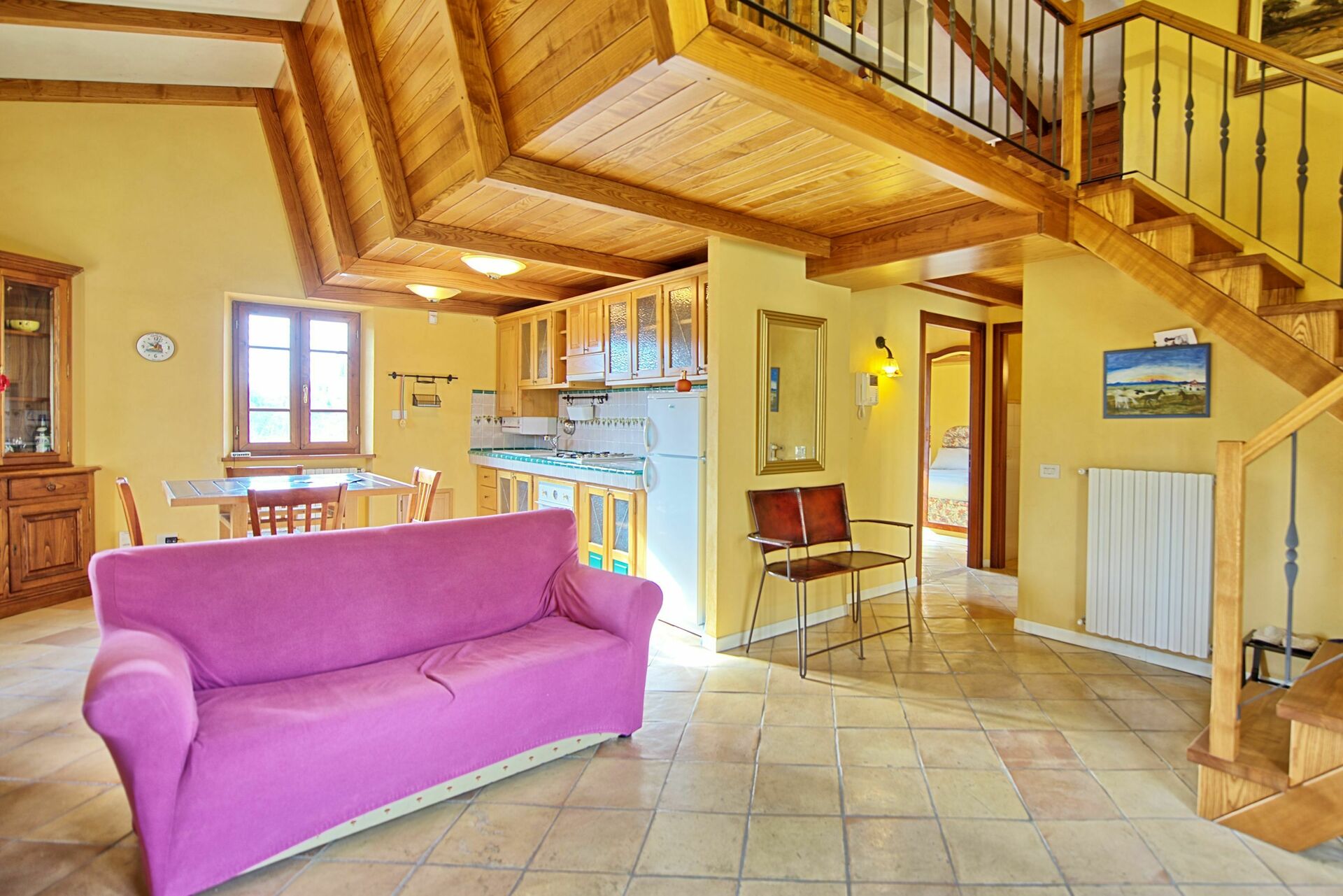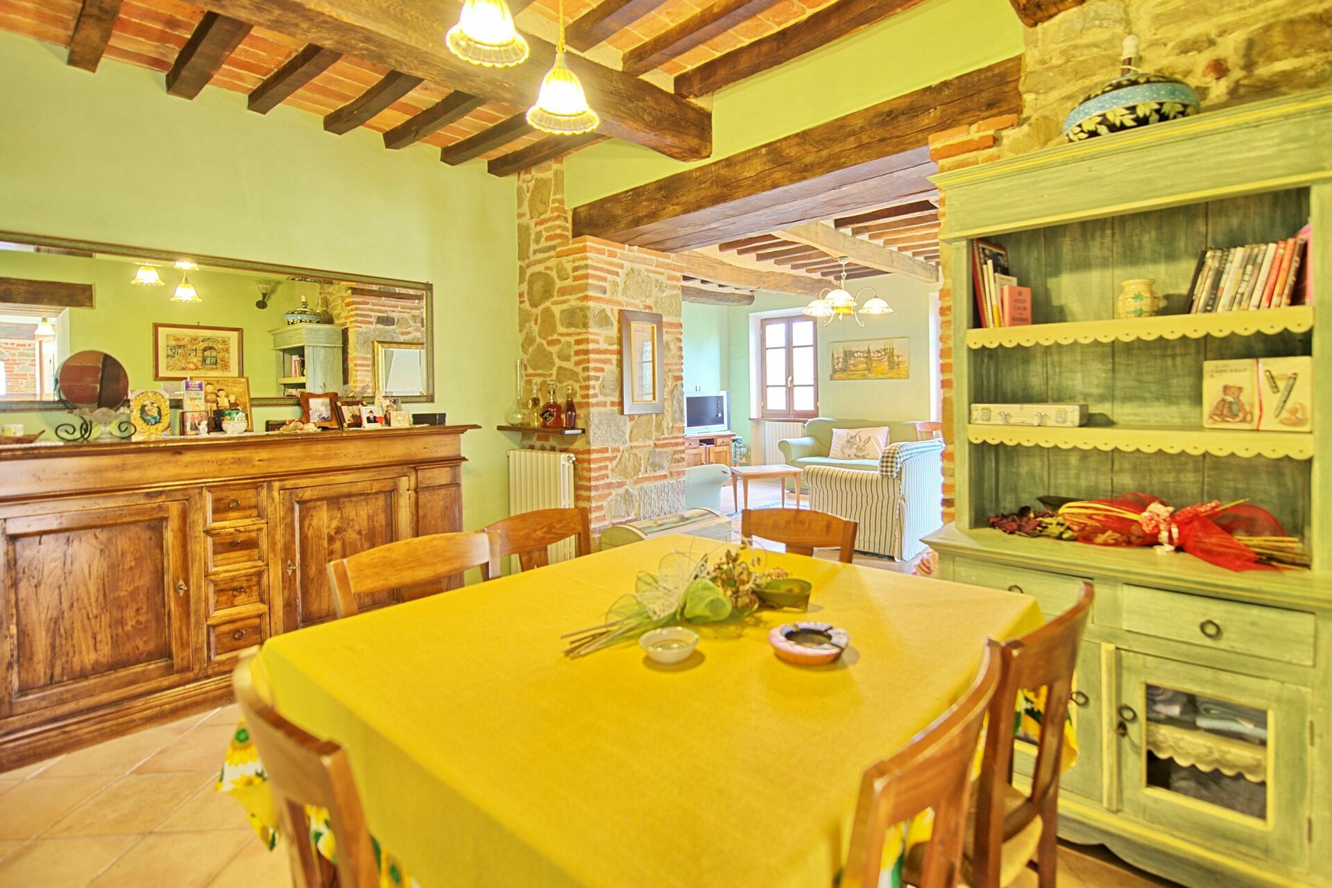 Stueetage: For at samle gæster er der et stort rum med et smukt køkken, en stue med satellit-tv-område med komplet SKY-kanalpakke og et badeværelse med brusebad. Forlader dette rum er der et udendørs område, der er indrettet til spisning udendørs (grill og brændeovn)