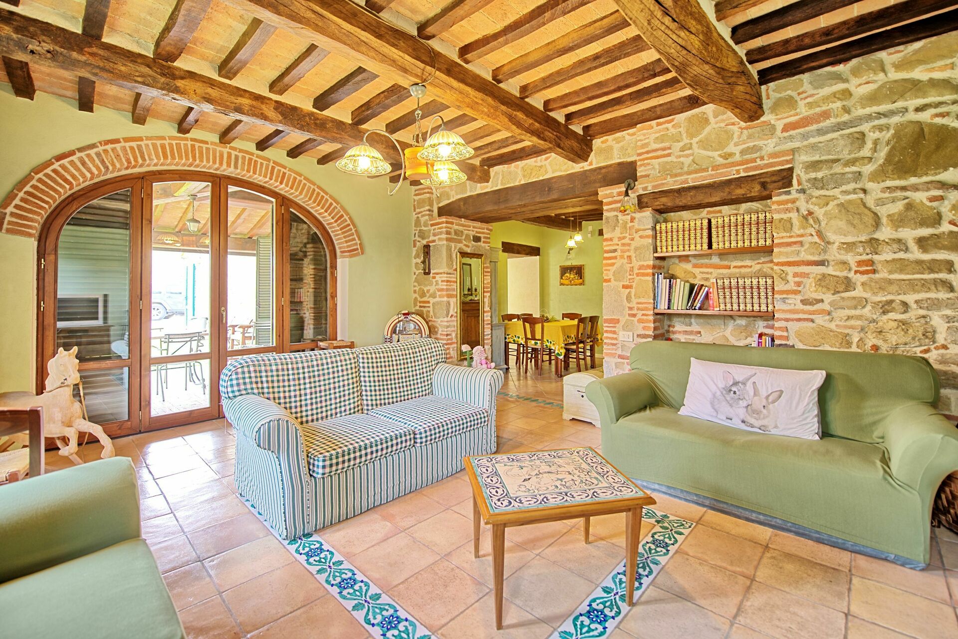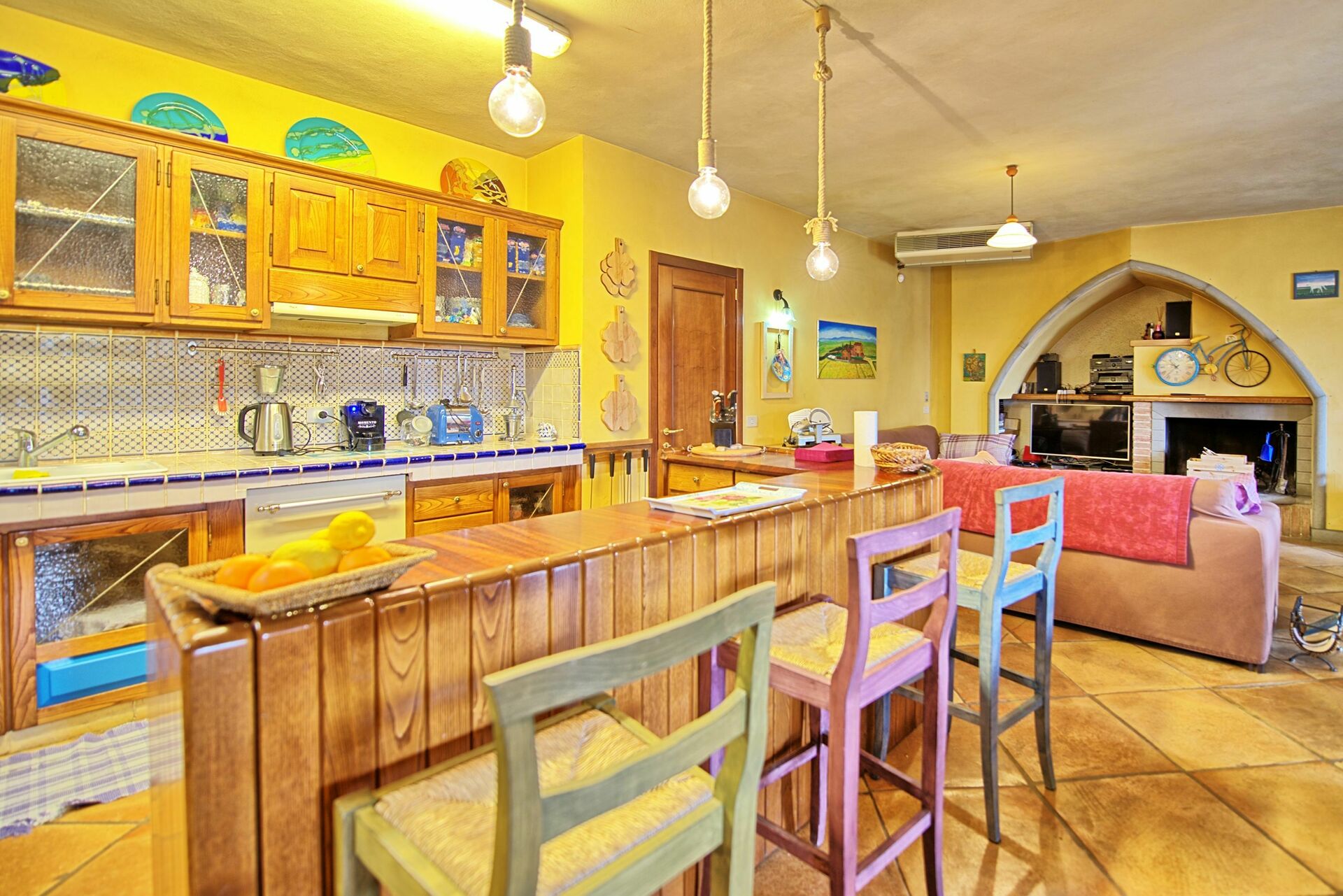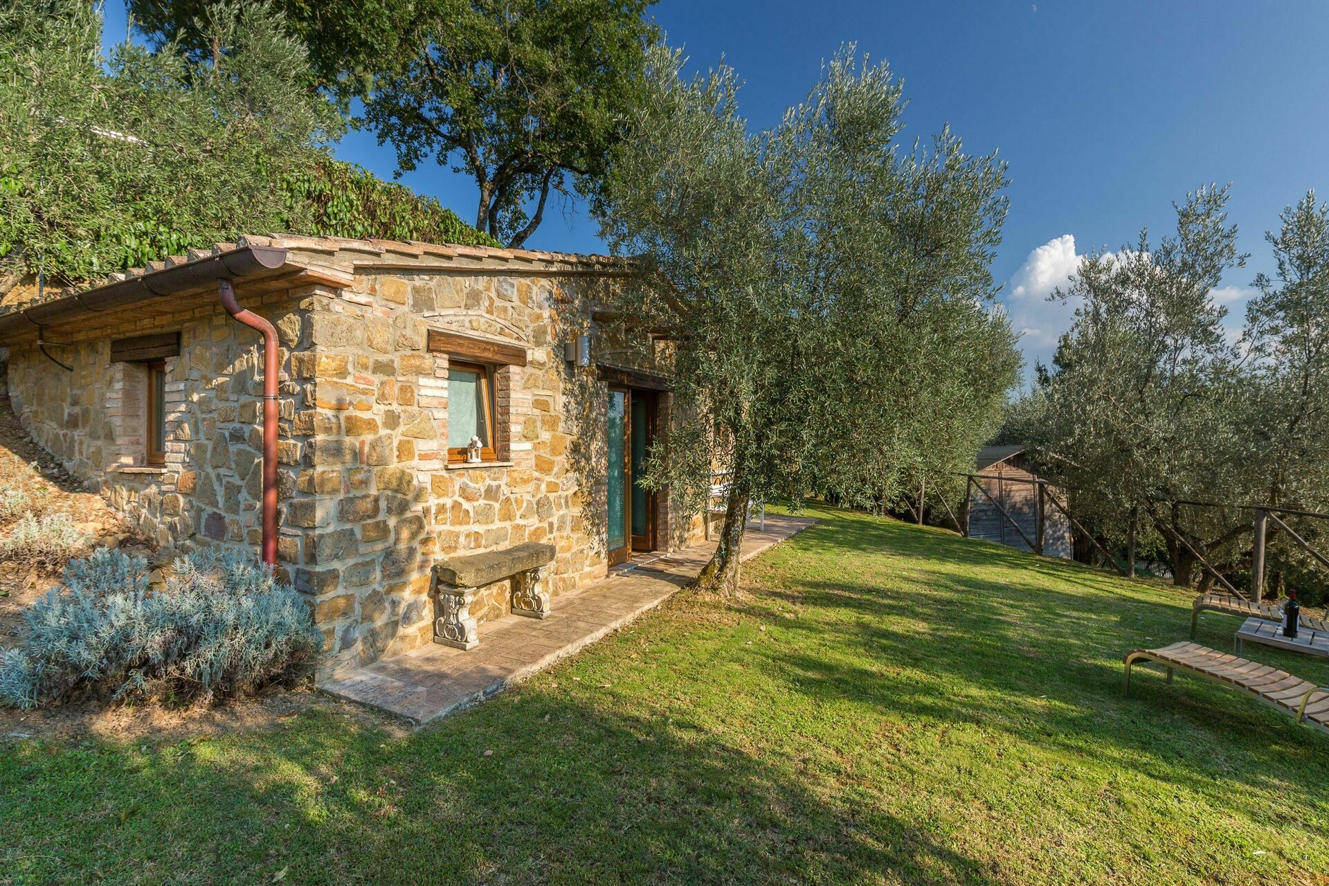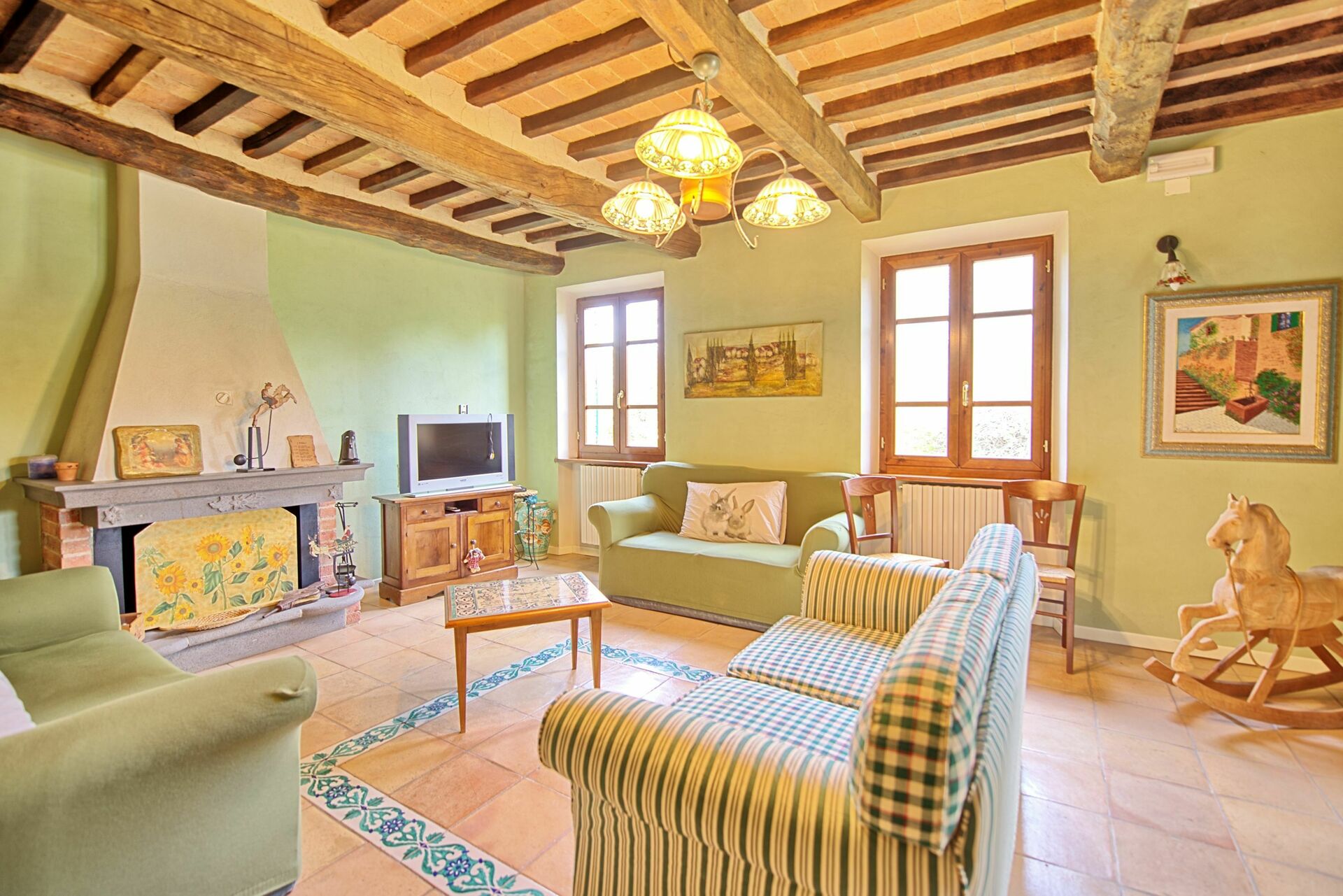 Stueetage: For at samle gæster er der et stort rum med et smukt køkken, en stue med satellit-tv-område med komplet SKY-kanalpakke og et badeværelse med brusebad. Forlader dette rum er der et udendørs område, der er indrettet til spisning udendørs (grill og brændeovn)