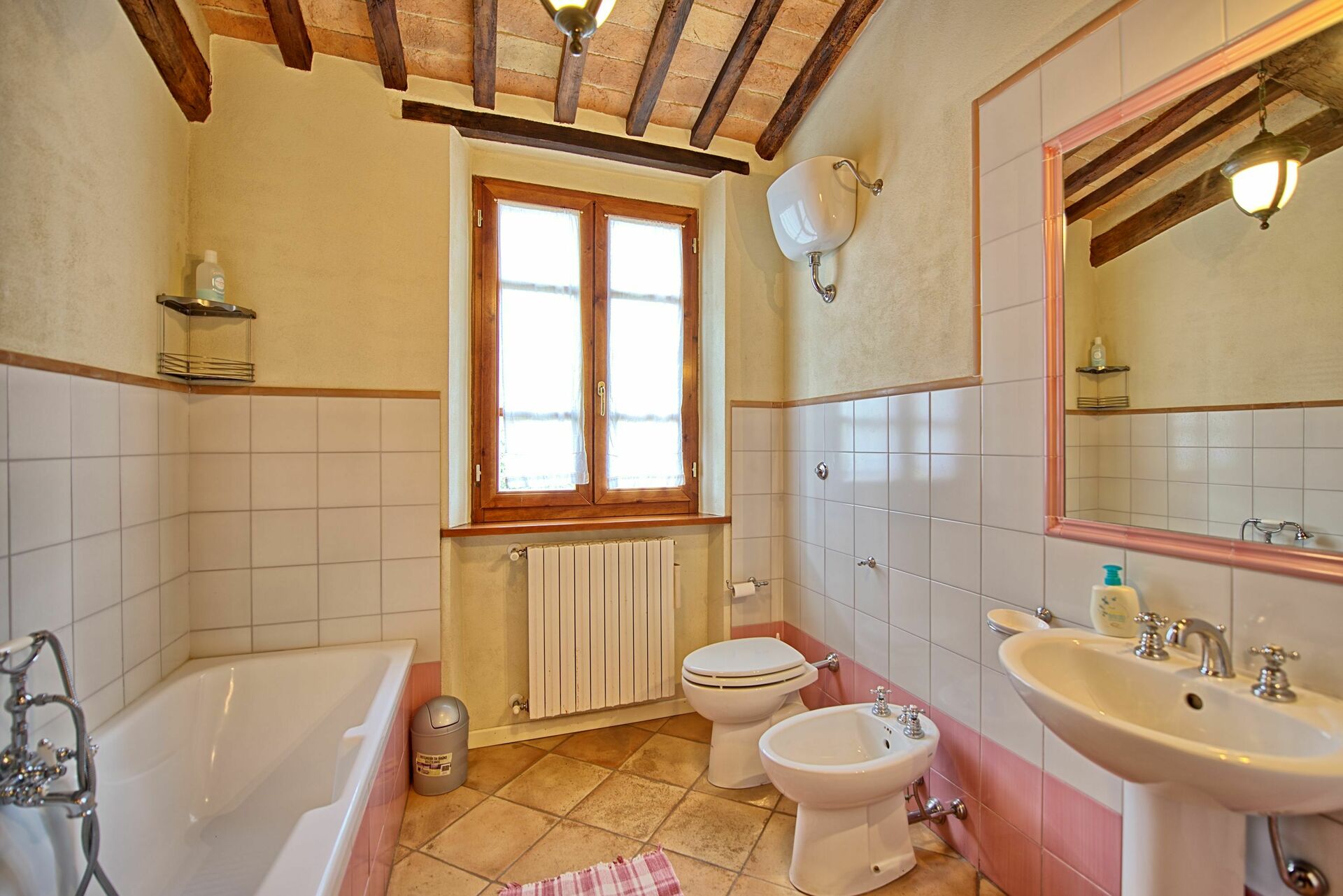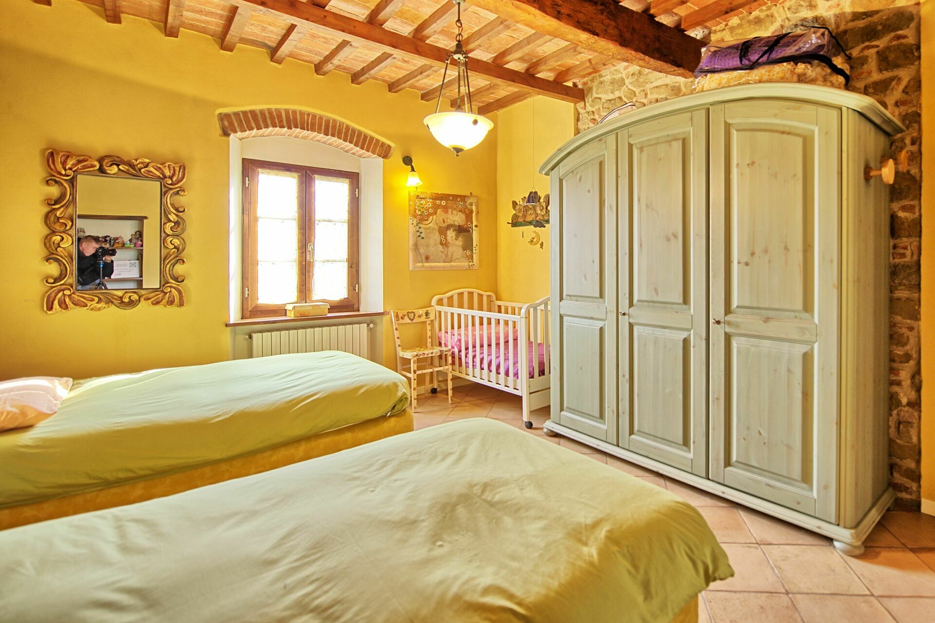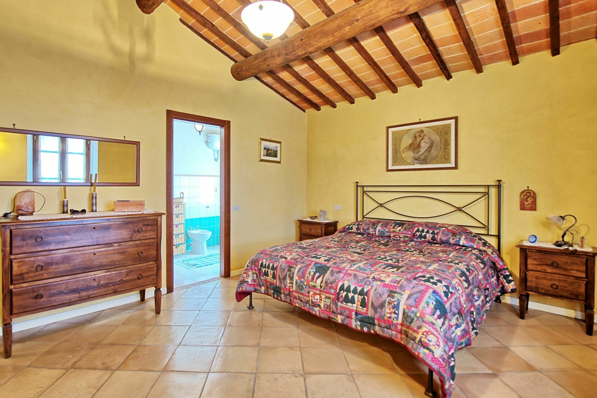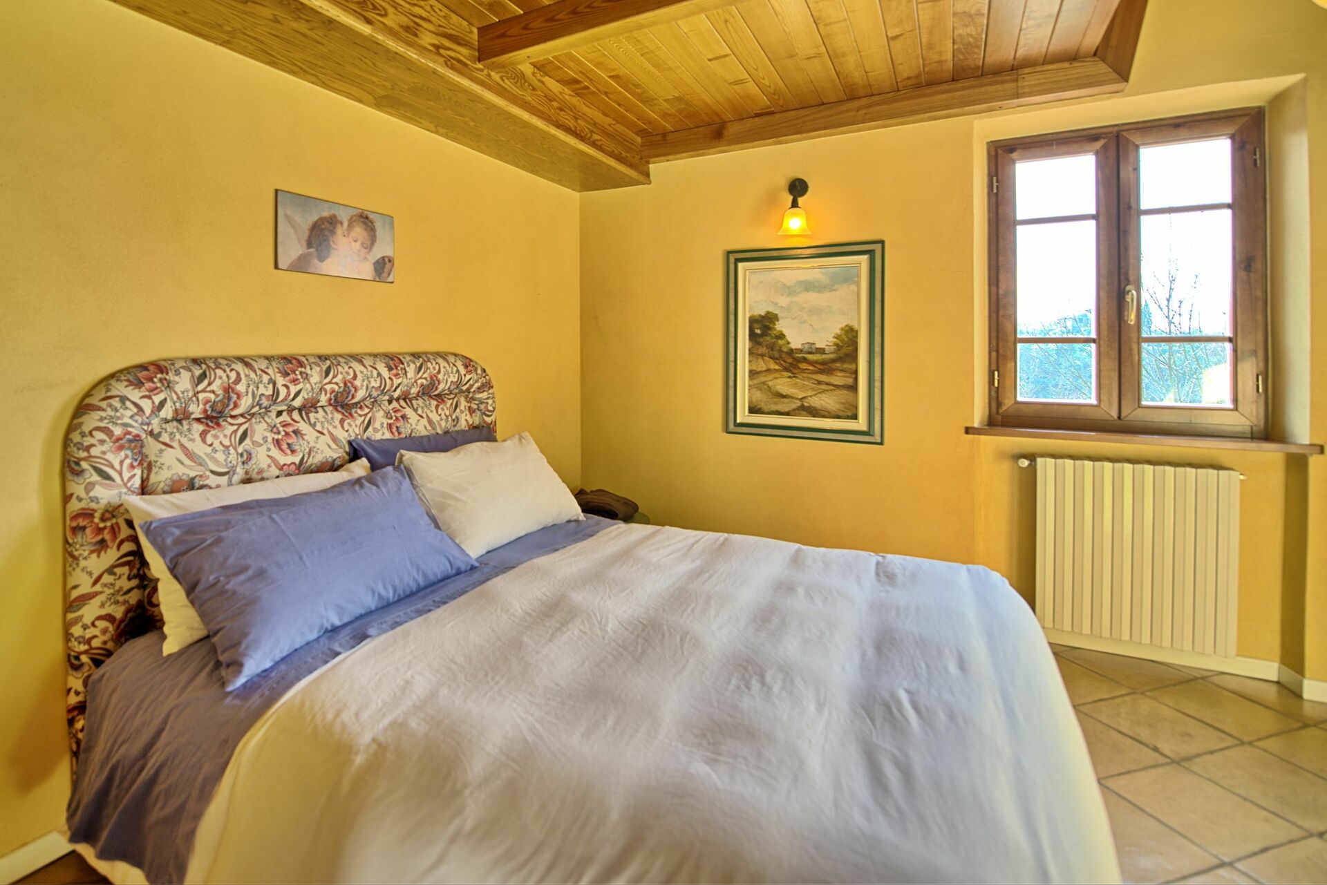 Første sal: soveværelse med dobbeltseng med privat badeværelse med bruser, soveværelse med fransk seng (passende størrelse til to børn eller en voksen), badeværelse med badekar, soveværelse med 2 enkeltsenge.