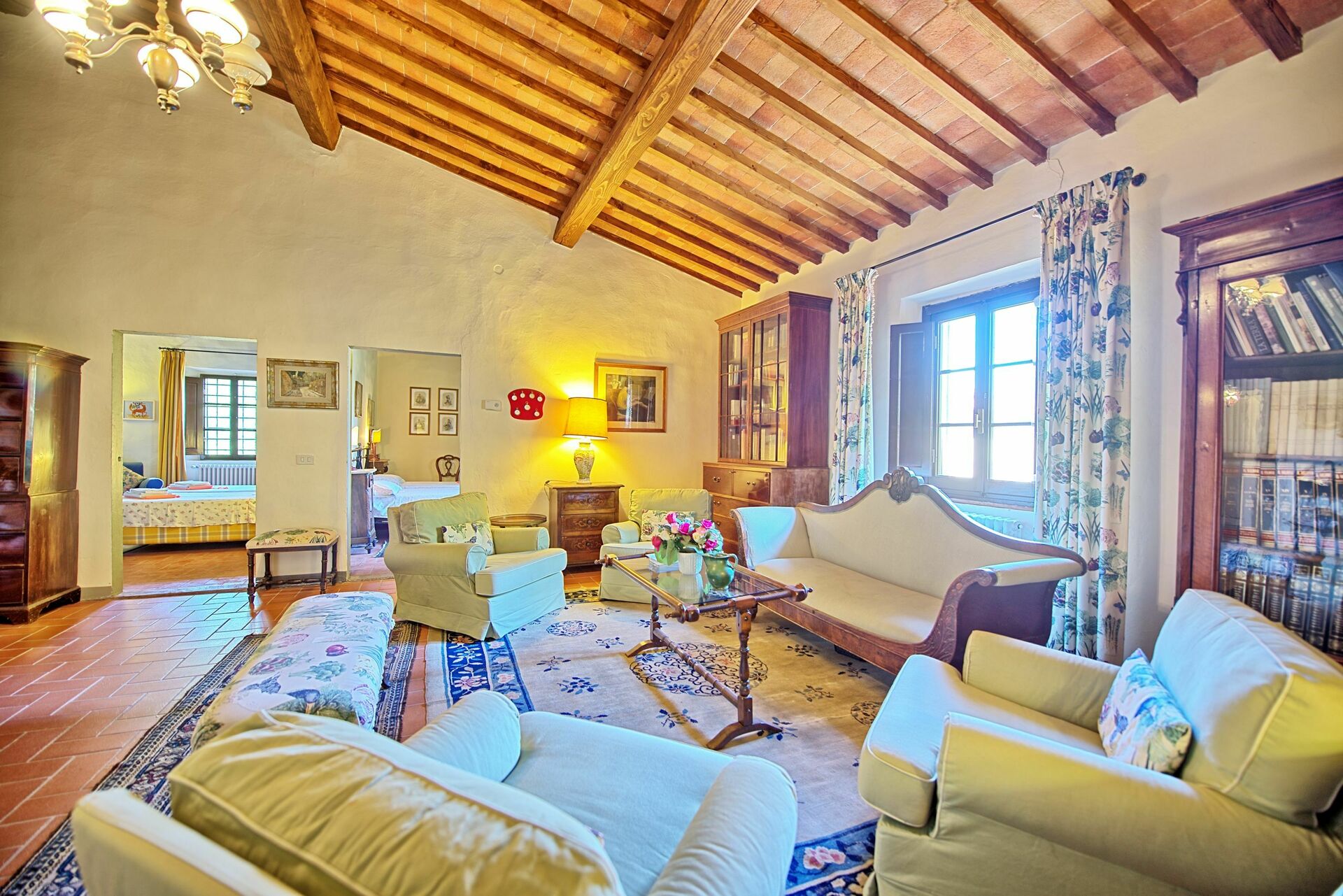There were 9 of us staying at this lovely villa, we never felt crowded and were very comfortable. Everything is as pictured. Beautiful setting in the hills of Tuscany. Eric is the caretaker and was incredibly helpful (he and the owner live in two houses adjacent to the villa but you would never know they were there unless you went looking for them). Eric brought us fresh figs and pears grown on the property! Setting is beautiful and I highly recommend eating dinner just down the road at Fattoria Il Turco, farm to table delicious food (you can walk there!), only open Thur-Sun and make a reservation. Lovely wineries all around, the location was great for visiting other areas - anywhere from 30-45 minutes you can be in another beautiful place. I highly recommend Podere San Carlo!
