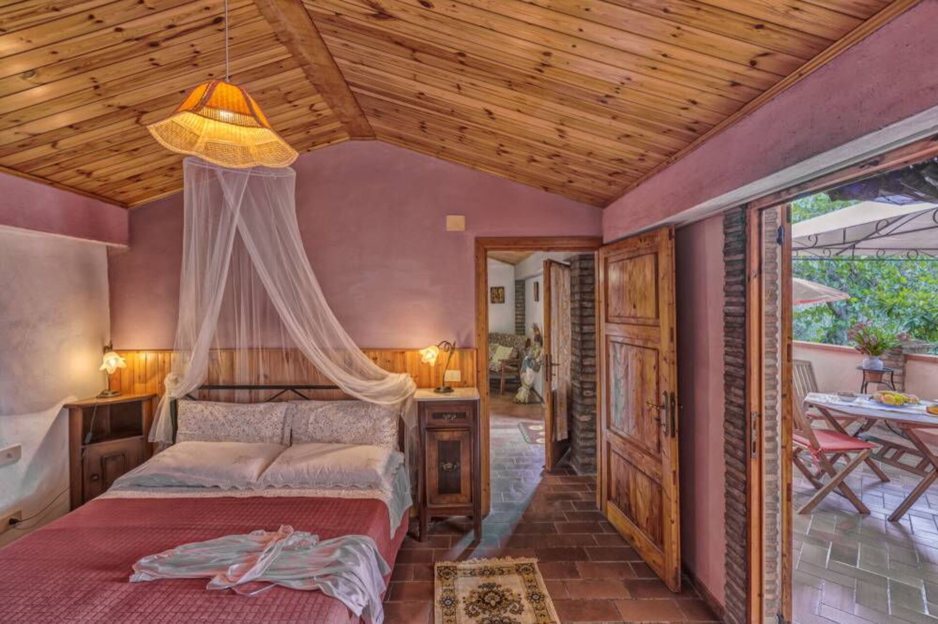 Stue med spiseplads og køkken (opvaskemaskine, ovn, brødrister, espressomaskine og kaffemaskine), badeværelse med bruser, 1 dobbeltværelse, der fører til et lille soveværelse med to enkeltsenge.