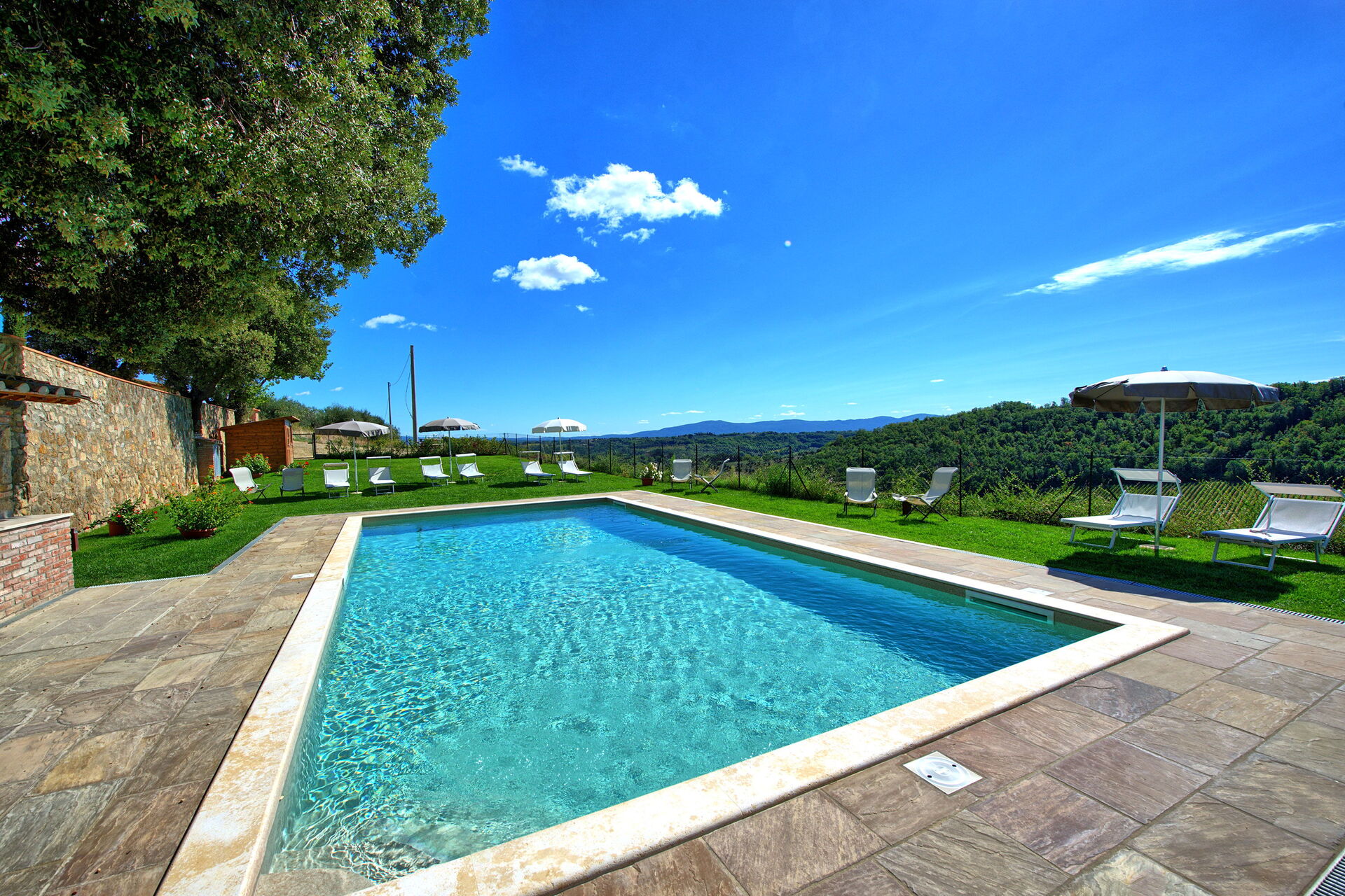 Montauto ligger på en bakketop med udsigt over det fortryllende toskanske landskab med vinmarker og olivenlunde. Ejendommen består af en majestætisk villa til 10 personer samt 5 nyligt renoverede lejligheder med alle faciliteter og en etværelseslejlighed (650 m væk). På ejendommen findes også kirken San Lorenzo a Montauto (en historisk skat med sin kunst) og ejerens hus, som ligger helt separat.