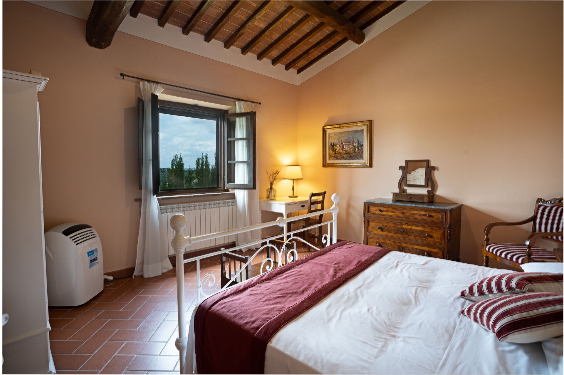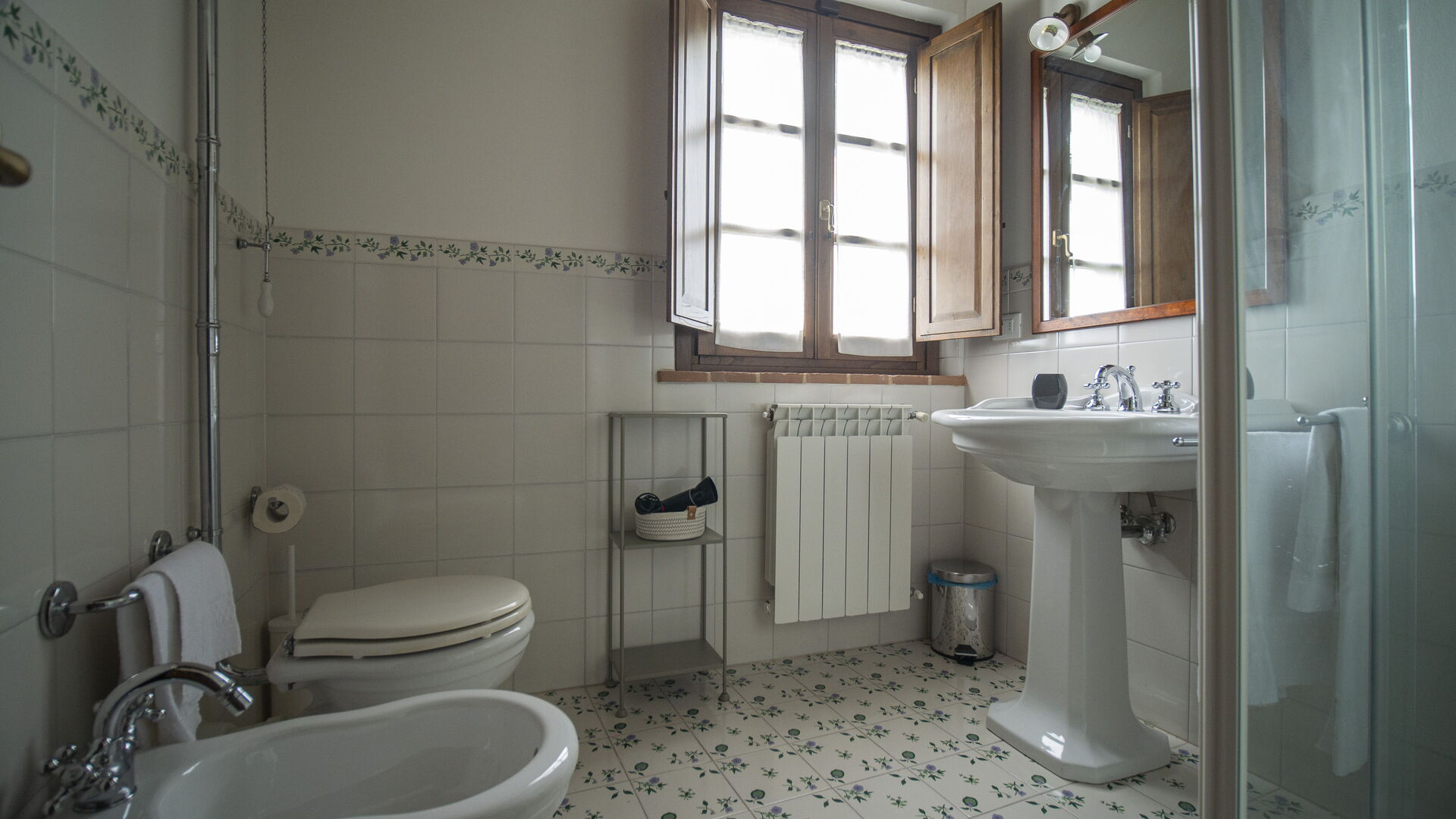 Udendørs område udstyret med bord, stole og grill, delt med lejlighederne Camino og Cipressi.