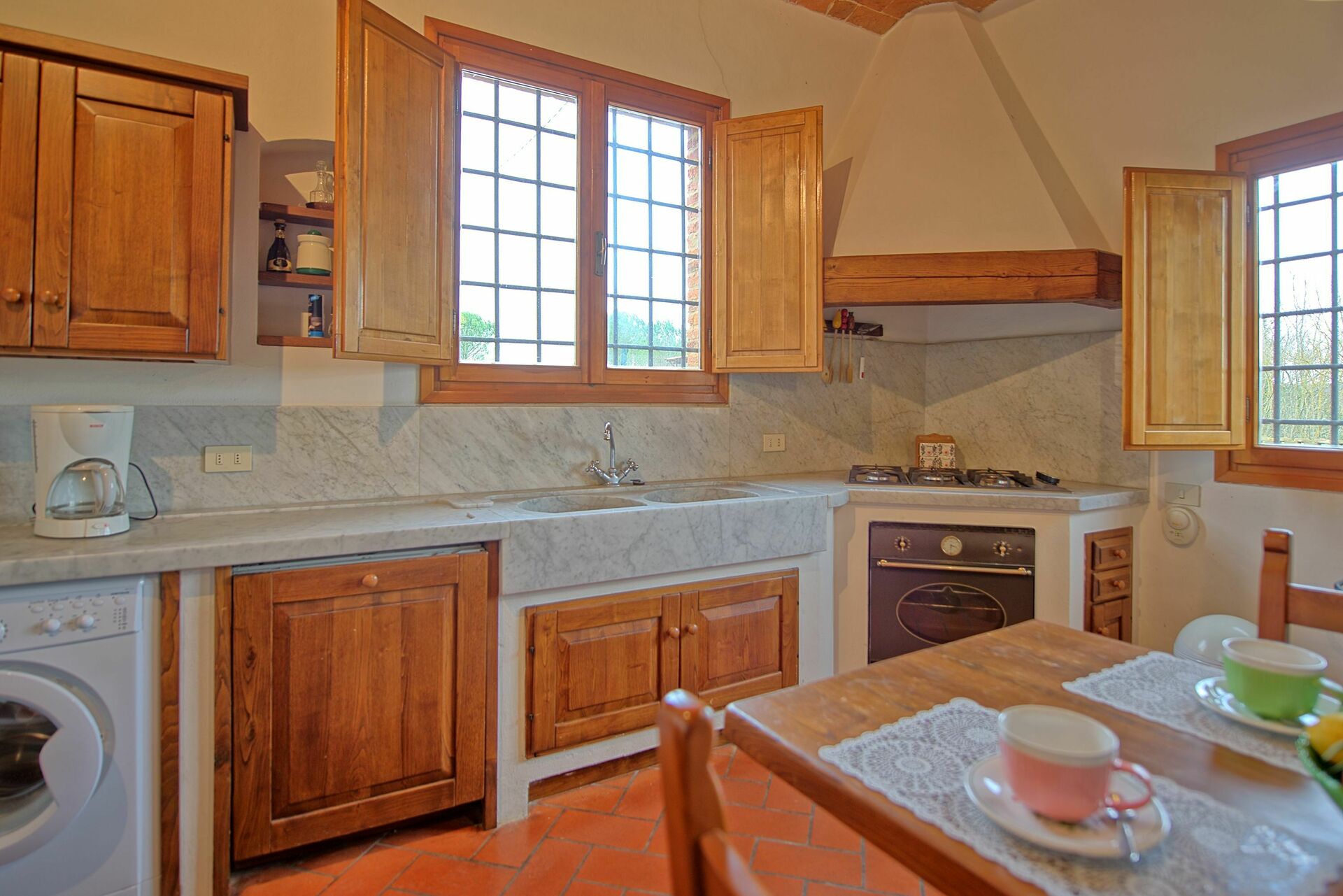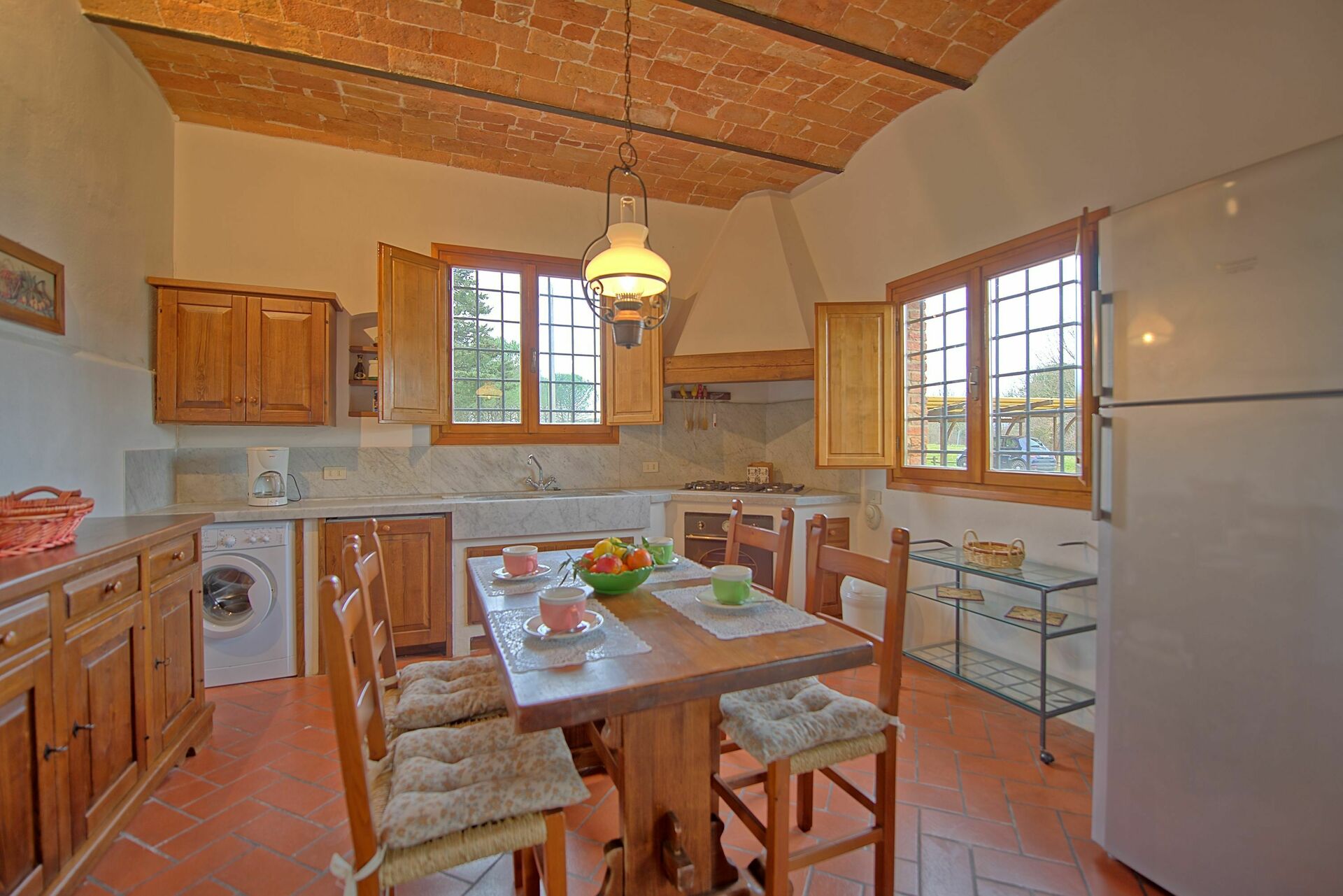 Dette komfortable toscanske feriehus har en smuk beliggenhed med udsigt over bakkerne og den charmerende by Montefoscoli, ca. 30 km fra Volterra og 45 km fra Pisa.
