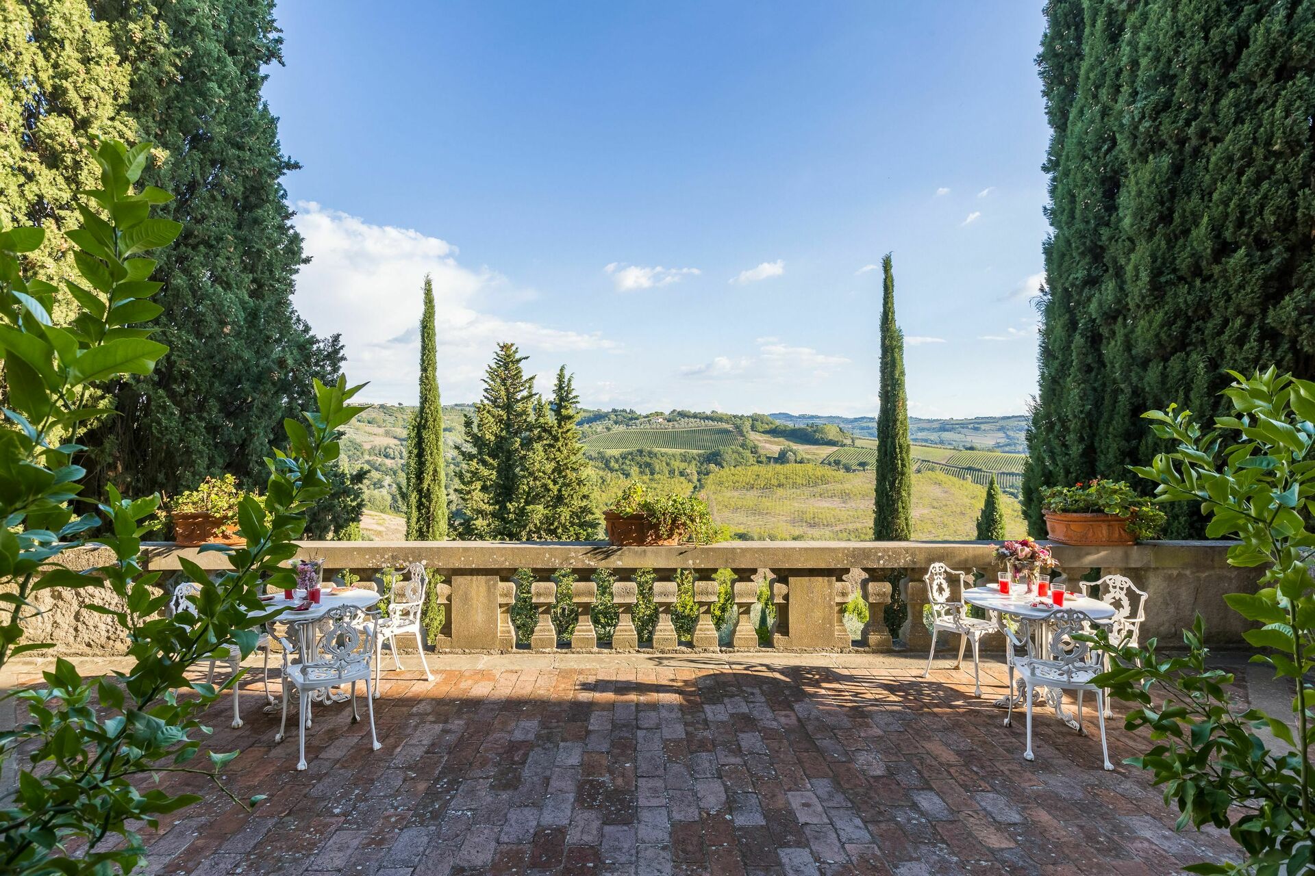 Montegufoni er en del af en stor ejendom omgivet af vinmarker og oliventræer i Chianti regionen i Toscana. Slottet er perfekt til bryllupper og kan rumme over 180 personer, har eget kapel, restaurant og have.