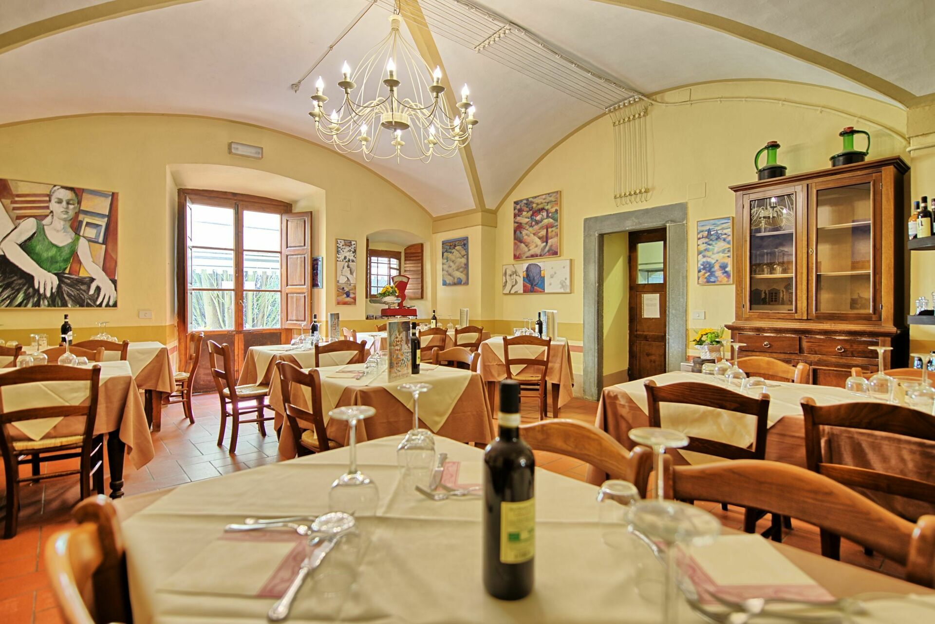 Slottets udhuse er også blevet restaureret og omdannet til charmerende lejligheder. En fin restaurant, der byder på gode opskrifter i den lokale Chianti-tradition, er åben hver aften (fra april til oktober, undtagen om tirsdagen).