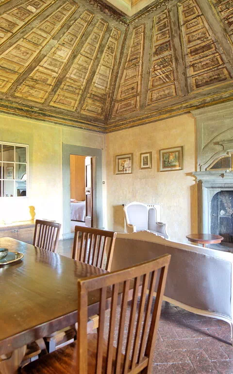 Dejlig og rummelig lejlighed inde i slottet med fresker i taget.