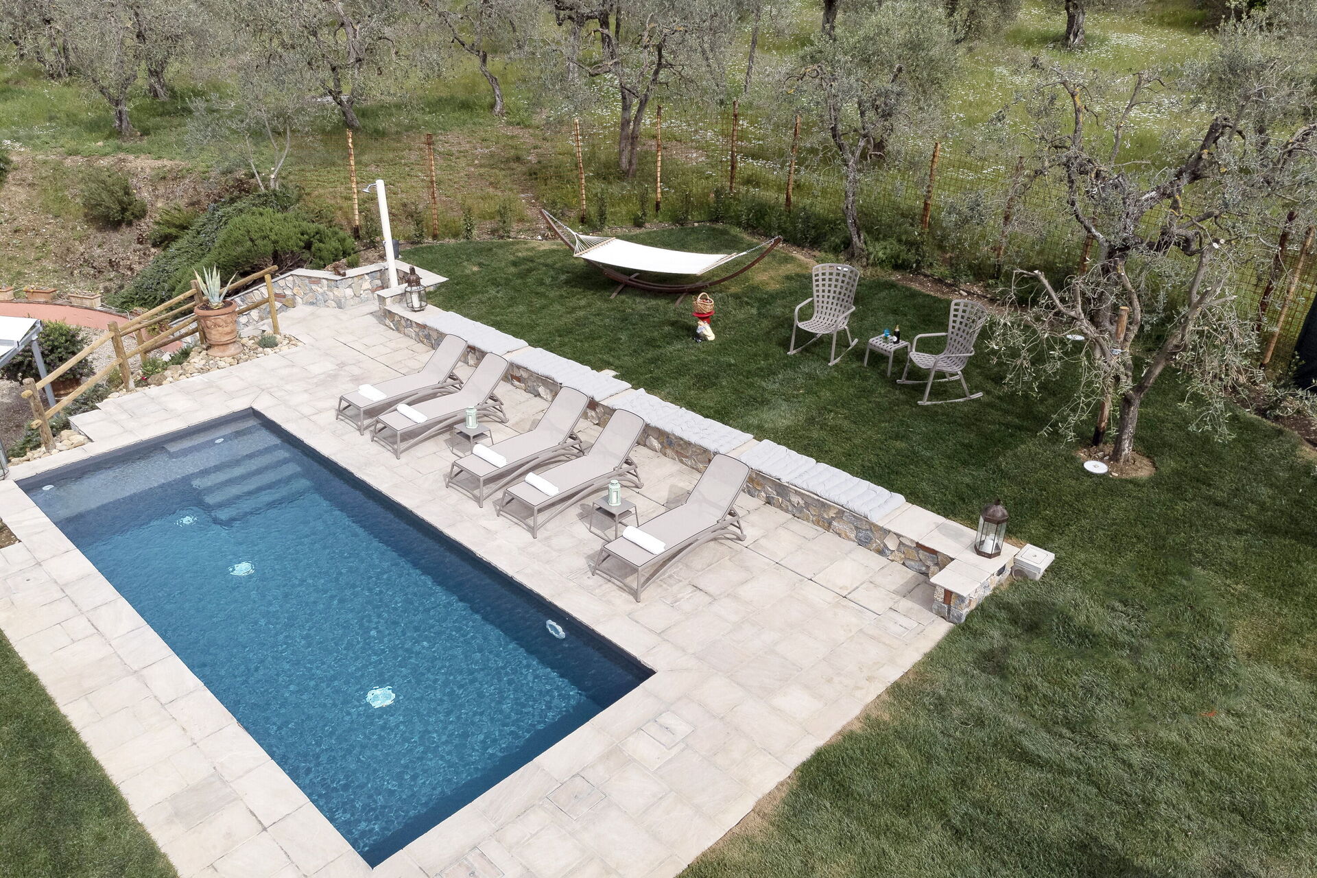 Vi er sikre på, at du vil elske dit ophold her i et originalt bondehus fra 1000 e.Kr. blandt oliven- og cypresstræer, der er indarbejdet i et nyt, elegant og komfortabelt design. Vi har restaureret ejendommen med traditionelle materialer, såsom gamle lokale sten, træbjælker i loftet og gamle terrakottagulve, for at opnå en perfekt rustik toskansk stil.