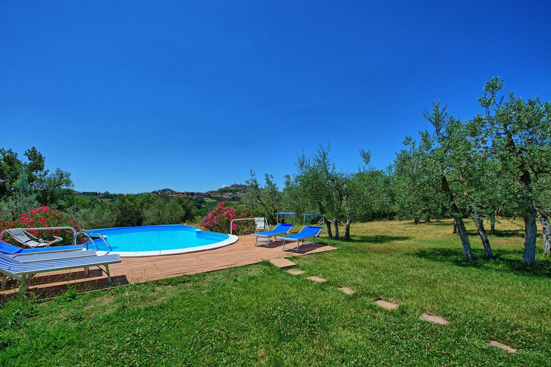 Eines unserer bisher schönsten Ferienhäuser. Wunderschönes Haus, großzügiges Grundstück mit spektakulärem Blick auf Montepulciano, schöner Pool.