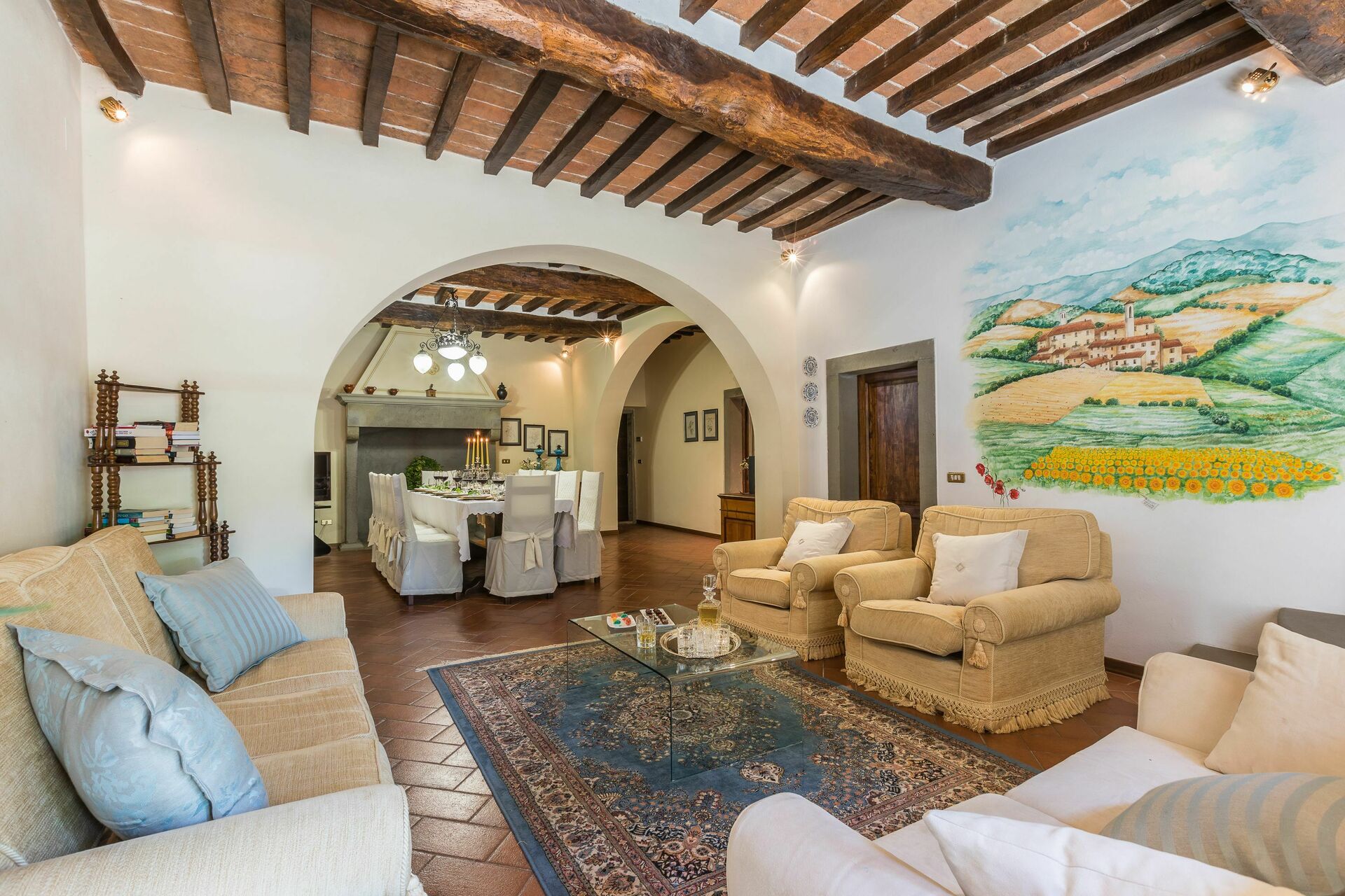 Palazzo Rosadi er et smukt restaureret historisk herregård der stammer fra 1785, og har været i Rosadi familien sin eje i over 200 år. Sommerhuset tilbyder 6 soveværelser, 7 badeværelser og en privat pool. Ejendommen i dag et luksuriøst landsted med en fantastisk beliggenhed nær den lille landsby Monterchi (nær Arezzo) i Toscana. Huset er omgivet af en bred privat park med en dejlig have og en pool der opvarmes af solen hele dagen solen. Fra feriehuset har man en imponerende panoramaudsigt til det smukke omkringliggenden landskab.