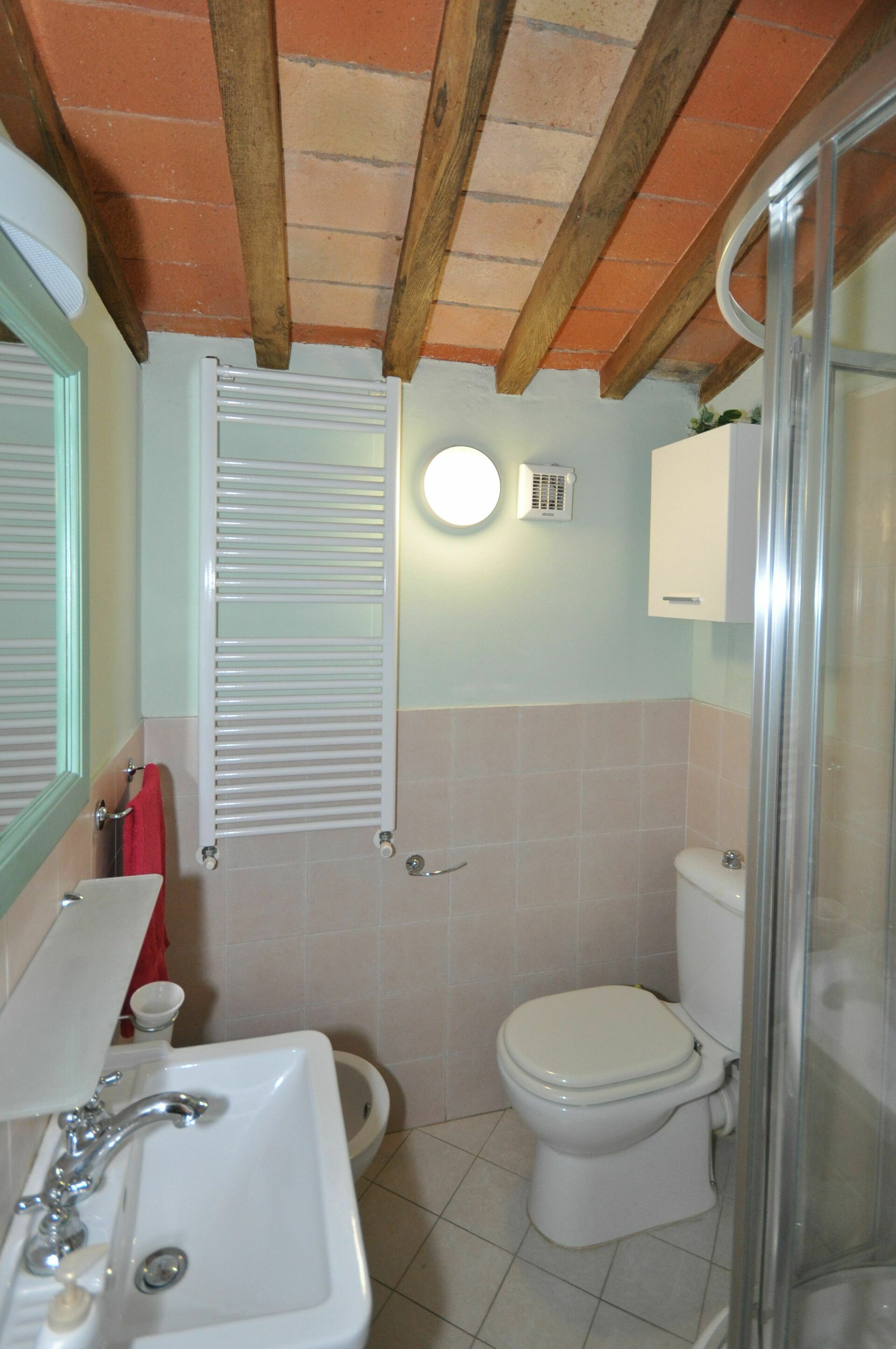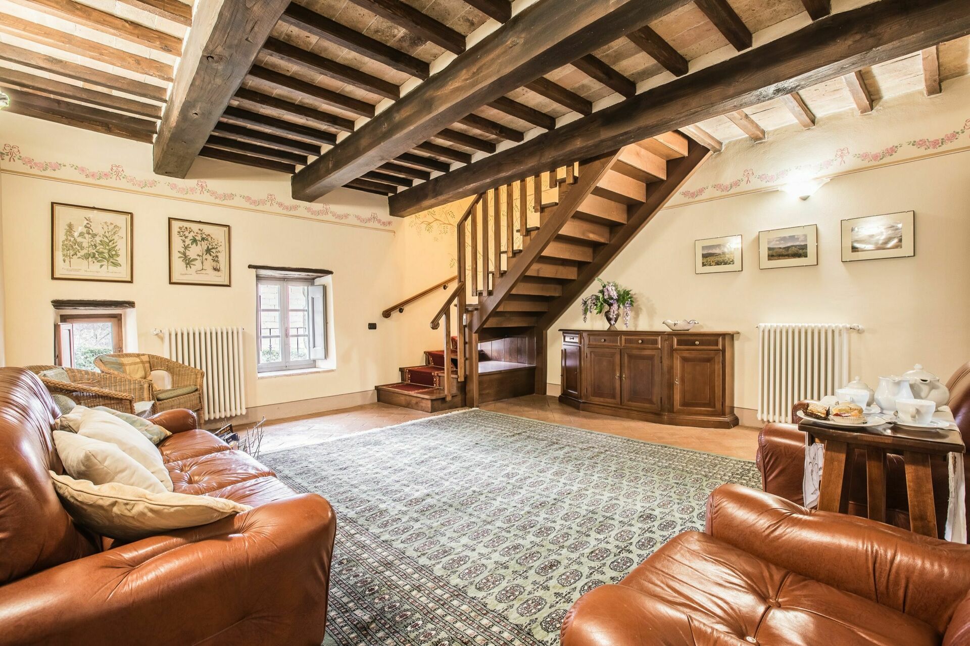 Traditionel toscansk stil er blevet opretholdt efter den sidste restaurering af denne ejendom. Tag og gulv er pænt lavet med terracottafliser og loft med synlige træbjælker. De originale trædøre er alle blevet pænt restaureret, før de blev sat i huset igen.