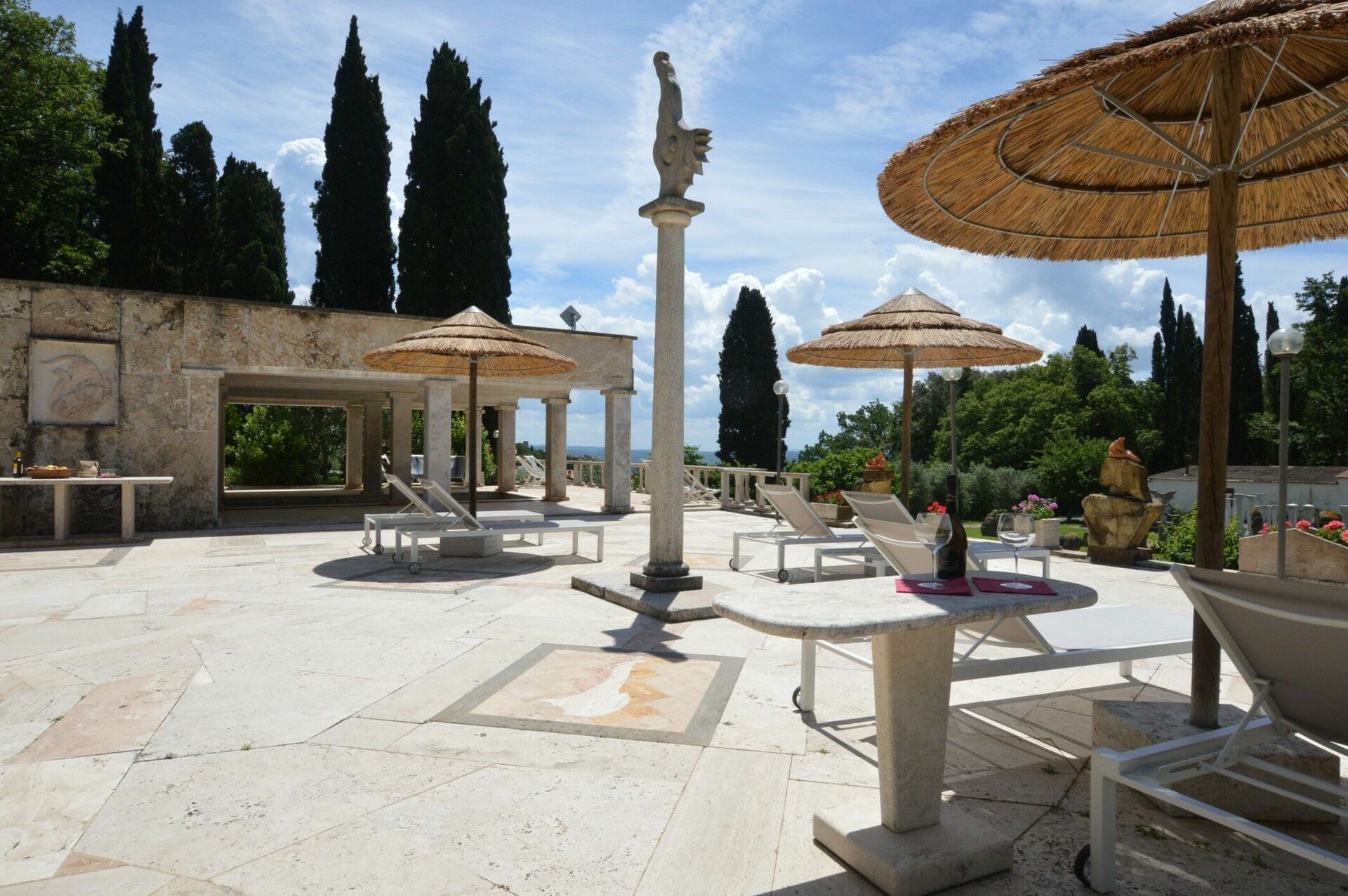 Der er otte unikke lejligheder på ejendommen, fordelt over et område på hele 10 hektar. Ejendommen tilhører en internationalt anerkendt italiensk billedhugger. Hans kunstværker og atelier ligger i parken, og han bor selv i hovedhuset.