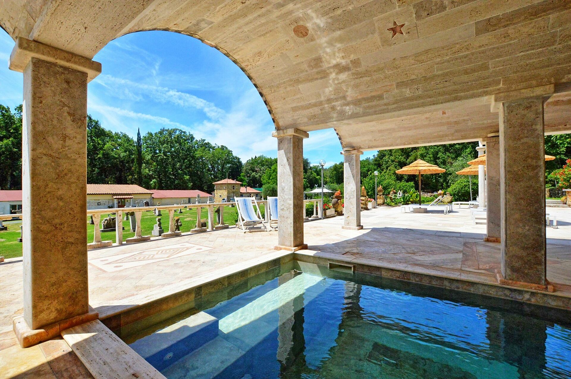 Gæsterne råder over store udendørsområder samt 2 udendørs swimmingpools: en almindelig pool og en pool overdækket af en smuk travertinhvælving og opvarmet til 36° ved hjælp af naturlig geotermisk varme. Dette sikrer en behagelig temperatur i vandet selv i de køligere måneder.