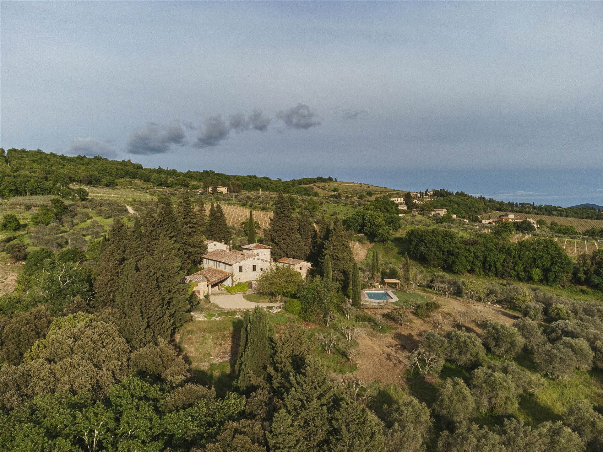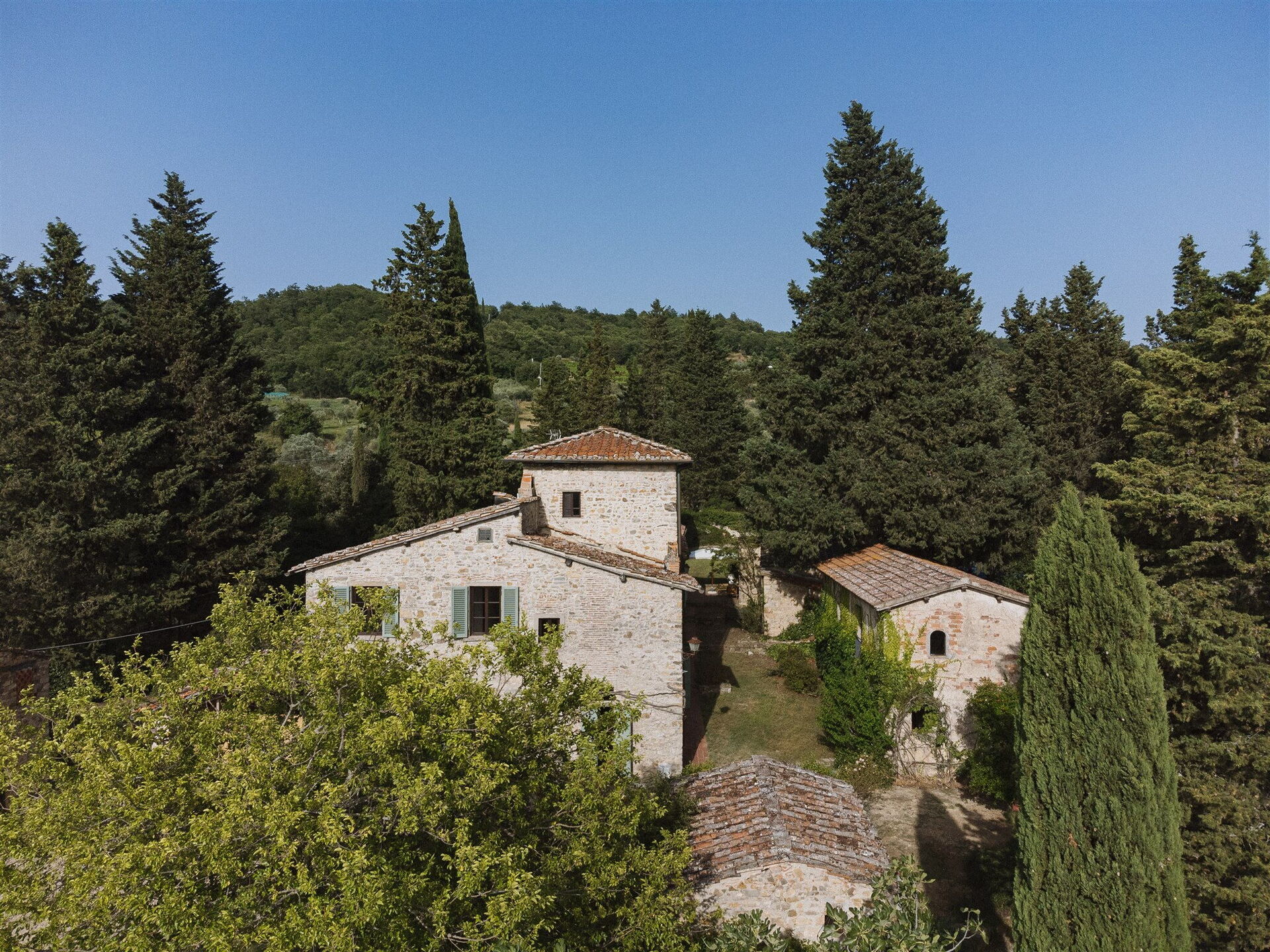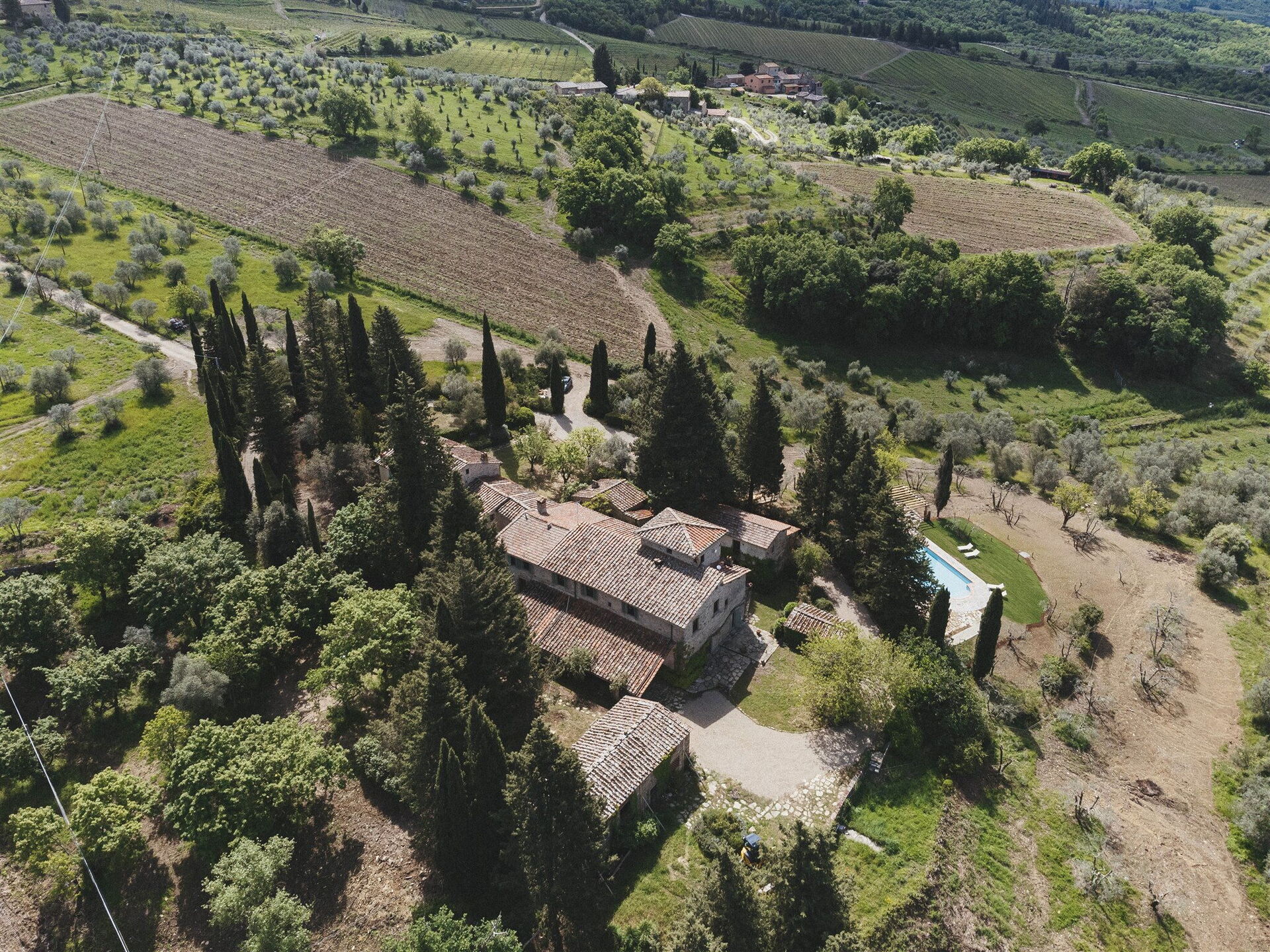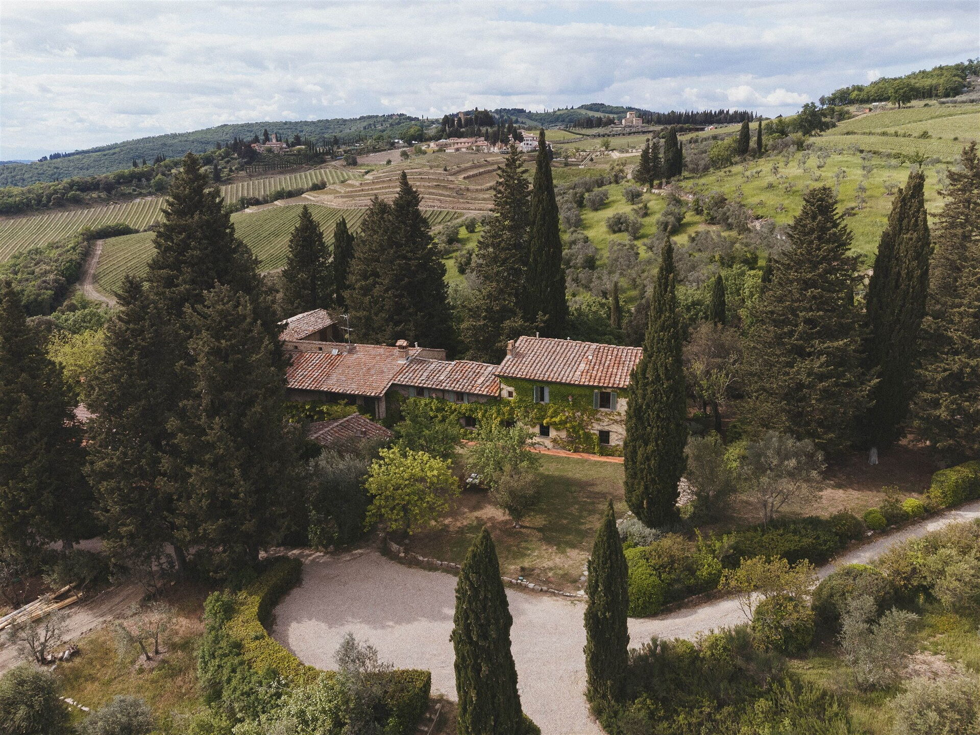 Smuk ejendom med 6 komfortable ferielejligheder på bakkerne ved Panzano in Chianti, midt mellem Firenze og Siena i hjertet af vindistriktet Chianti Classico i Toscana.