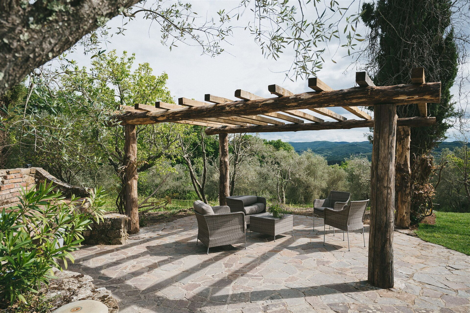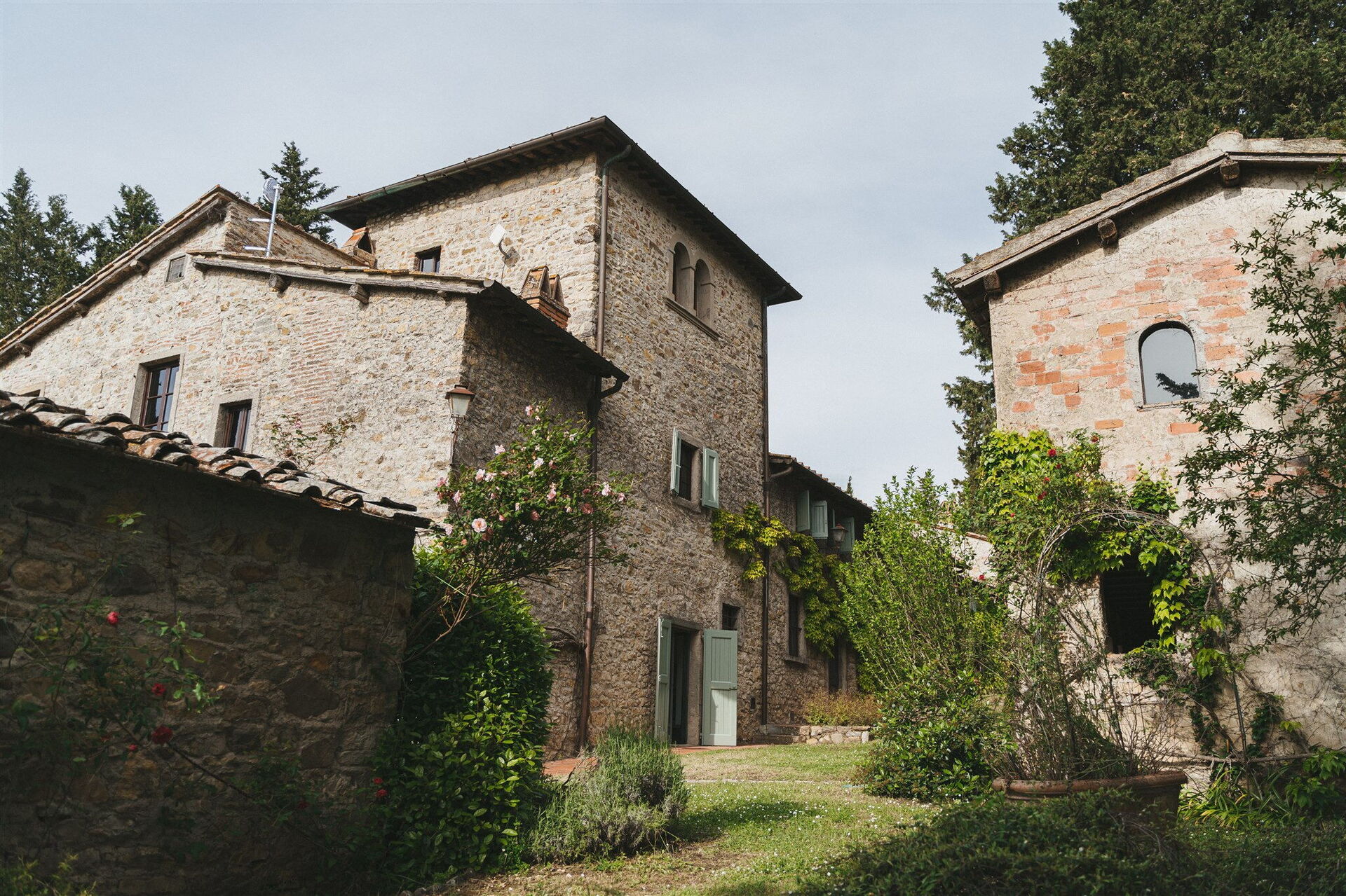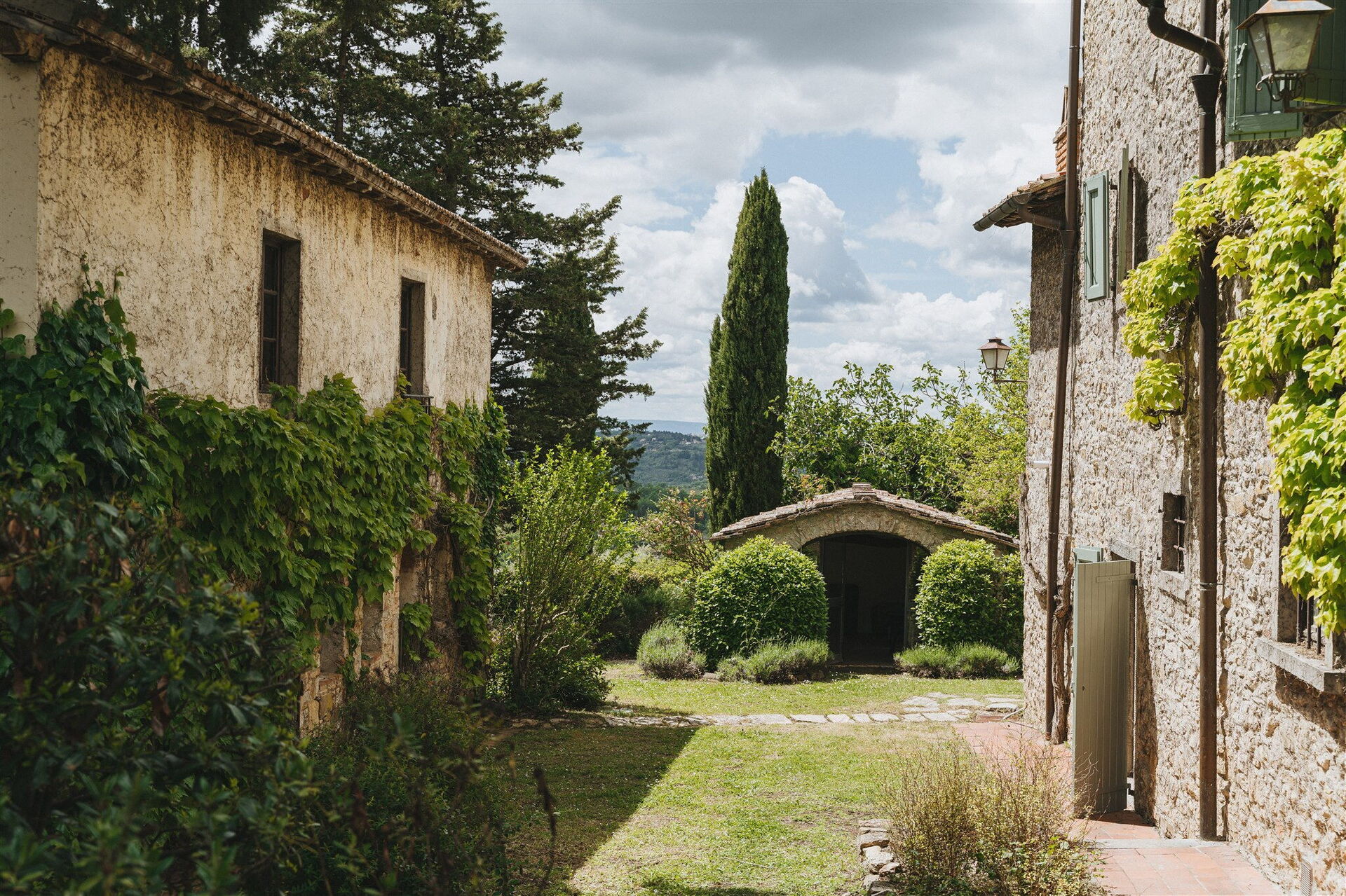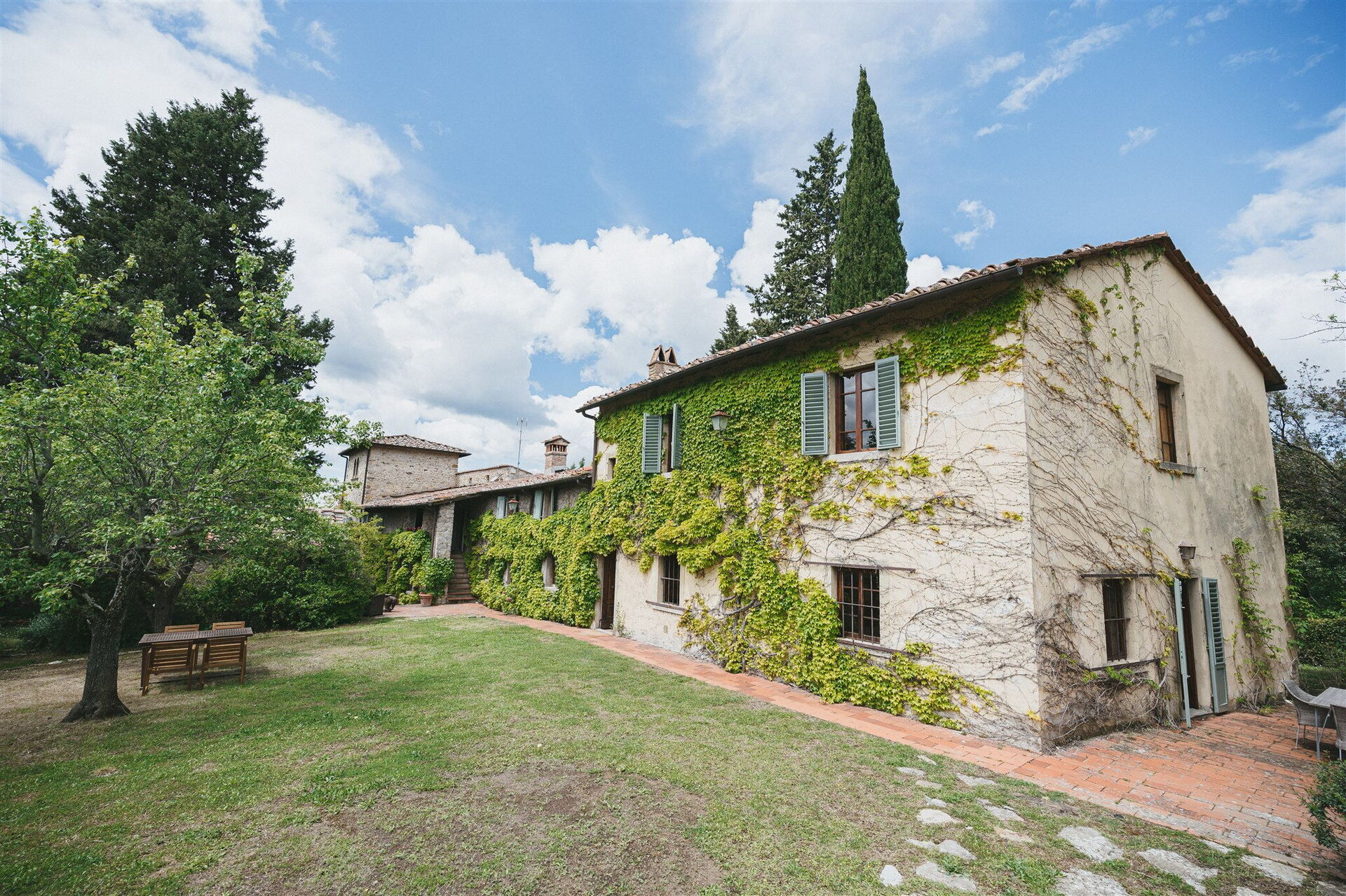 På det store udendørsareal er der en dejlig pool med pragtfuld panoramaudsigt, som deles mellem alle gæster på ejendommen; poolen vender ud mod de storslåede vinmarker i Chianti Classico, verdenskendt for sit smukke landskab og sine fremragende vine fra de mange kendte vingårde her.